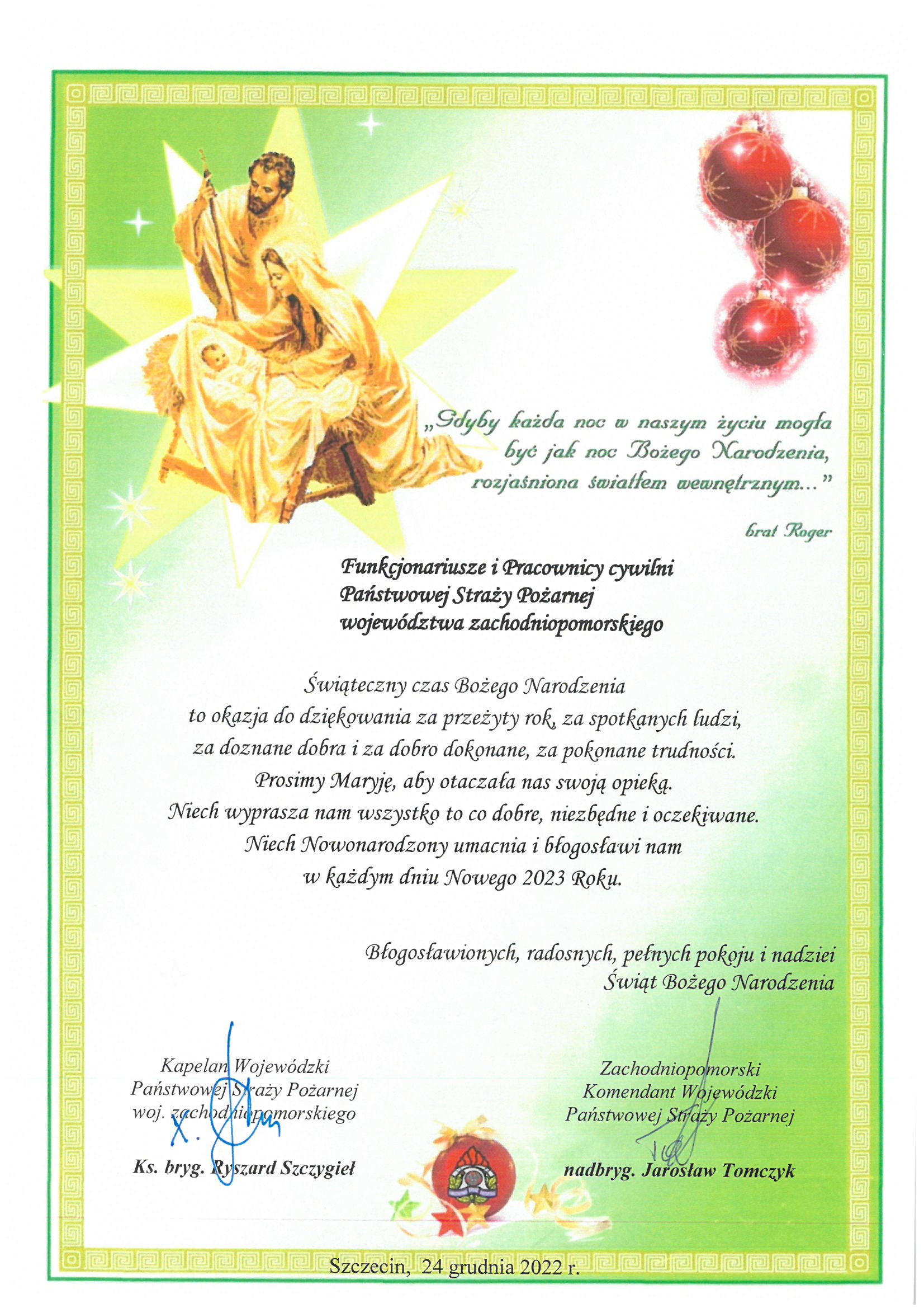 Życzenia Zachodniopomorskiego Komendanta Wojewódzkiego z okazji Świąt Bożego Narodzenia 2022 22.12.2022 Materiały Życzenia Zachodniopomorskiego KW Życzenia_Zachodniopomorskiego_KW.pdf 0.11MB Zdjęcia (1) Pokaż zdjęcie 1 z galerii.
