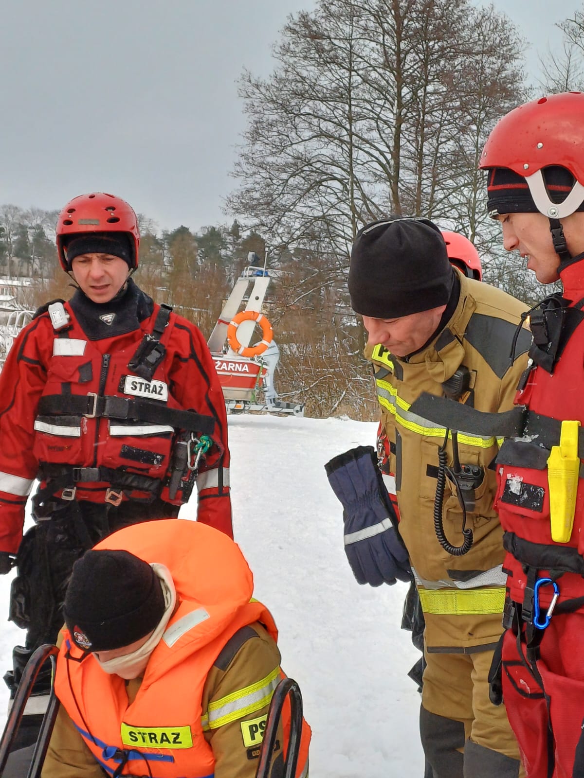 Ćwiczenia doskonalące z ratownictwa lodowego strażaków JRG w Działdowie oraz OSP z powiatu działdowskiego