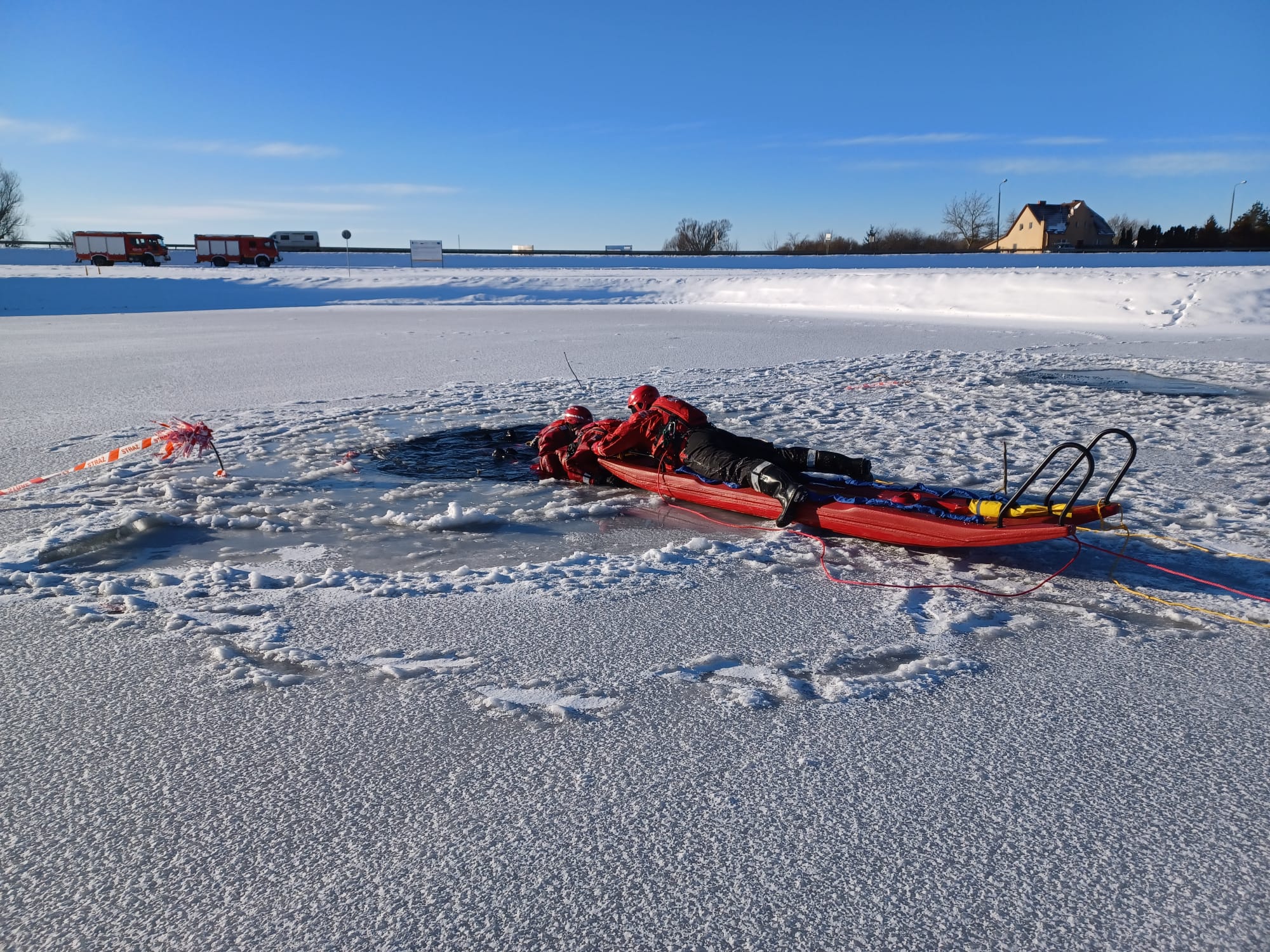 W dniach 15.01.2024 r. – 17.01.2024 strażacy z Jednostki Ratowniczo-Gaśniczej w Działdowie, w ramach doskonalenia zawodowego przeprowadzili ćwiczenia praktyczne z zakresu ratownictwa lodowego na terenie zalewu w Działdowie.