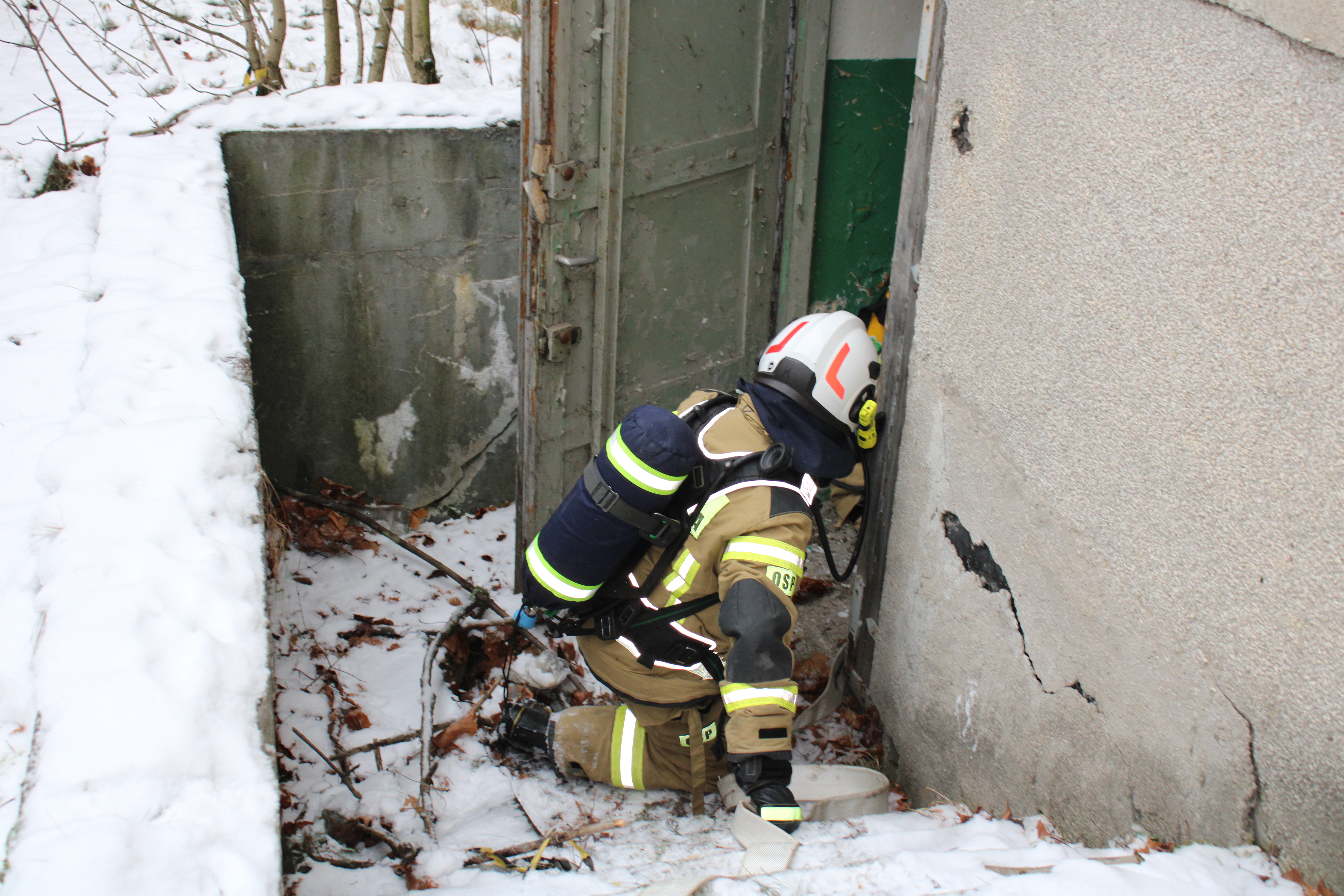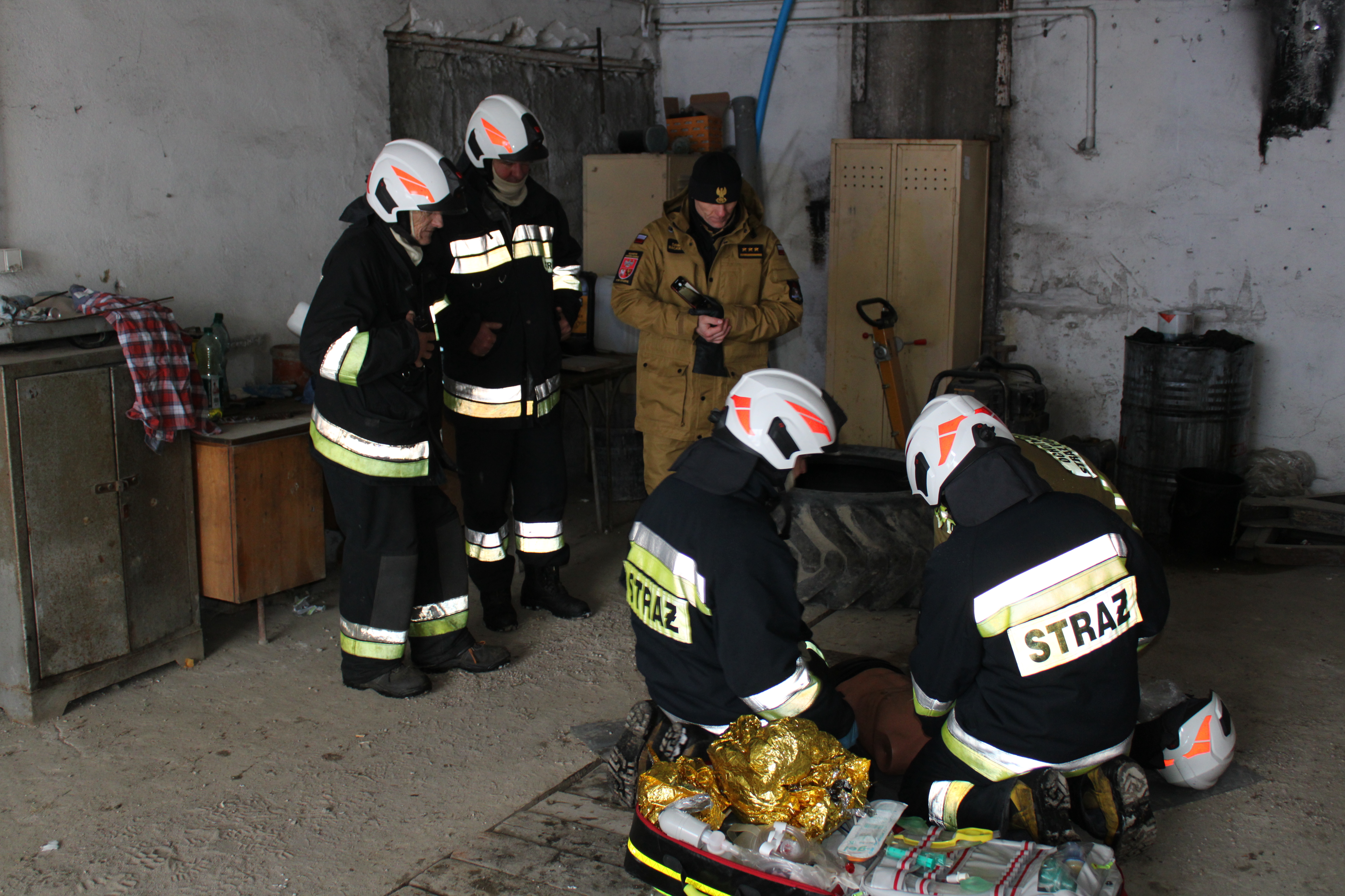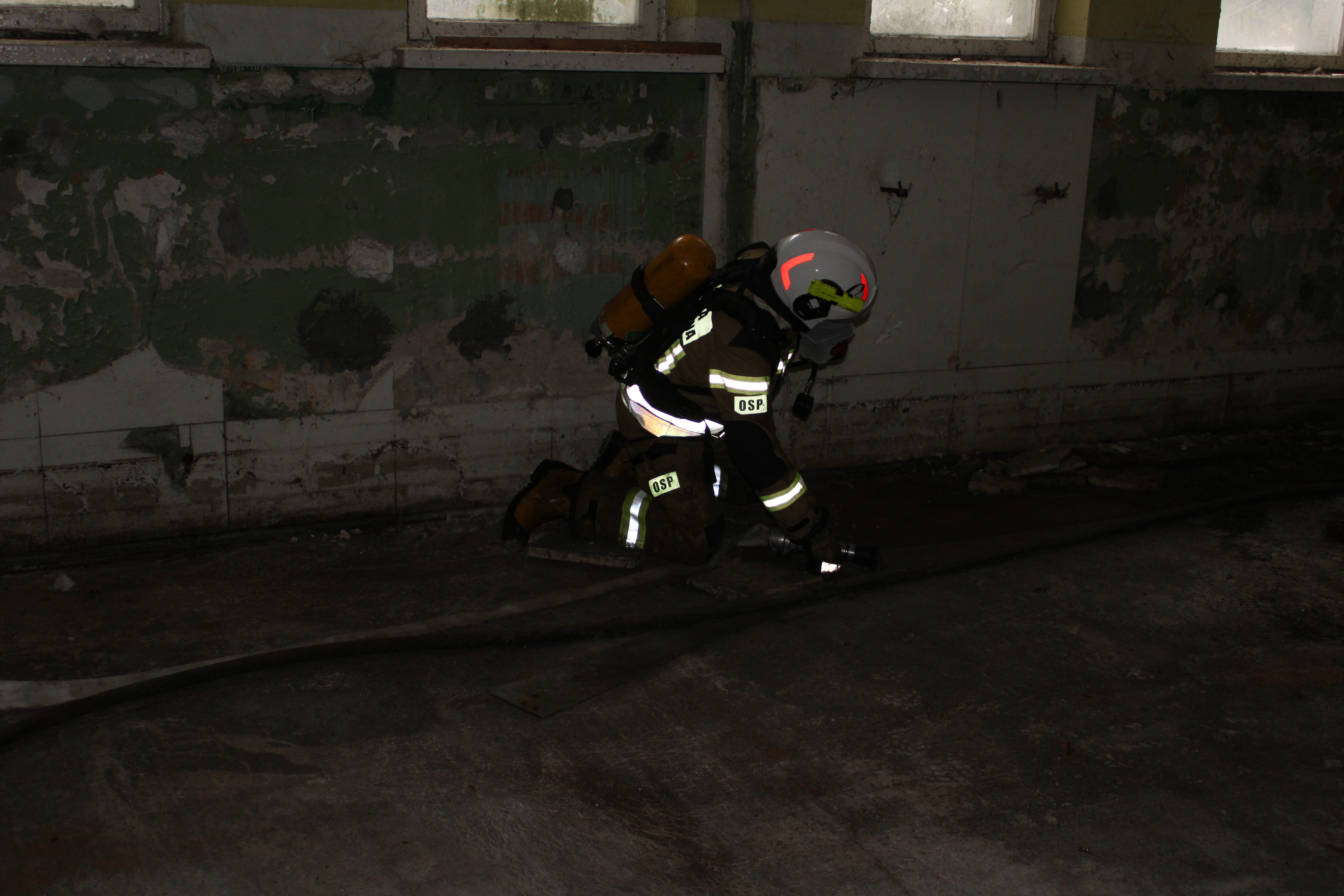 - ewakuacja osoby poszkodowanej z piwnicy budynku, gdzie występuje silne zadymienie