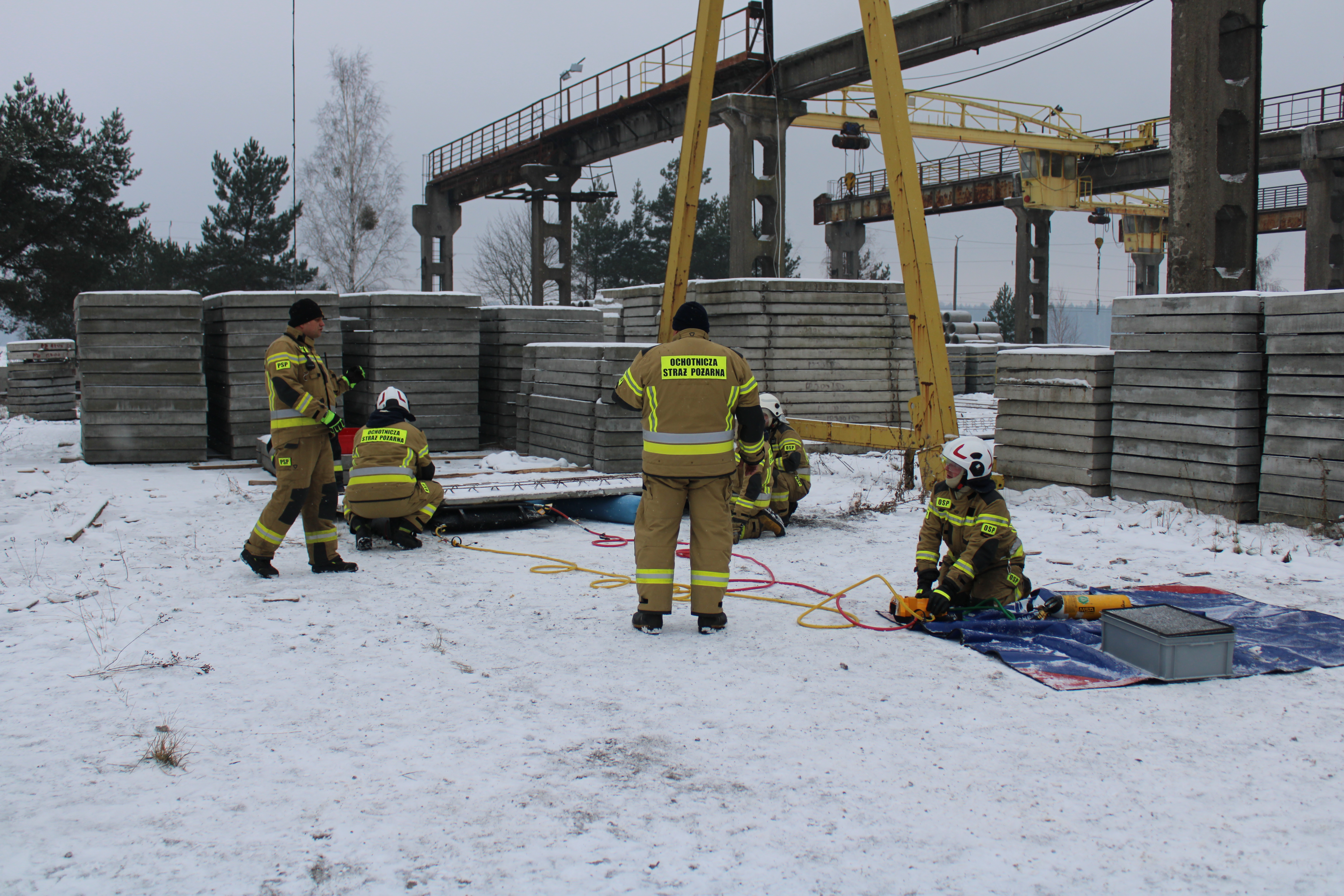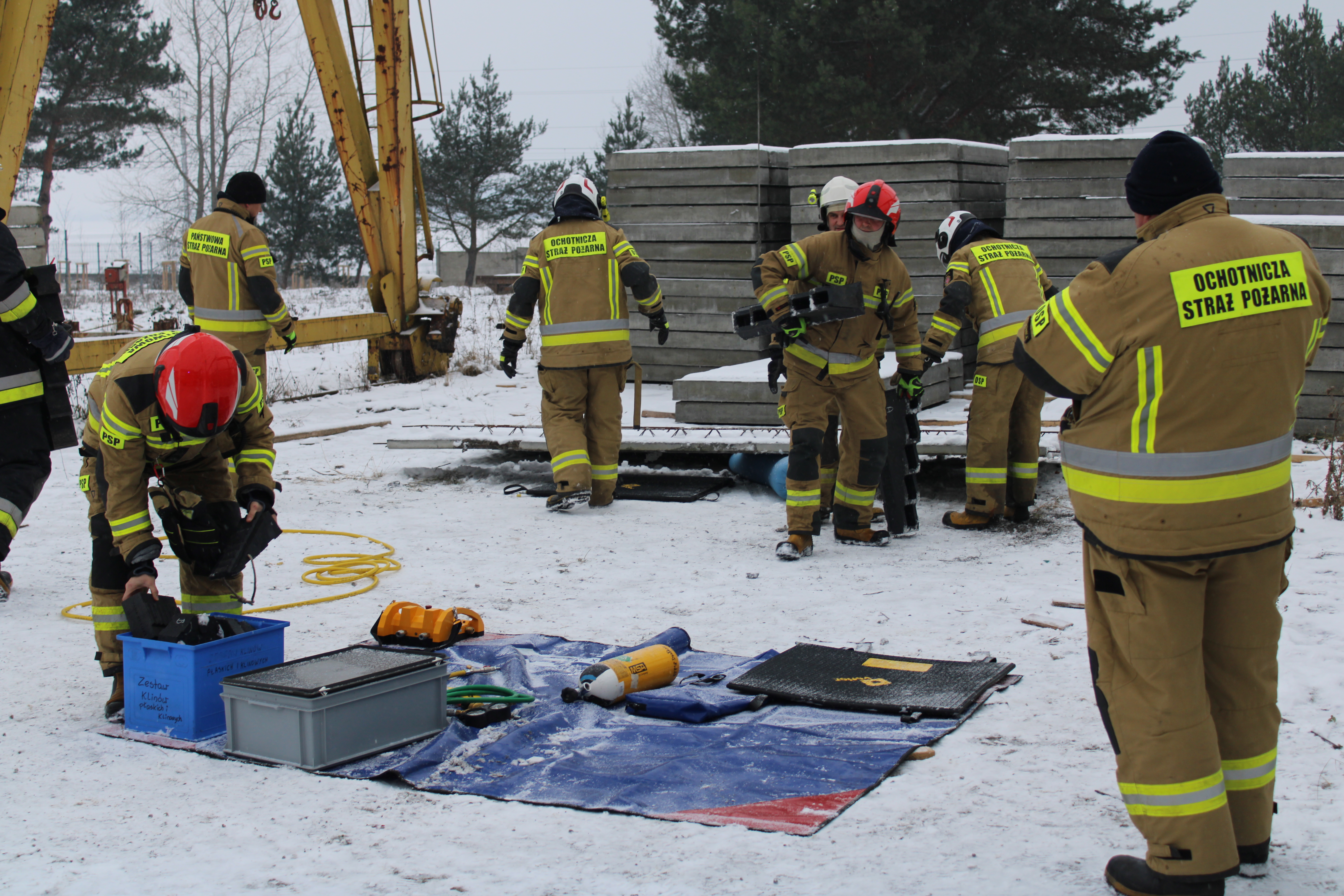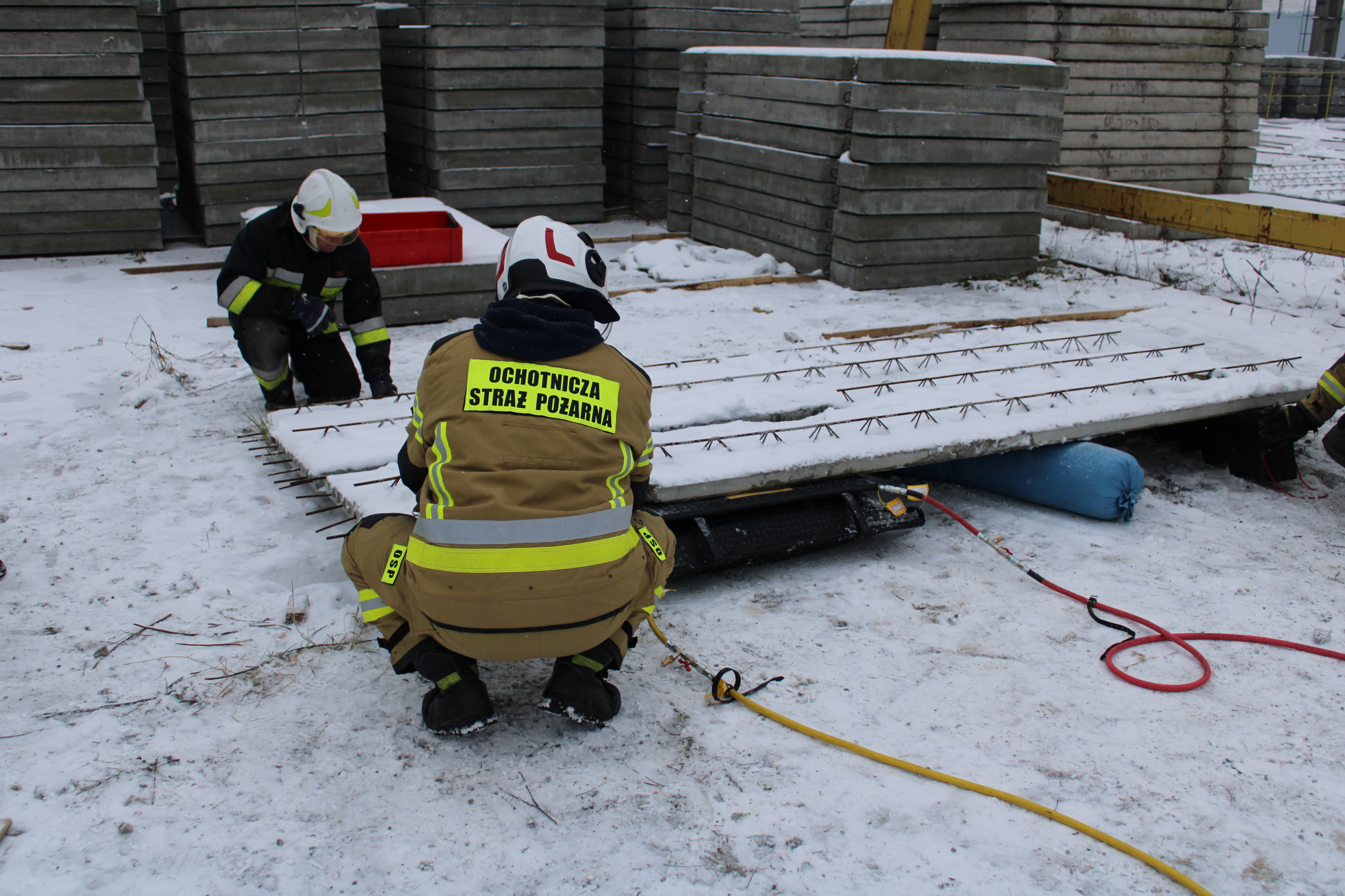 - uwalnianie człowieka przygniecionego przez żelbetonowe elementy konstrukcyjne, przy pomocy ratowniczego sprzętu pneumatycznego i burzącego,