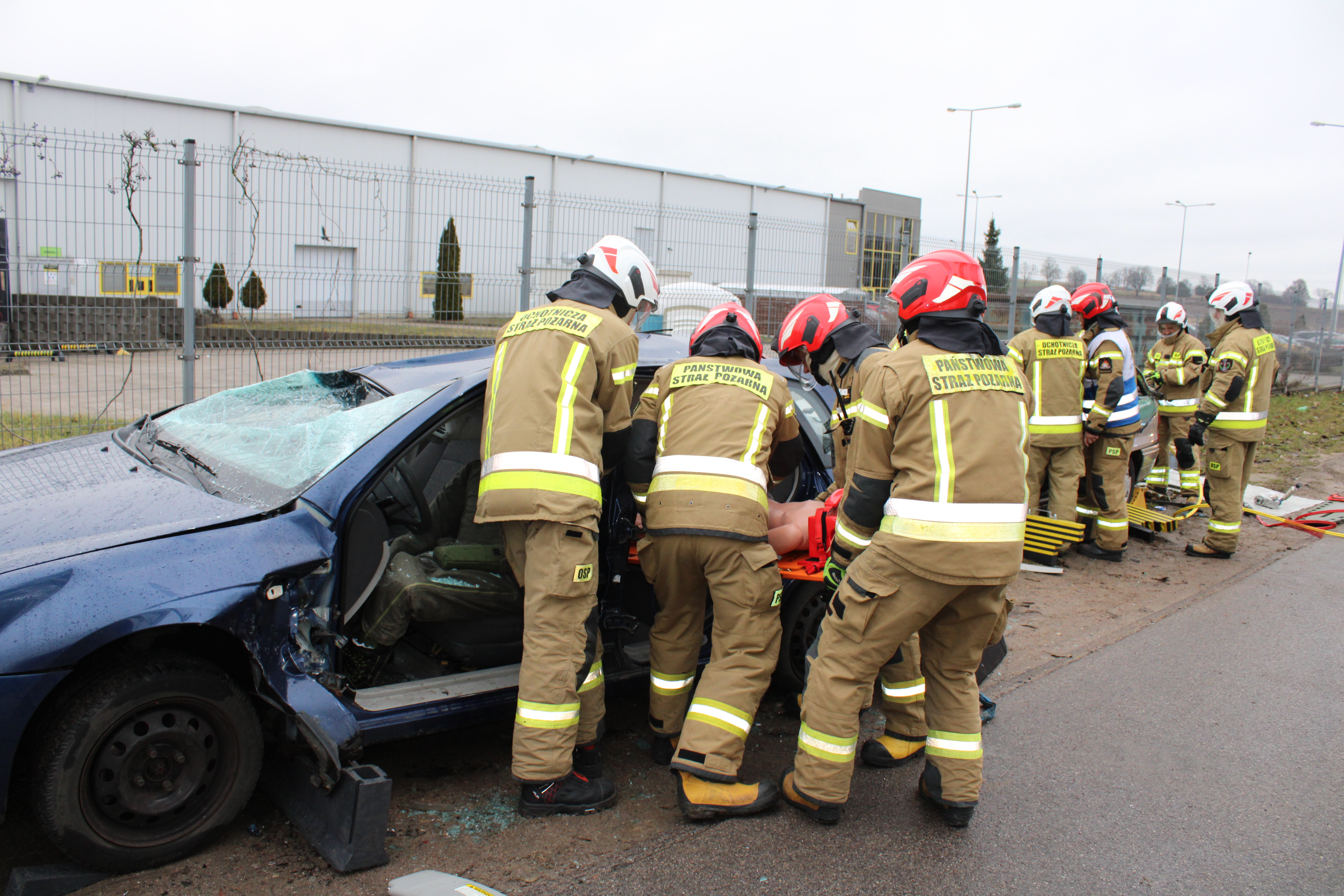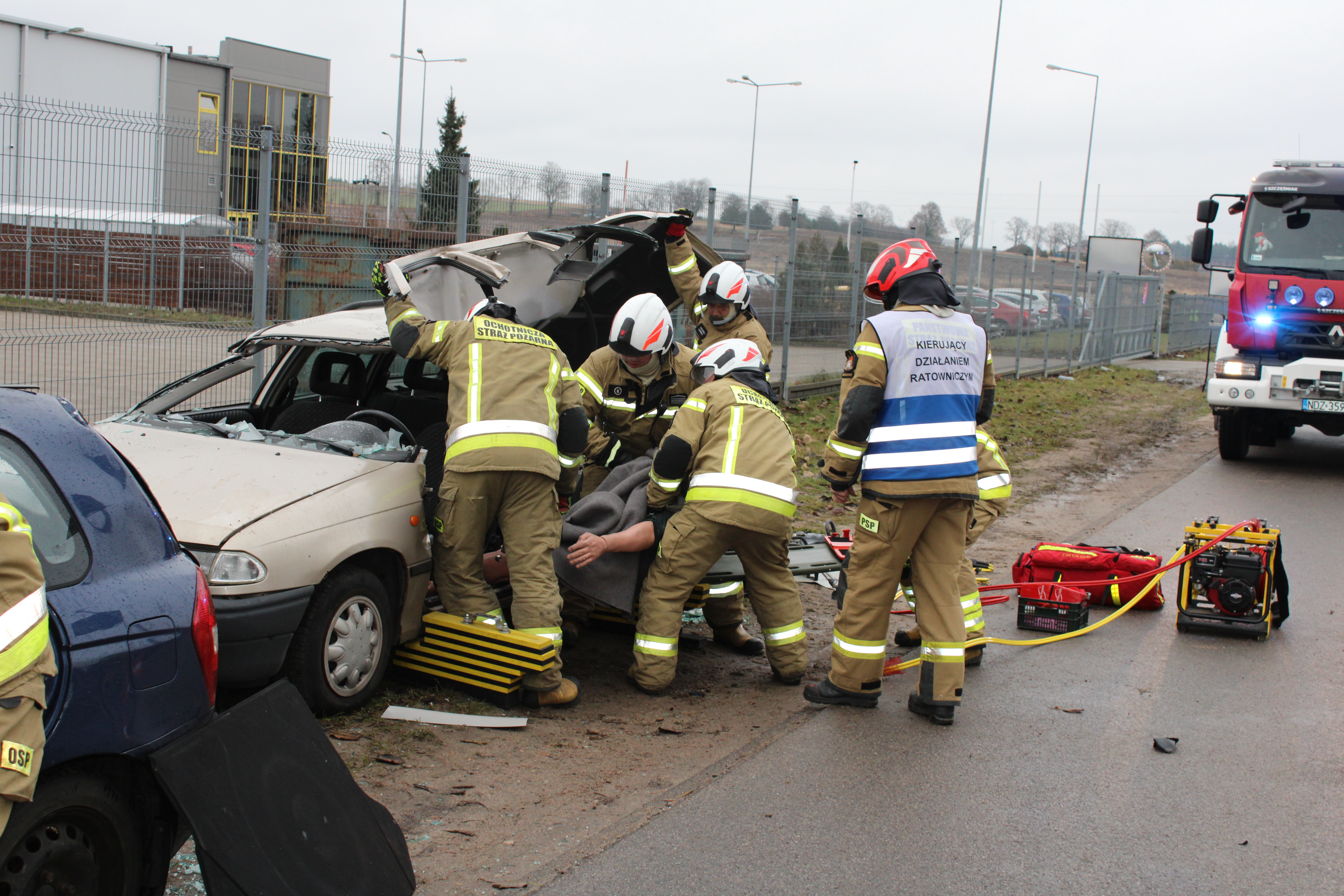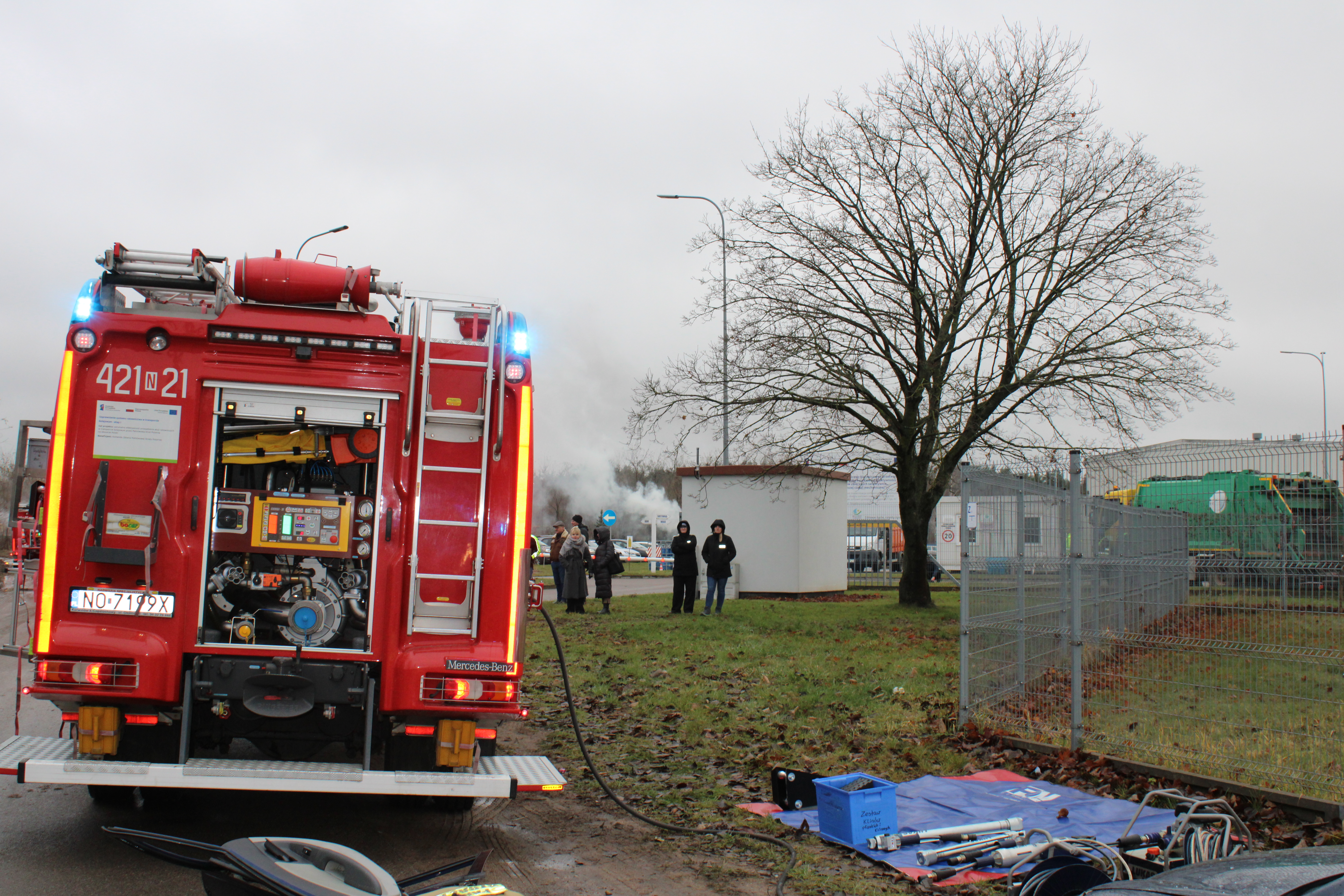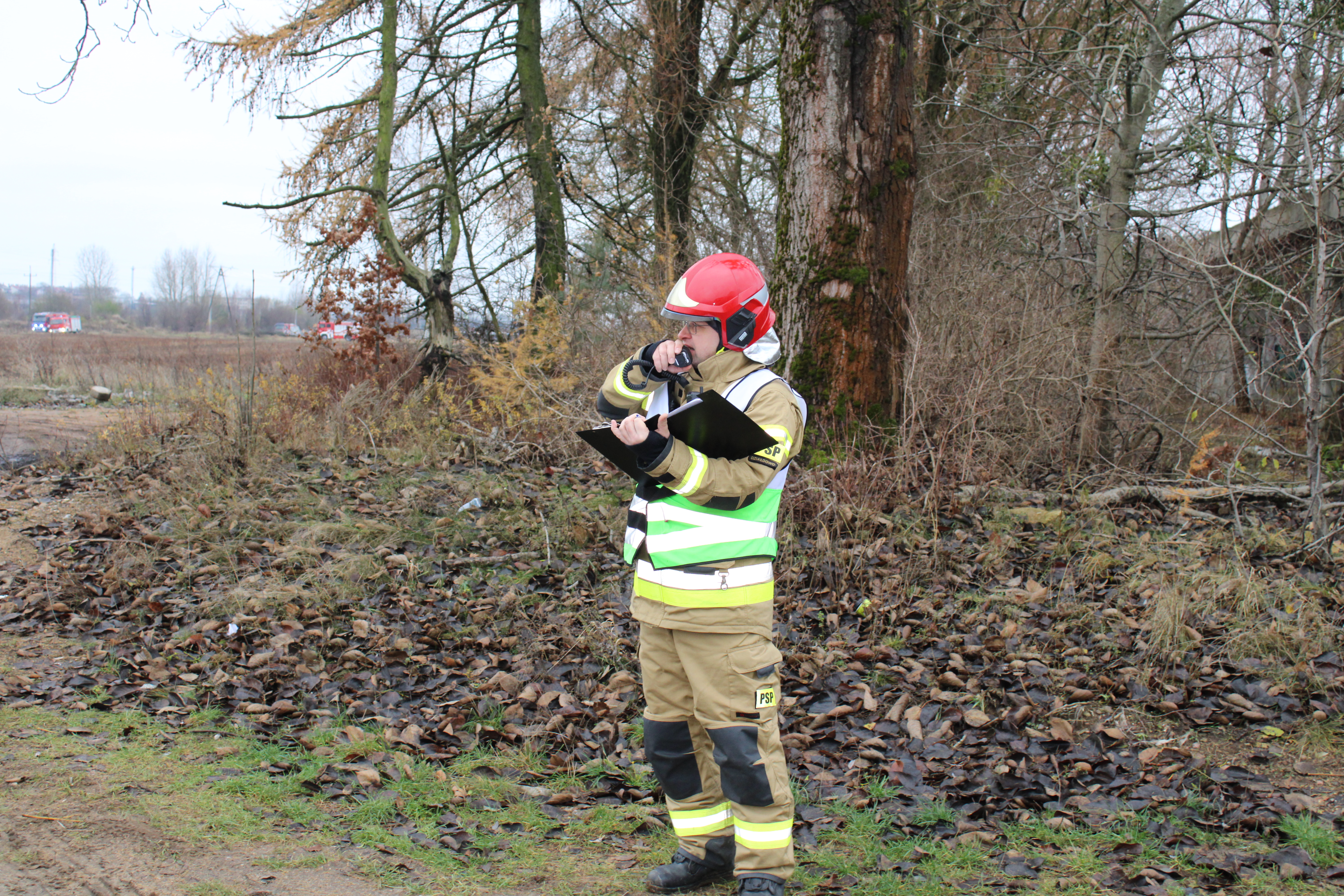 W dniu 29 listopada 2024 roku przeprowadzono ćwiczenia zgrywające z udziałem sił i środków Komendy Powiatowej PSP w Działdowie oraz OSP z terenu powiatu działdowskiego. Scenariusz ćwiczeń zakładał rozległe działania. Na wjeździe do zakładu gospodarki odpadami ustawiły się dwa samochody osobowe. Kierowca samochodu ciężarowego, wiozący odpady w kontenerze zasłabł, a samochód przez niego prowadzony staranował zatrzymane pojazdy, po czym sam znalazł się na polnej drodze, obok budynku stacji transformatorowej, w którym konserwację przeprowadzał pracownik zakładu energetycznego. W wyniku zdarzenia, rozszczelnieniu uległ zbiornik paliwowy samochodu ciężarowego, a wyciekające paliwo zapaliło się. Powstały pożar rozprzestrzeniał się w kierunku budynku stacji transformatorowej, następnie po gęstwinie zarośli w kierunku wiaty z odpadami, która finalnie również objęta została płomieniami. Dodatkowo pożar rozprzestrzenił się na zbiornik w którym zgromadzona była płynna substancja palna. Poszkodowanych zostało 6 osób - 4 osoby w samochodach osobowych, 1 kierowca samochodu ciężarowego i 1 osoba w stacji transformatorowej. Strażacy musieli wykazać się umiejętnościami skoordynowania wielopłaszczyznowych działań, w których udział brało 11 zastępów. Poniżej przedstawiono wykaz sił i środków. W ćwiczenia zaangażowani byli również przedstawiciele Powiatowego Zespołu Zarządzania Kryzysowego, Policji oraz kierownictwo i pracownicy zakładu.