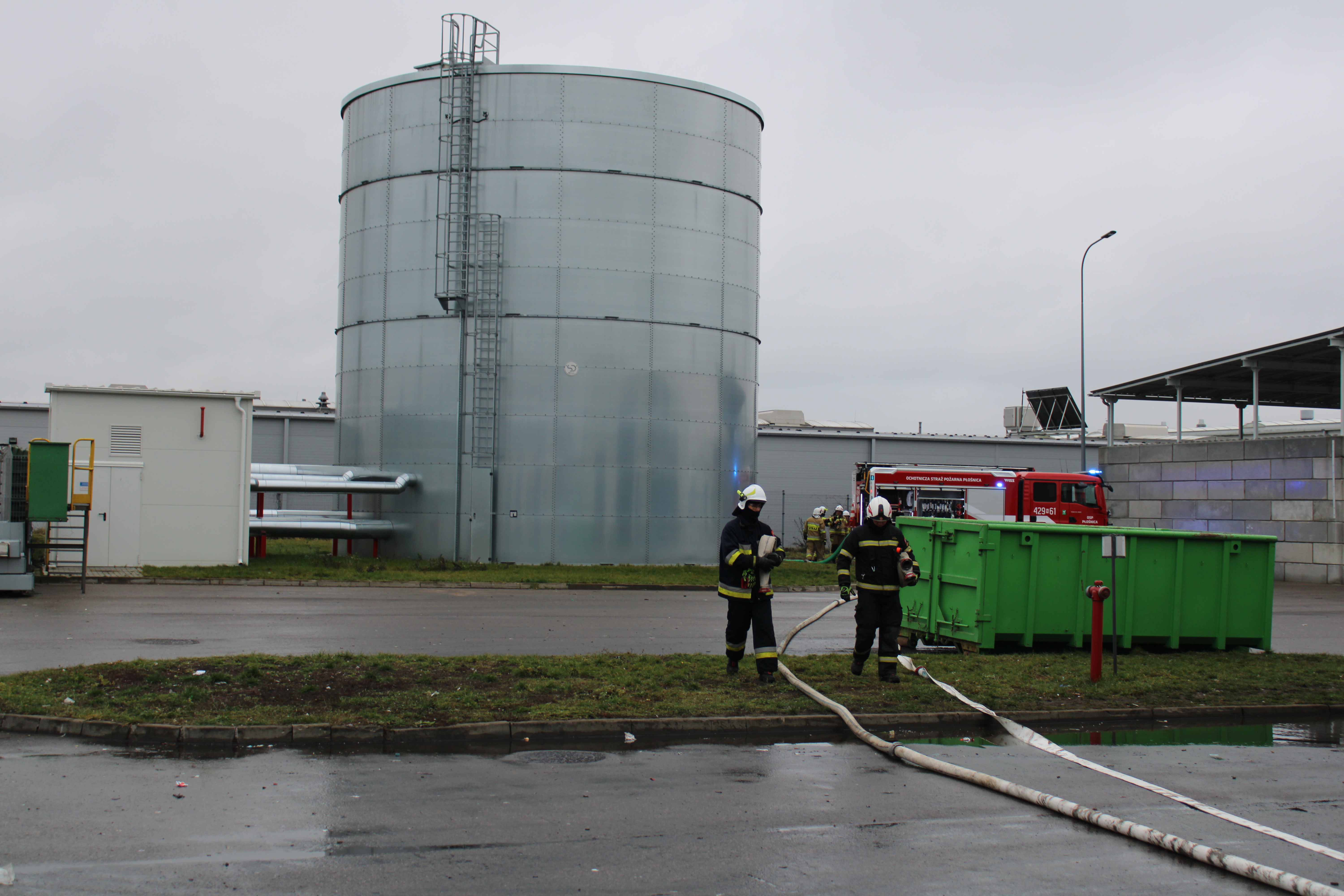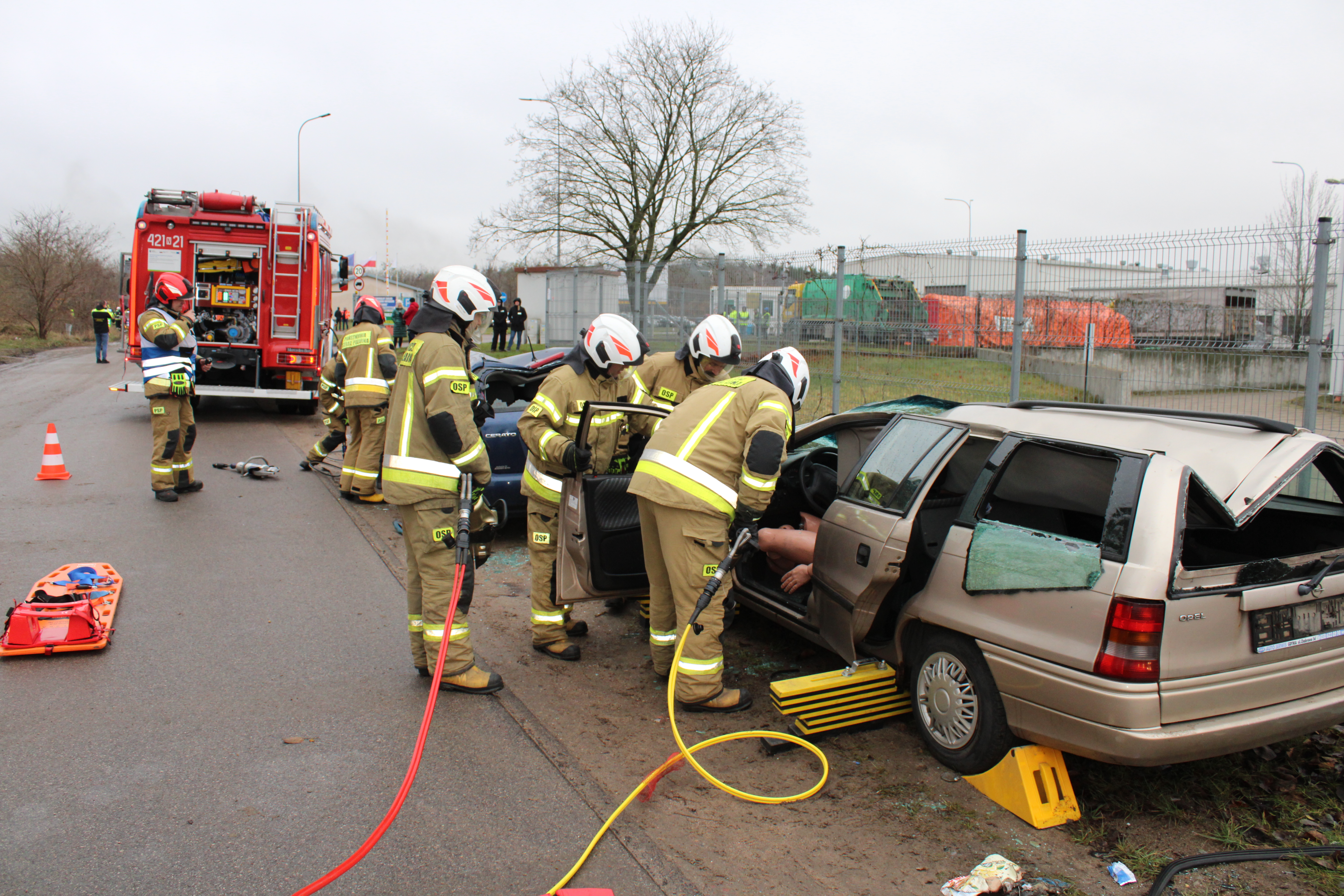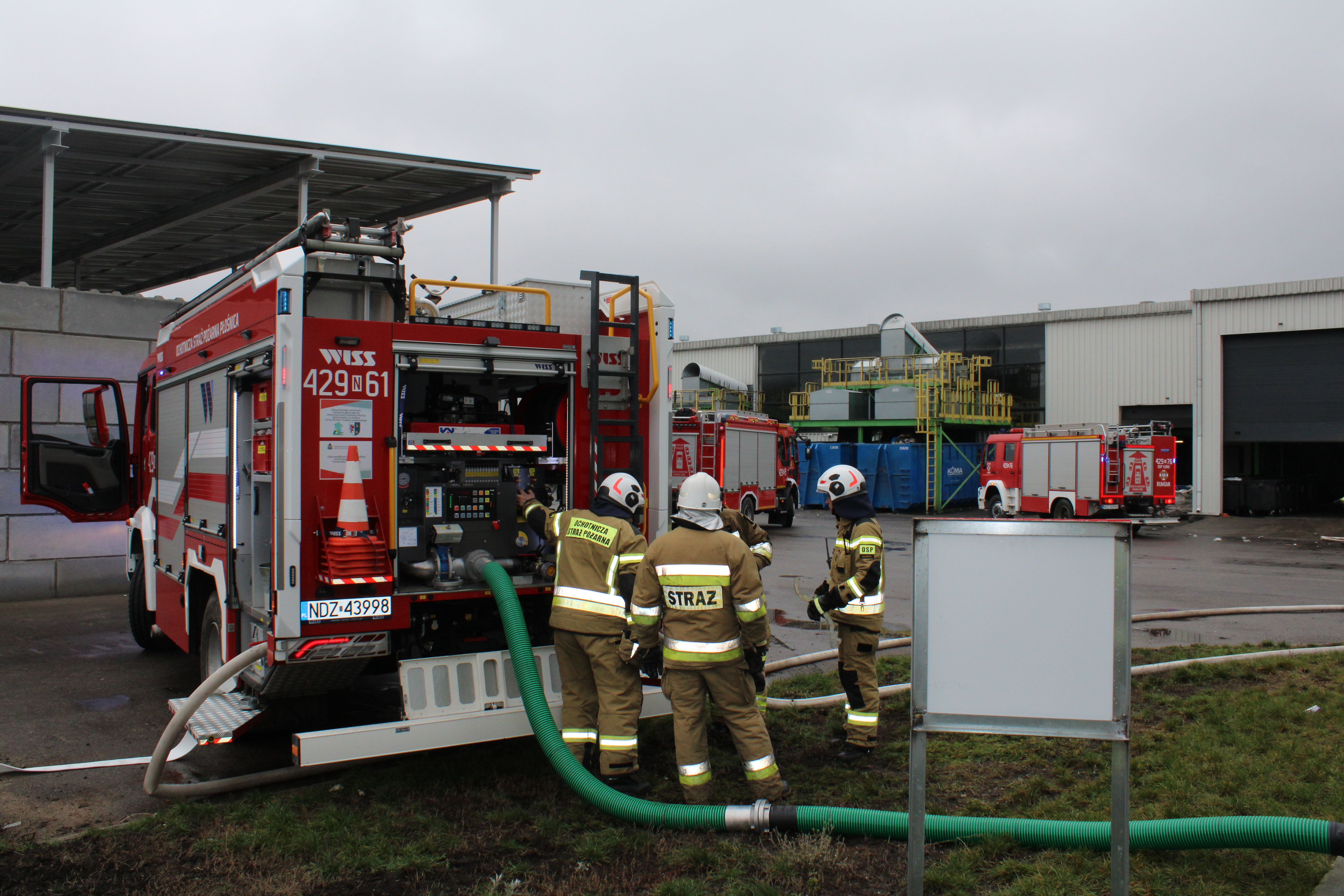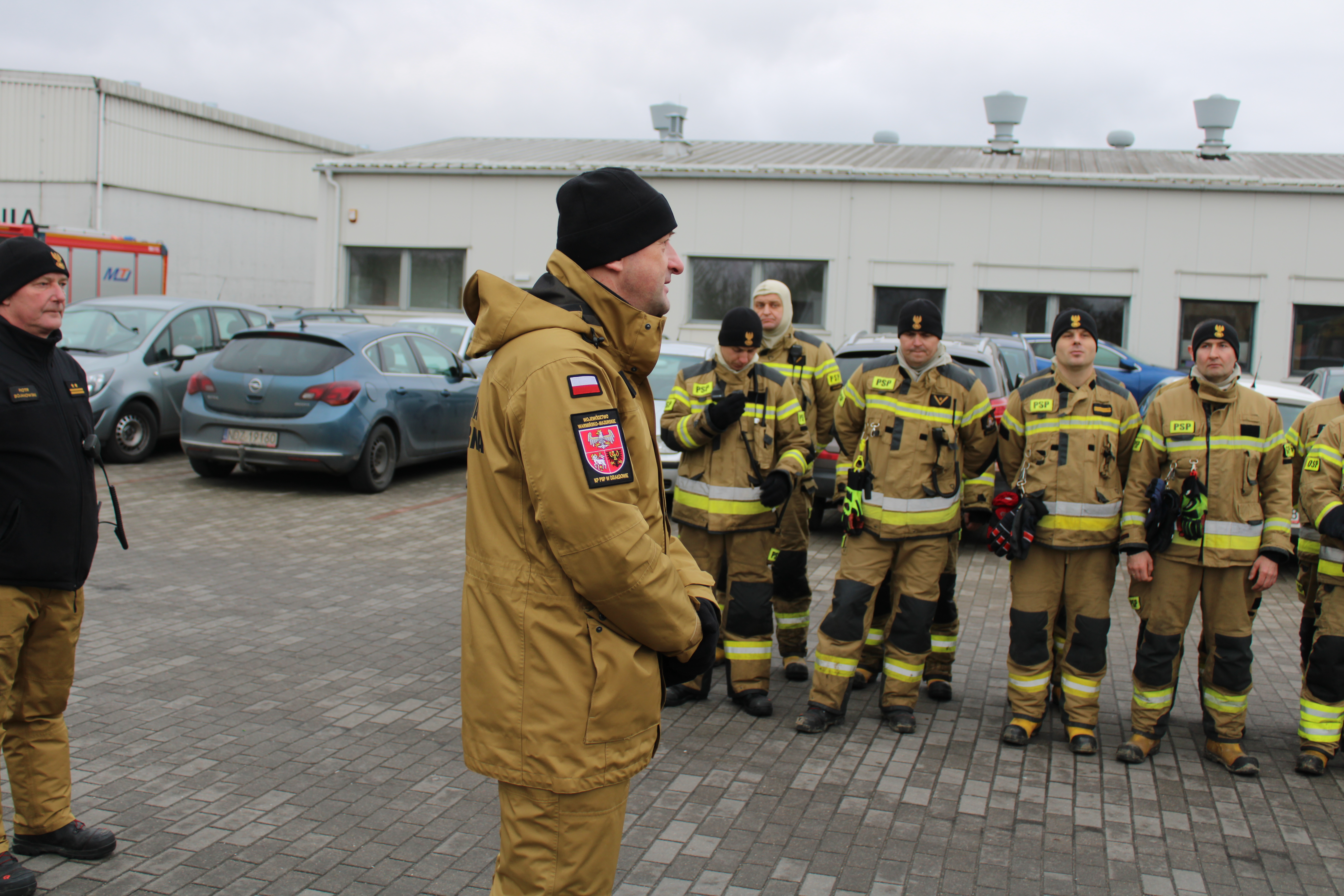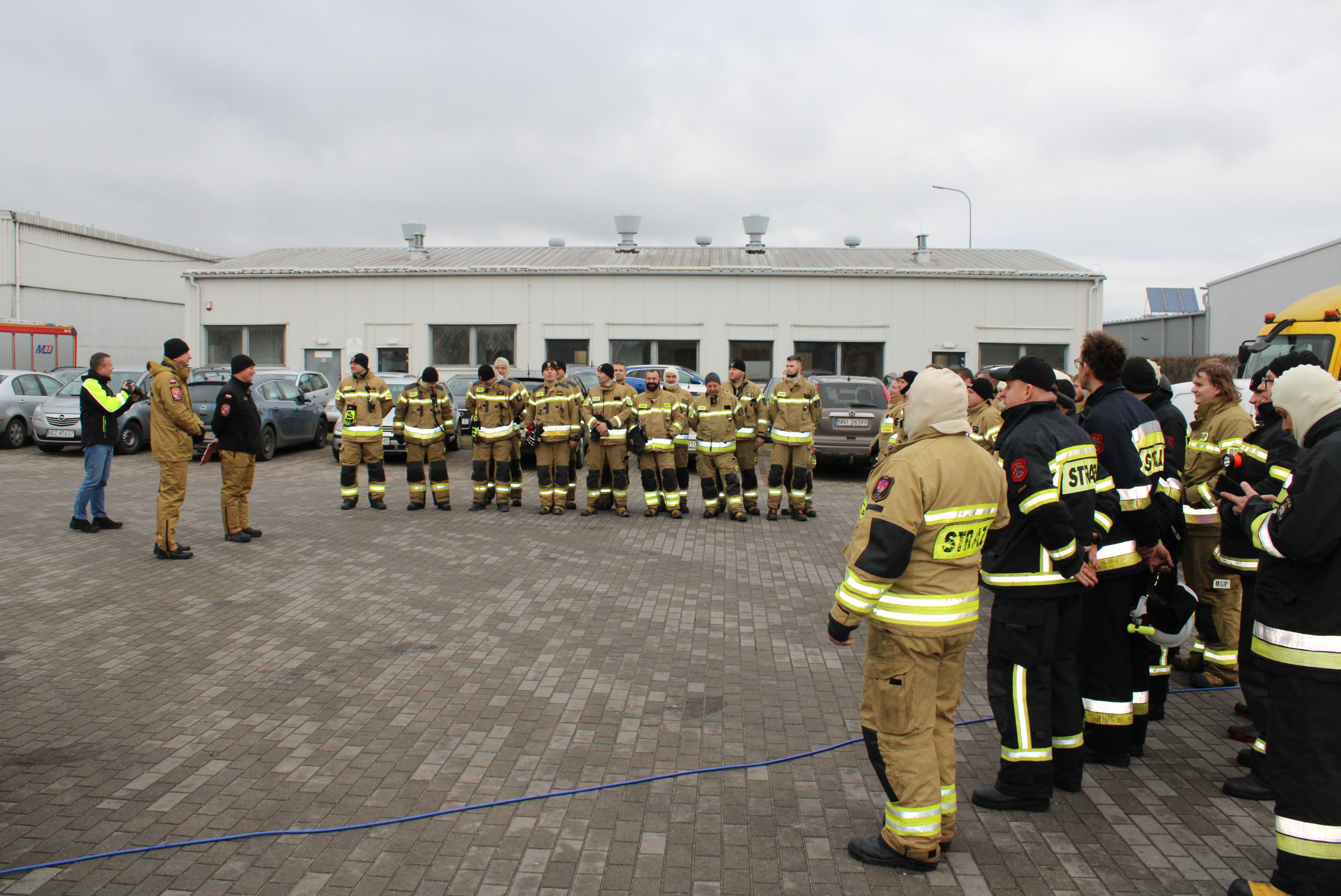 W dniu 29 listopada 2024 roku przeprowadzono ćwiczenia zgrywające z udziałem sił i środków Komendy Powiatowej PSP w Działdowie oraz OSP z terenu powiatu działdowskiego. Scenariusz ćwiczeń zakładał rozległe działania. Na wjeździe do zakładu gospodarki odpadami ustawiły się dwa samochody osobowe. Kierowca samochodu ciężarowego, wiozący odpady w kontenerze zasłabł, a samochód przez niego prowadzony staranował zatrzymane pojazdy, po czym sam znalazł się na polnej drodze, obok budynku stacji transformatorowej, w którym konserwację przeprowadzał pracownik zakładu energetycznego. W wyniku zdarzenia, rozszczelnieniu uległ zbiornik paliwowy samochodu ciężarowego, a wyciekające paliwo zapaliło się. Powstały pożar rozprzestrzeniał się w kierunku budynku stacji transformatorowej, następnie po gęstwinie zarośli w kierunku wiaty z odpadami, która finalnie również objęta została płomieniami. Dodatkowo pożar rozprzestrzenił się na zbiornik w którym zgromadzona była płynna substancja palna. Poszkodowanych zostało 6 osób - 4 osoby w samochodach osobowych, 1 kierowca samochodu ciężarowego i 1 osoba w stacji transformatorowej. Strażacy musieli wykazać się umiejętnościami skoordynowania wielopłaszczyznowych działań, w których udział brało 11 zastępów. Poniżej przedstawiono wykaz sił i środków. W ćwiczenia zaangażowani byli również przedstawiciele Powiatowego Zespołu Zarządzania Kryzysowego, Policji oraz kierownictwo i pracownicy zakładu.