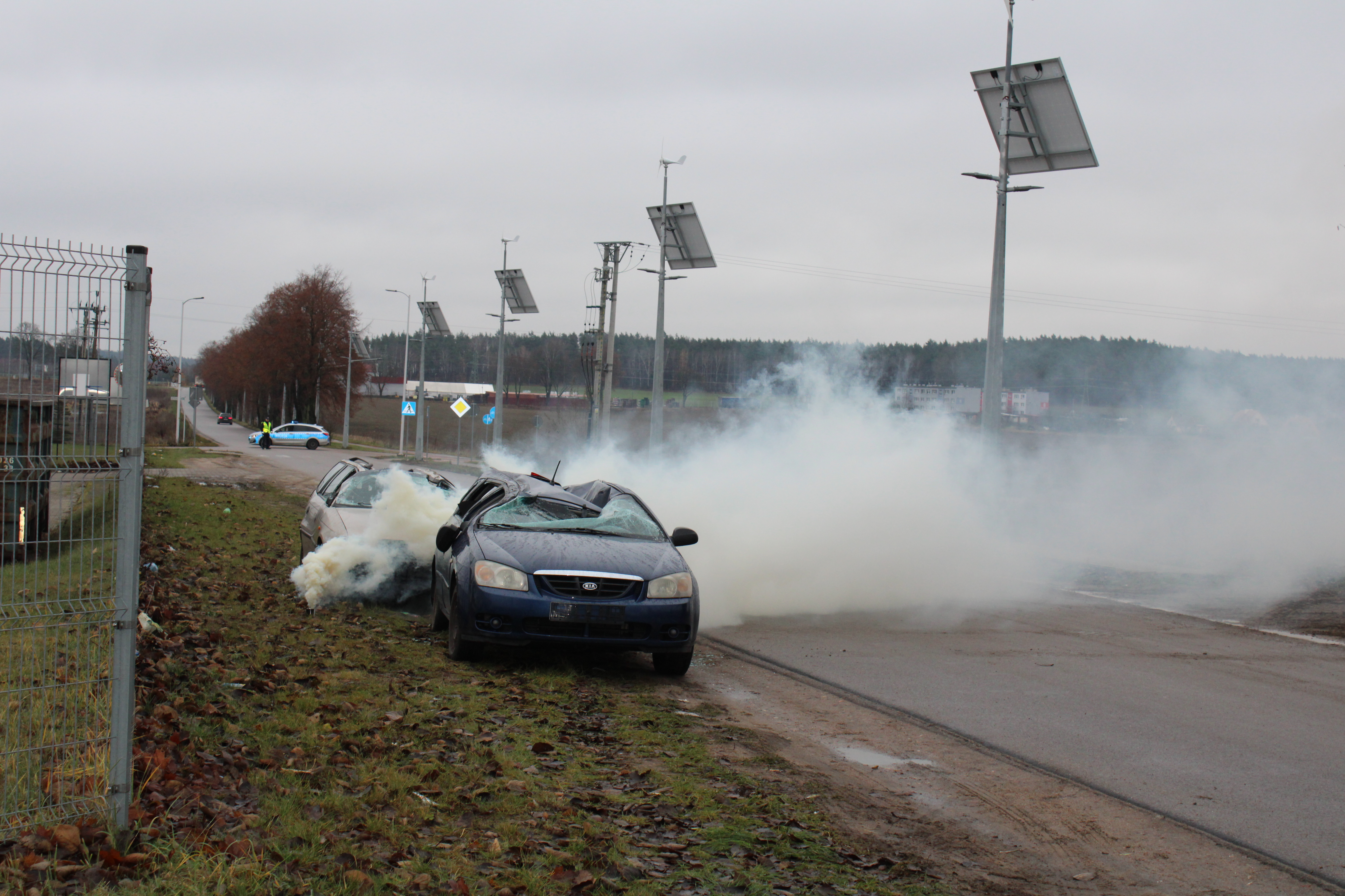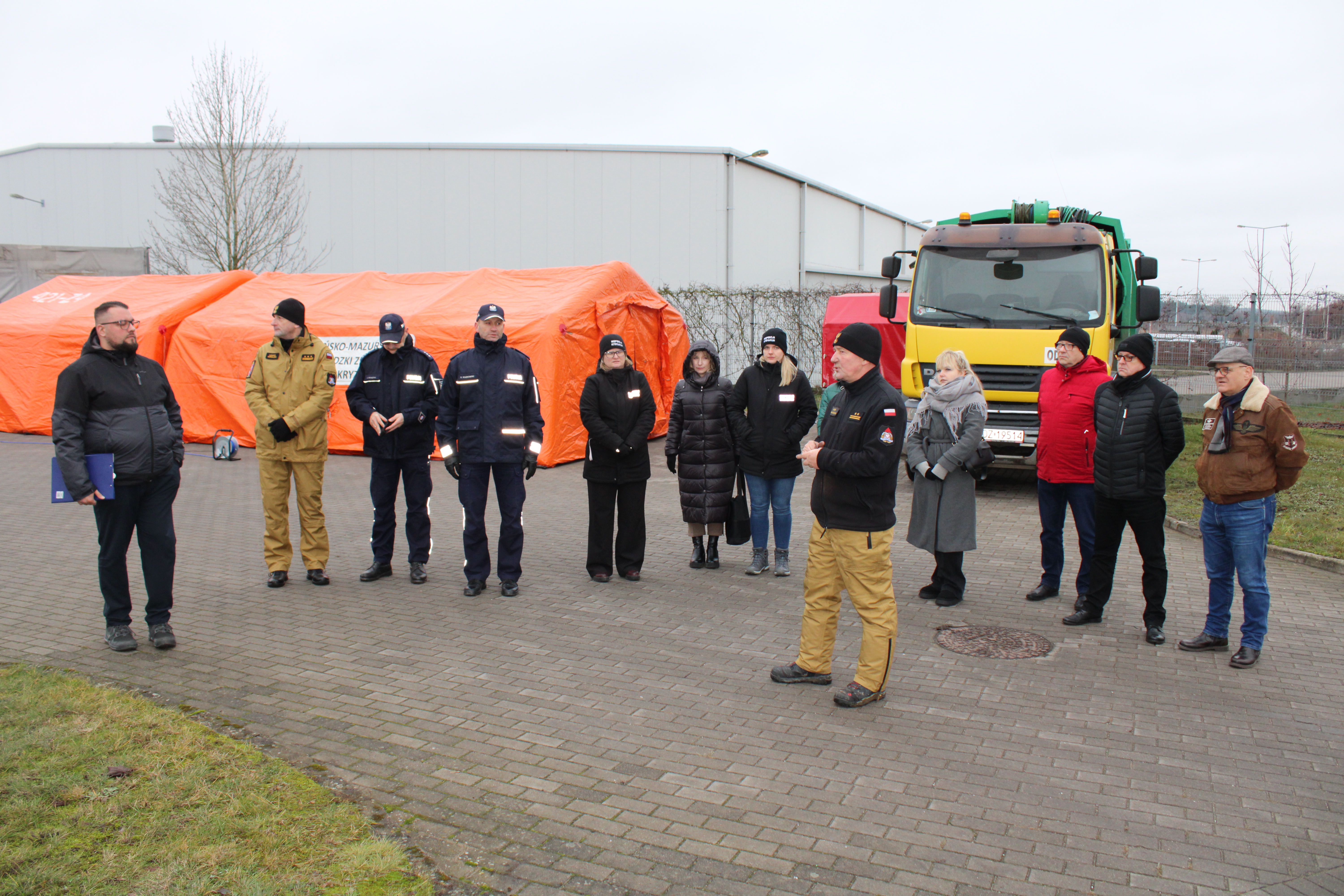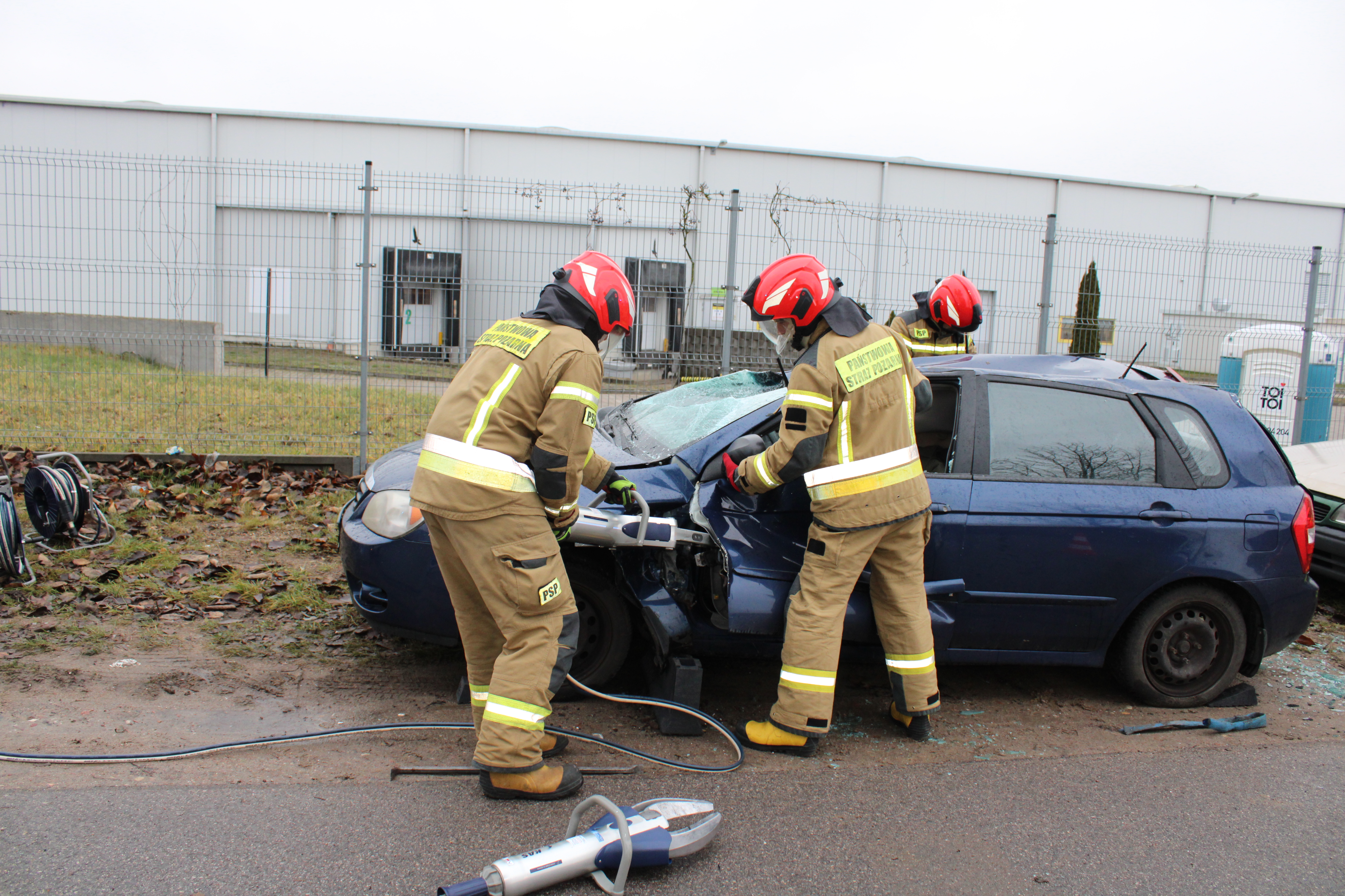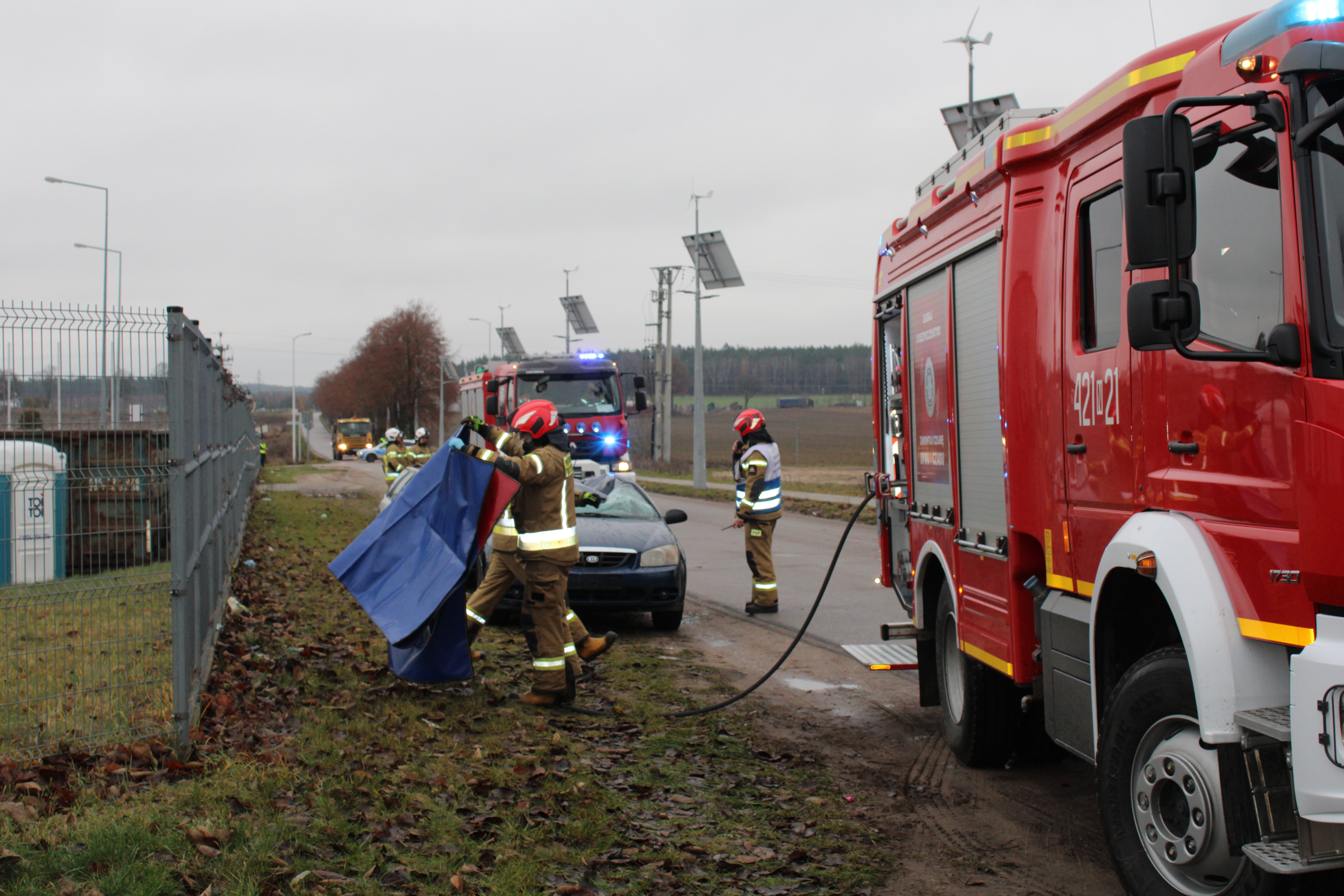 W dniu 29 listopada 2024 roku przeprowadzono ćwiczenia zgrywające z udziałem sił i środków Komendy Powiatowej PSP w Działdowie oraz OSP z terenu powiatu działdowskiego. Scenariusz ćwiczeń zakładał rozległe działania. Na wjeździe do zakładu gospodarki odpadami ustawiły się dwa samochody osobowe. Kierowca samochodu ciężarowego, wiozący odpady w kontenerze zasłabł, a samochód przez niego prowadzony staranował zatrzymane pojazdy, po czym sam znalazł się na polnej drodze, obok budynku stacji transformatorowej, w którym konserwację przeprowadzał pracownik zakładu energetycznego. W wyniku zdarzenia, rozszczelnieniu uległ zbiornik paliwowy samochodu ciężarowego, a wyciekające paliwo zapaliło się. Powstały pożar rozprzestrzeniał się w kierunku budynku stacji transformatorowej, następnie po gęstwinie zarośli w kierunku wiaty z odpadami, która finalnie również objęta została płomieniami. Dodatkowo pożar rozprzestrzenił się na zbiornik w którym zgromadzona była płynna substancja palna. Poszkodowanych zostało 6 osób - 4 osoby w samochodach osobowych, 1 kierowca samochodu ciężarowego i 1 osoba w stacji transformatorowej. Strażacy musieli wykazać się umiejętnościami skoordynowania wielopłaszczyznowych działań, w których udział brało 11 zastępów. Poniżej przedstawiono wykaz sił i środków. W ćwiczenia zaangażowani byli również przedstawiciele Powiatowego Zespołu Zarządzania Kryzysowego, Policji oraz kierownictwo i pracownicy zakładu.