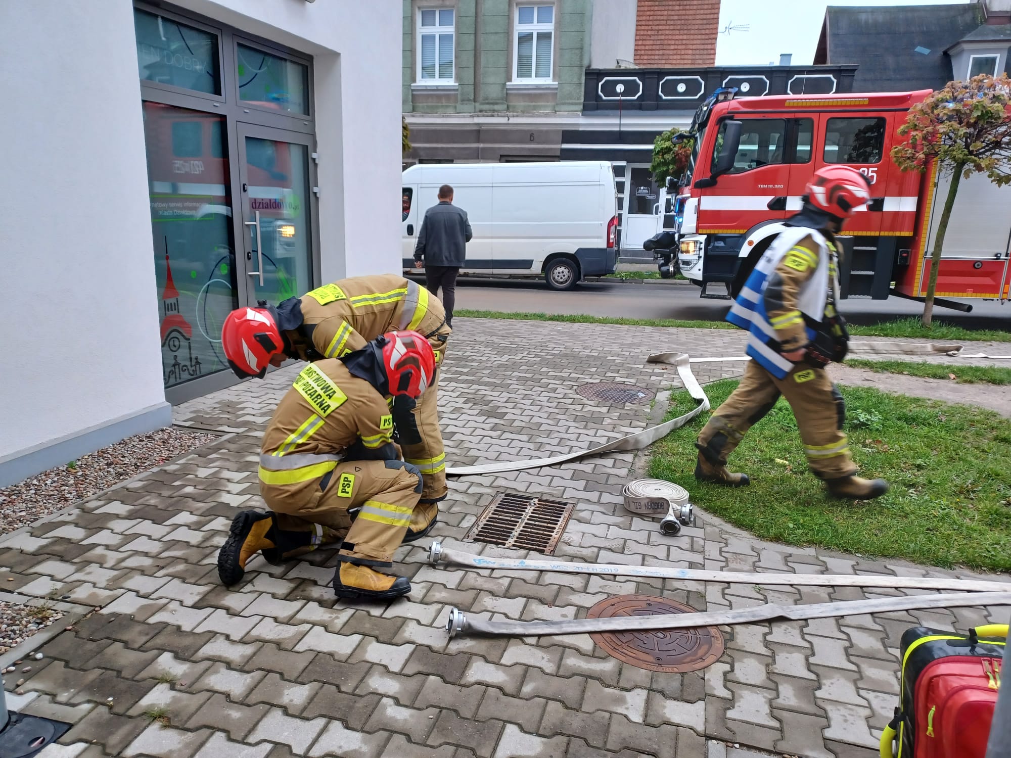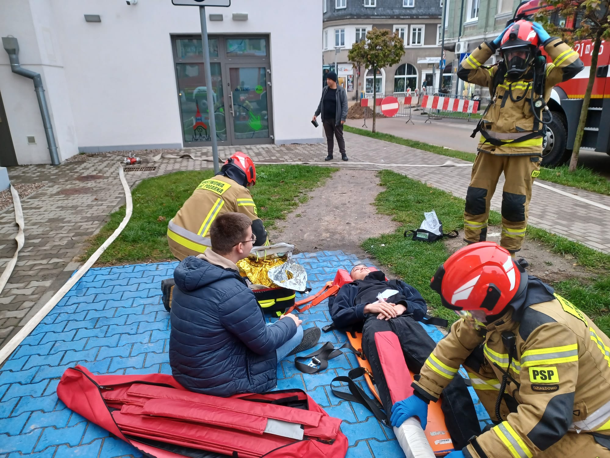 W dniu 26.10.2023 r. w budynku działdowskiego kina Apollo, odbyły się ćwiczenia strażaków z JRG Działdowo. Ćwiczenia są nieodłącznym elementem doskonalenia zawodowego funkcjonariuszy. Warto wspomnieć, że strażacy w jednostkach ratowniczo-gaśniczych w trakcie tygodnia, realizują rozbudowany plan zajęć doskonalenia zawodowego, który obejmuje zajęcia teoretyczne, ćwiczenia praktyczne czy chociażby rozpoznania operacyjne obiektów. Rozpoznania realizowane są na terenach różnych placówek, firm i zakładów znajdujących się w rejonie działań podlegającym naszej komendzie. Mają one na celu dokładne zapoznanie się strażaków ze specyfikacją danego budynku/zakładu, możliwościami prowadzenia działań ratowniczych oraz niebezpieczeństwami jakie mogą napotkać w przypadku ewentualnej interwencji w tym miejscu. Rozpoznania obiektów połączone są zazwyczaj z ćwiczeniami, w których strażacy mierzą się z symulowanym założeniem sytuacji niebezpiecznej. Tak było i tym razem, podczas ćwiczeń w obiekcie Miejskiego Domu Kultury w Działdowie - w kinie Apollo. Dzięki przychylności dyrekcji obiektu, strażacy mogli zmierzyć się z pożarem „na niby” z różnymi utrudnieniami pojawiającymi się w trakcie działań, w którym poszkodowane było 4 osoby, wymagające ewakuacji i udzielenia pomocy medycznej przez strażaków.