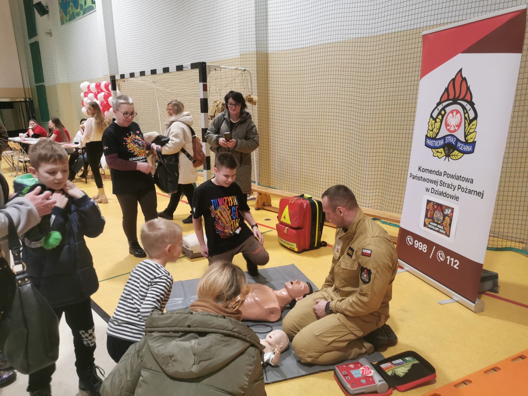Komenda Powiatowa Państwowej Straży pożarnej, na czele ze st. bryg. Leszkiem Góralskim Komendantem Powiatowym PSP w Działdowie, oraz zastępcą komendnata mł. bryg. Dariuszem Jankowskim od samego początku czynnie przyłaczyli się do wsparcia tegorocznej działalności Wielkiej Orkiestry Świątecznej Pomocy. Zarówno kierownictwo komendy jak i wszyscy strażacy chętnie i aktywnie brali udział w promowaniu i wsparciu wszystkich przedsięwzięć związanych z WOŚP. W tygodniu poprzedzającym wielki finał w naszej komendzie odbył się dzień otwarty pod patronatem akcji #SłużbyDlaWOŚP, o którym możecie Państwo przeczytać na nszej stronie internetowej. Przekazane zostały również fanty na licytację w postaci zestawu unikalnych szklanek okolicznościowych, wytworzonych z okazji trzydziestolecia PSP, szklanego, okolicznościowego serwetnika, wytworzonego z okazji trzydziestolecia PSP oraz prawdziwy hełm strażacki. W dniu finału nasi strażacy prowadzili naukę i pokazy pierwszej pomocy, na specjalnie przygotowanym stoisku w działdowskim sztabie WOŚP. Odbył się również pokaz ratownictwa technicznego na wraku pojazdu oraz zaprezentowano samochód ratowniczo-gaśniczy wraz ze sprzętem będącym na jego wyposażeniu. Dodatkowo w dniu finału wspólnie z innymi służbami, strażacy z KP PSP Działdowo czuwali nad bezpieczeństwem podczas „światełka do nieba”. Cieszymy się, że w aktywny sposób mogliśmy dołożyć swoją "cegiełkę" do tegorocznej zbiórki, a jednocześnie wszyscy zainteresowani łacząc przyjemne z pożytecznym, mieli okazję poznać bliżej specyfikę pracy strażaka i spędzić czas z ludźmi którzy codziennie czuwają nad Państwa bezpieczeństwem.