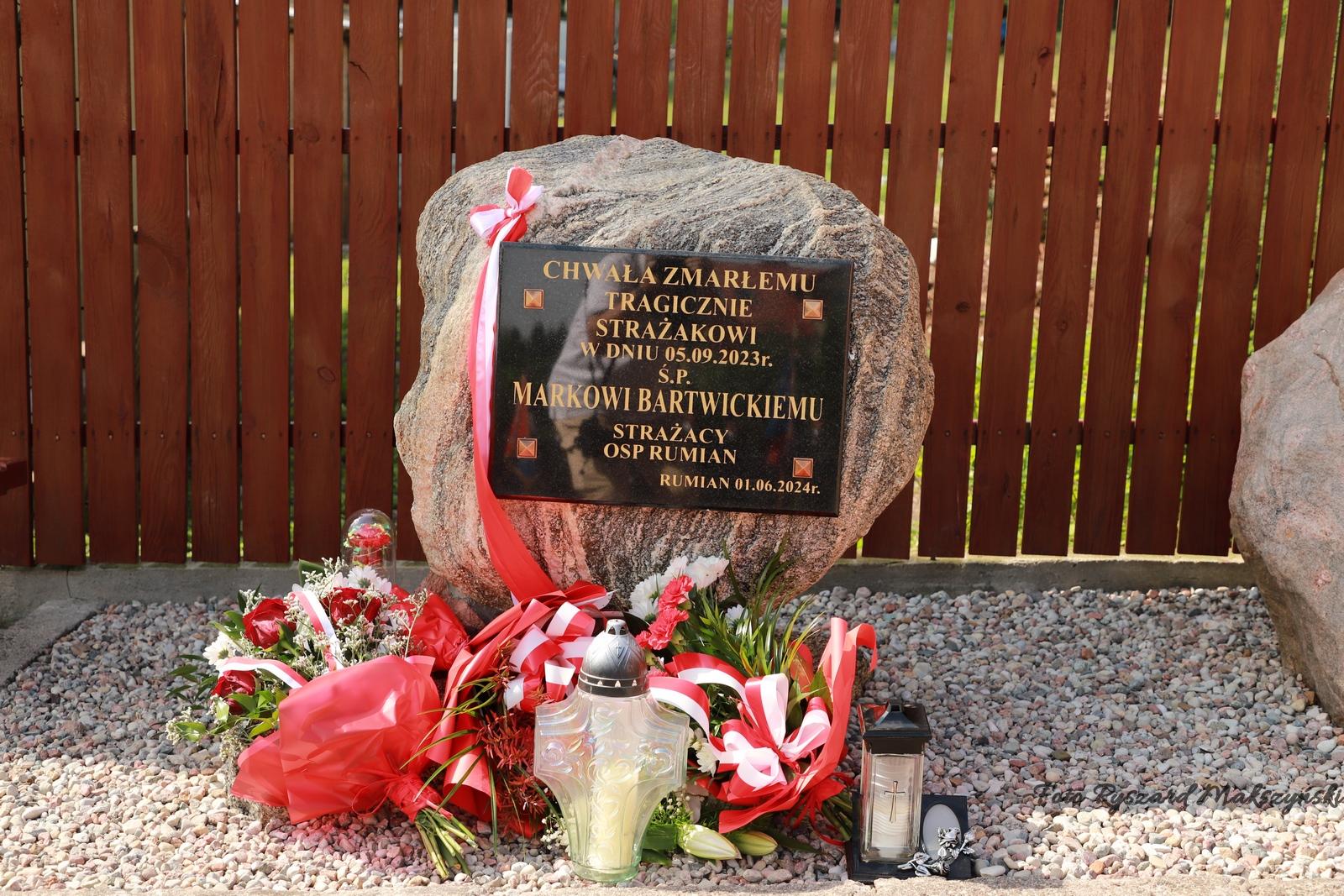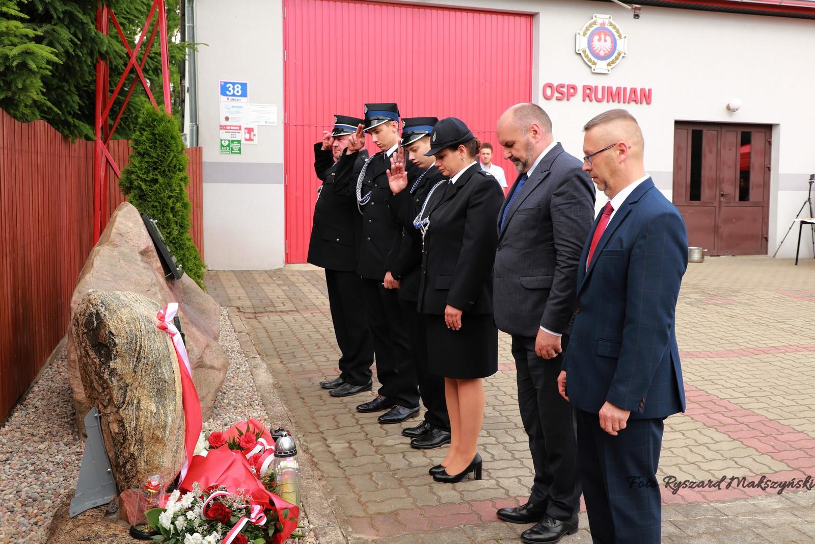 Podczas apelu dokonano odsłonięcia tablicy upamiętniającej strażaka OSP Rumian śp. dh Marka Bartwickiego, który zmarł wskutek obrażeń poniesionych podczas działań ratowniczych we wrześniu ubiegłego roku.