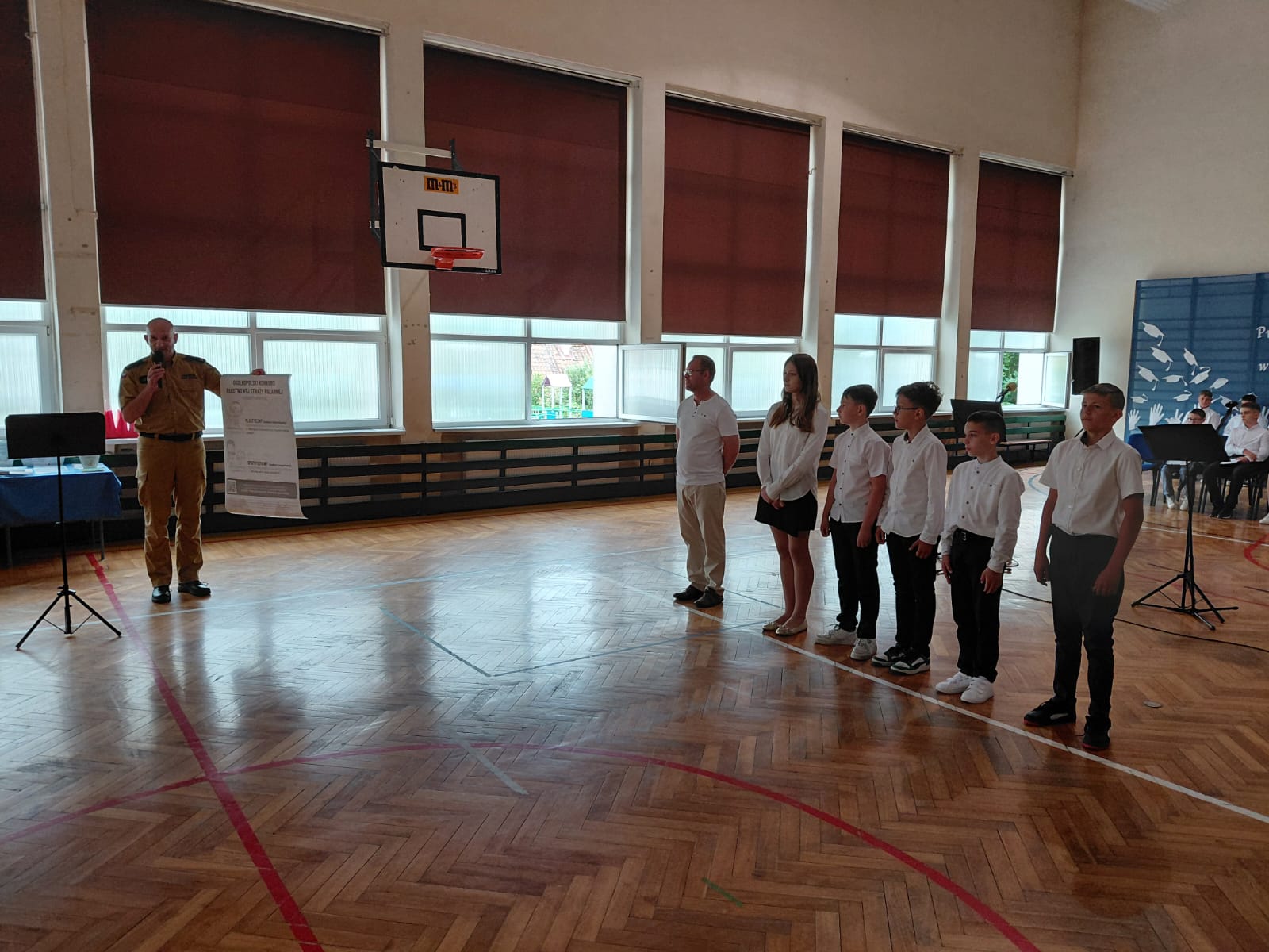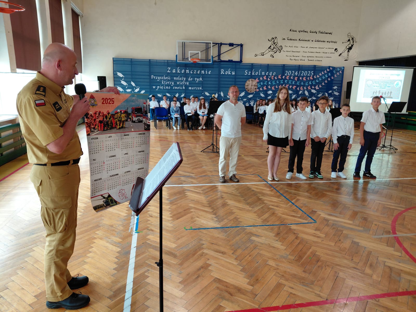 W dniu 27 czerwca 2025 roku, podczas uroczystego zakończenia roku szkolnego w Szkole Podstawowej nr 1 w Lidzbarku Welskim, Komendant Powiatowy Państwowej Straży Pożarnej st. bryg. Leszek Góralski wręczył nagrody 5 uczniom klas 4 - 8.