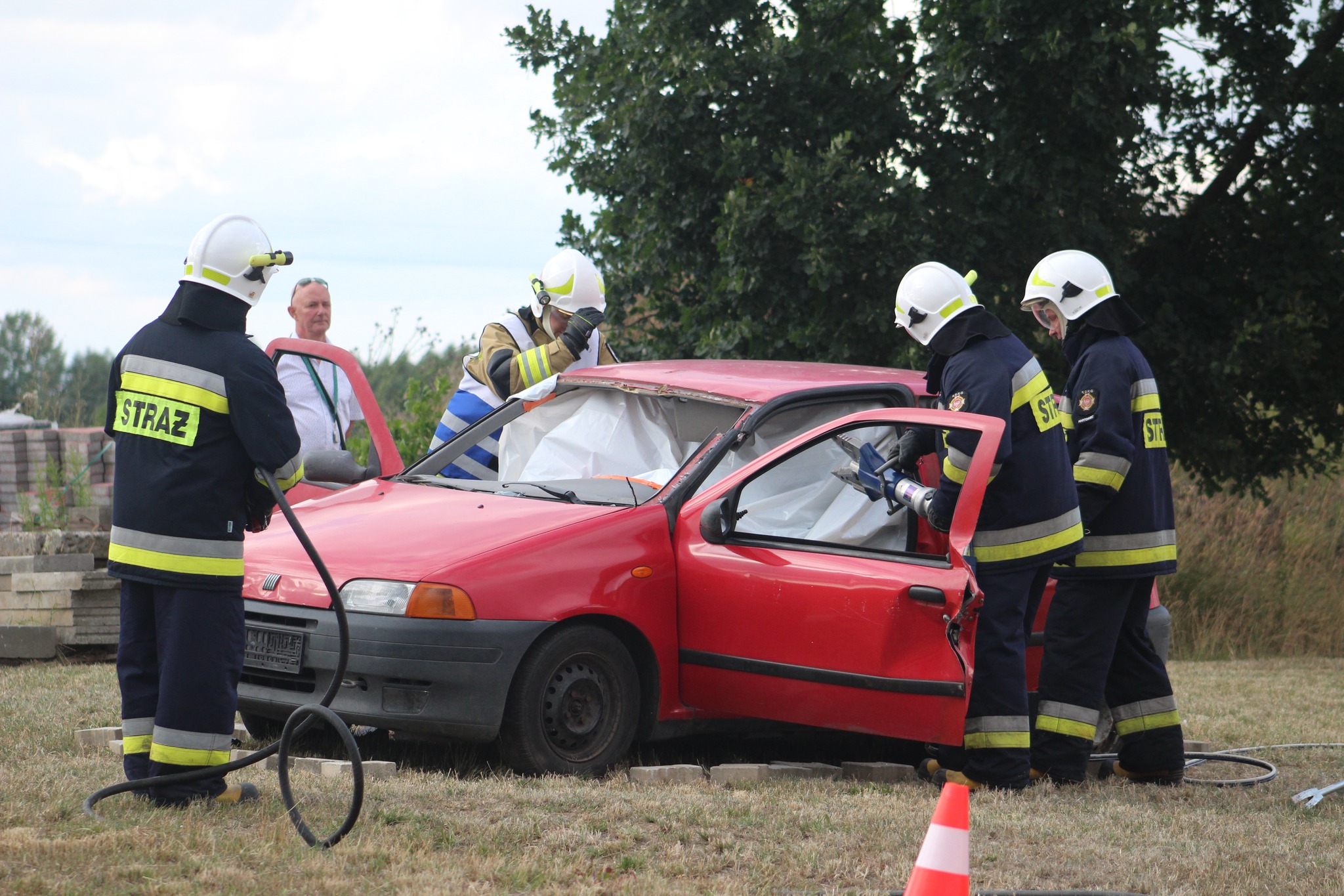 Na koniec uroczystości odbył się pokaz ratownictwa technicznego w wykonaniu Ochotniczej Straży Pożarnej w Hartowcu, a Młodzieżowa Drużyna Pożarnicza tej jednostki, zaprezentowała swoje umiejętności i sprawność podczas pokonywania toru przeszkód.
