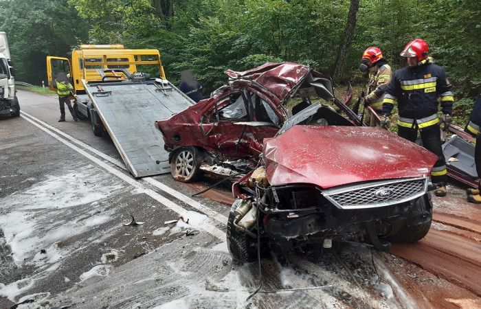 W nocy z czwartku na piątek 28 sierpnia 2020 r. do SKKP w Działdowie, dotarła informacja o wypadku na drodze wojewódzkiej nr 544, w miejscowości Sarnia Góra, w gminie Lidzbark. Jak z informacji wynikało zderzeniu uległy pojazdy osobowy z ciężarowym. Do miejsca wypadku zadysponowano: Policę, jednostki straży pożarnych z Lidzbarka, Działdowa, Słupa oraz Grążaw, a także ZRM z Lidzbarka i Górzna. Po przybyciu służb ratowniczych do miejsca zdarzenia potwierdzono zderzenie pojazdów. Siła uderzenia, pozycja pojazdu osobowego względem ciężarówki (uderzenie w bok) oraz dysproporcja masy samochodów, niestety okazały się śmiertelne w skutkach dla podróżujących osobowym Fordem mężczyzn. Na czas prowadzonych czynności prokuratorskich, grupy dochodzeniowo śledczej, a także odholowania pojazdów, drogę wojewódzką zamknięto wytyczając objazdy.