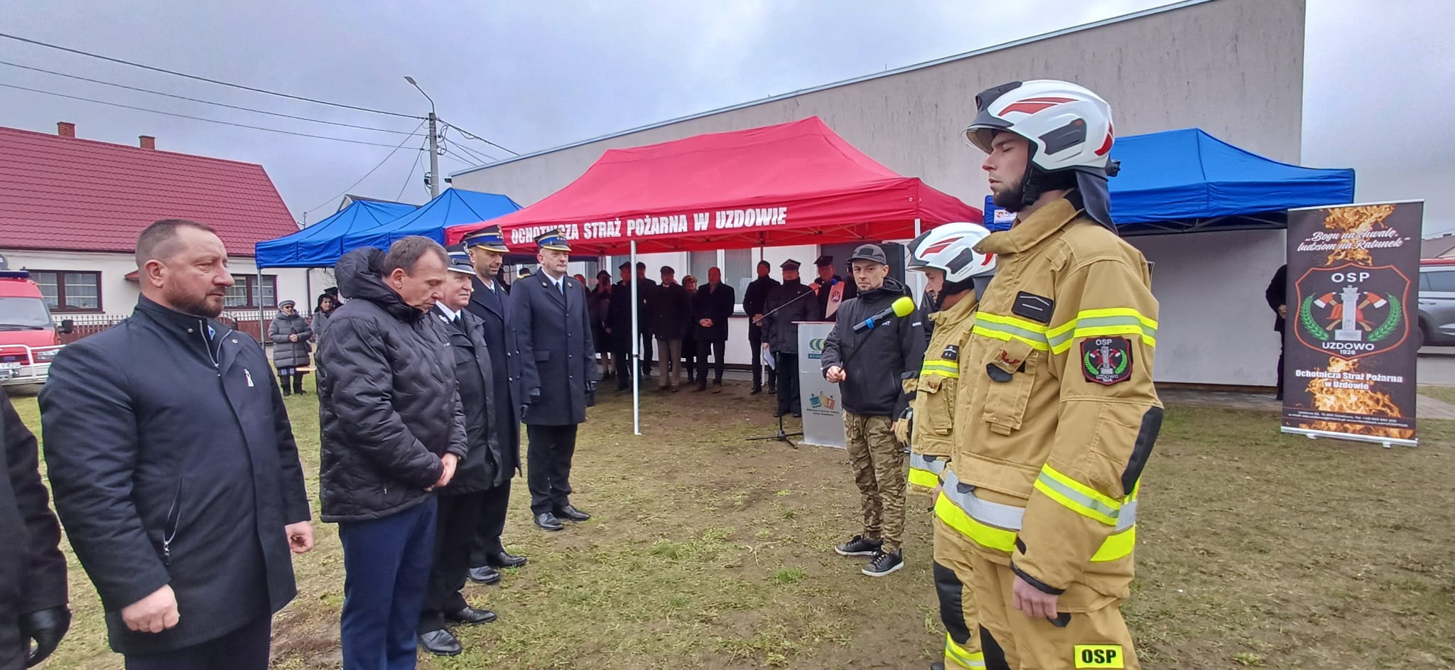 W sobotę 17.02.2024, w Uzdowie miało miejsce uroczyste przekazanie pojazdu pożarniczego jednostce OSP Uzdowo. Wydarzenie swoją obecnością uświetnili znamienici goście, m. in.: