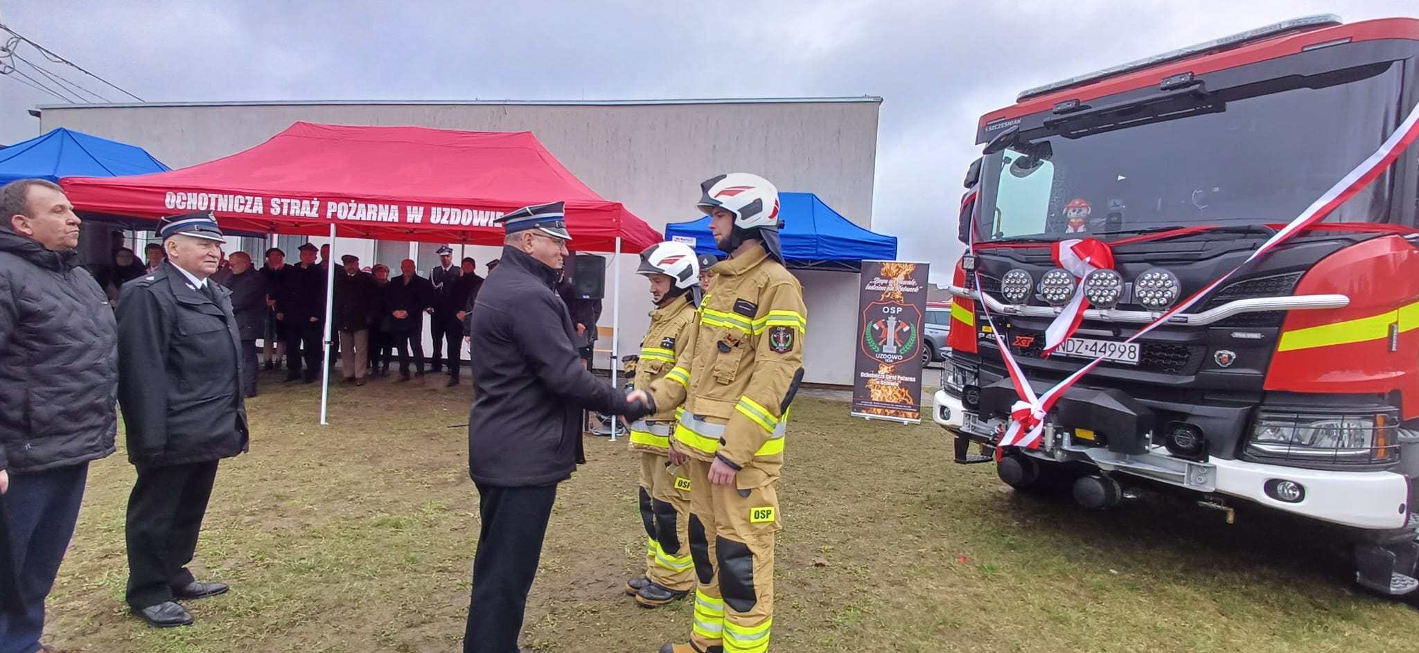 Uroczystość miała podniosły charakter i rozpoczęła się od złożenia meldunku o gotowości pododdziału do zbiórki, który przyjął dh Gustaw Marek Brzezin Prezes Zarządu Oddziału Wojewódzkiego ZOSP RP. Punktem kulminacyjnym było przekazanie przedstawicielom OSP Uzdowo aktu przekazania pojazdu, dokumentów i kluczyków do samochodu pożarniczego. Druhowie z Uzdowa wzbogacili się o nowoczesny, ciężki samochód ratowniczo-gaśniczy Scania, ze zbiornikiem wodnym mieszczącym aż 7000l wody i napędem terenowym. Poza dużym potencjałem zaopatrzenia wodnego, samochód posiada szereg udogodnień i zalet, które z pewnością pozwolą w sposób wydajniejszy i bezpieczniejszy podejmować działania ratownicze druhom. Koszt zakupu pojazdu wyniósł ponad 1,5 miliona złotych i został zrealizowany dzięki rządowo-samorządowemu montażowi finansowemu.