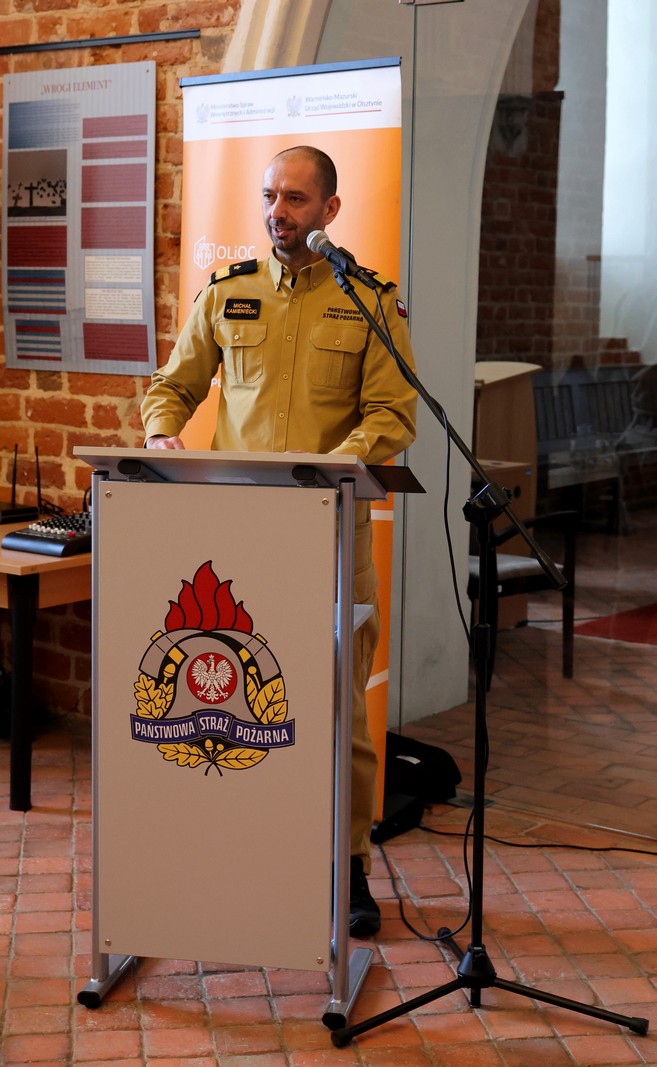 Warmińsko-Mazurski Komendant Wojewódzki PSP nadbryg. Michał Kamieniecki podziękował strażakom, samorządowcom, służbom współpracującym oraz wszystkim, którzy przyczyniają się do dbania o bezpieczeństwo mieszkańców w zakresie ochrony przeciwpożarowej. Nakreślił również przedsięwzięcia i zadania związane z ochroną ludności jakie niosą ze sobą zapisy Ustawy o ochronie ludności i obronie cywilnej.