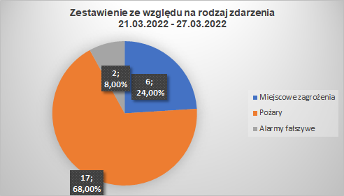 W dniach od 21.03.2022 r. do 27.03.2022 r. strażacy z naszego powiatu wyjeżdżali do zdarzeń łącznie 25 razy. Niestety nie wszyscy biorą sobie do serca nasze prośby i apele o niewypalanie traw i zachowanie ostrożności przy wiosennych pracach porządkowych, co pokazują poniższe statystyki.
