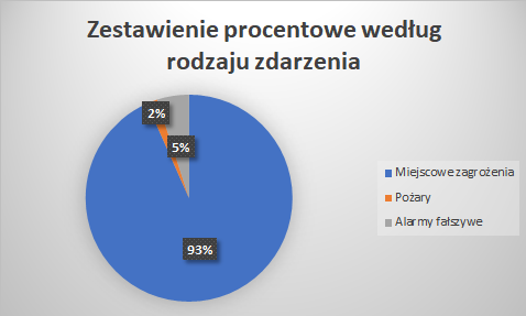 W minionym tygodniu (24.01.2022- 30.01.2022) strażacy z powiatu działdowskiego interweniowali łącznie aż 60 razy. Niestety w ostatnich dniach pogoda dała się we znaki. Wykres przedstawia procentowe zestawienie ze względu na rodzaj zdarzeń.