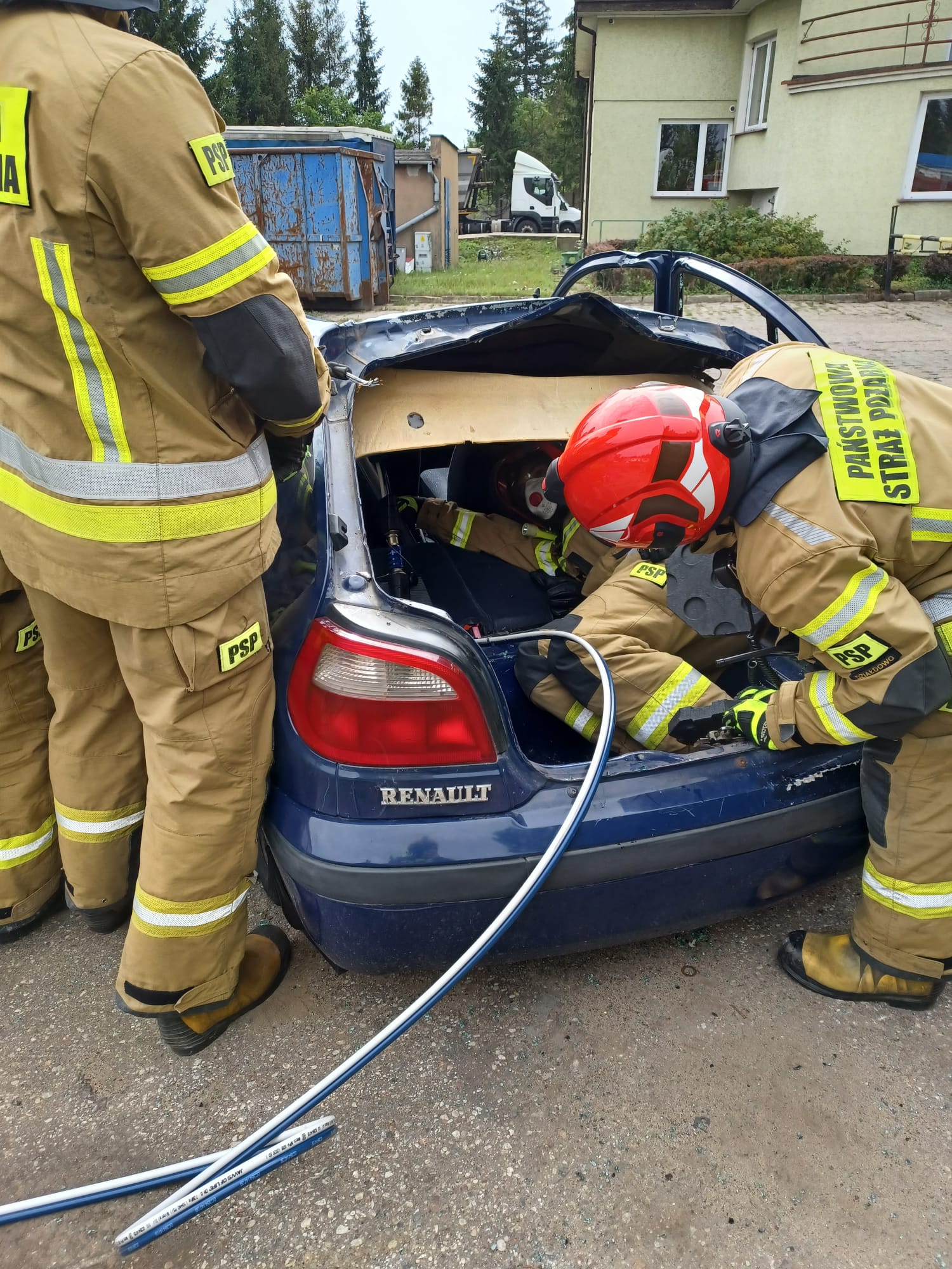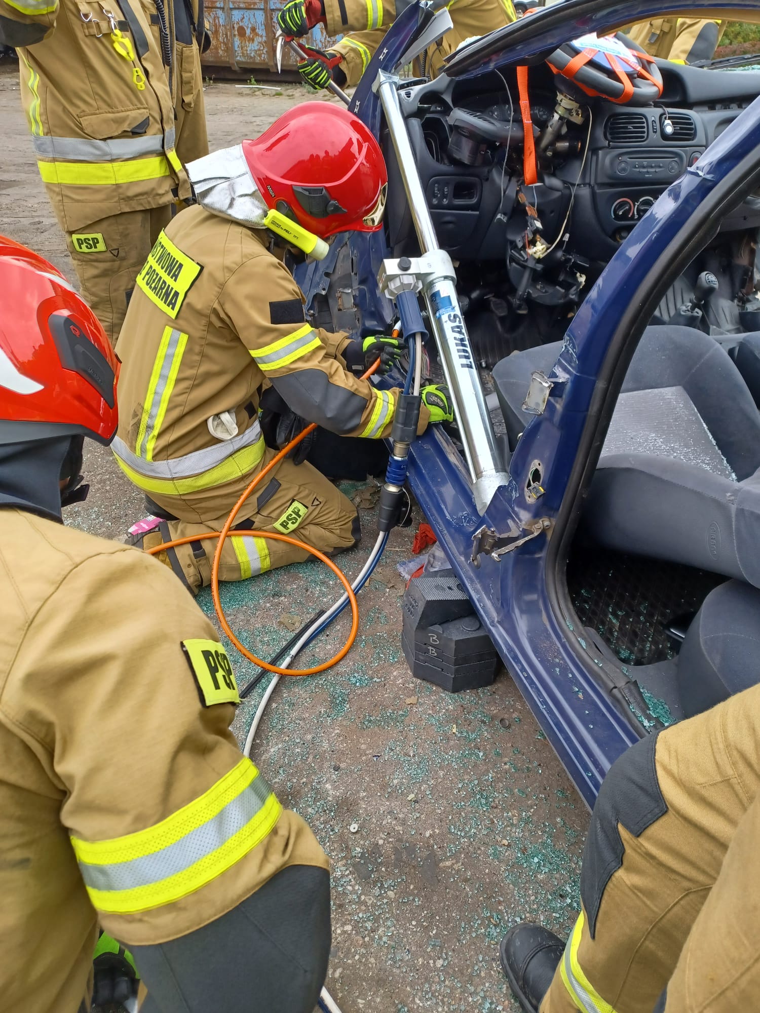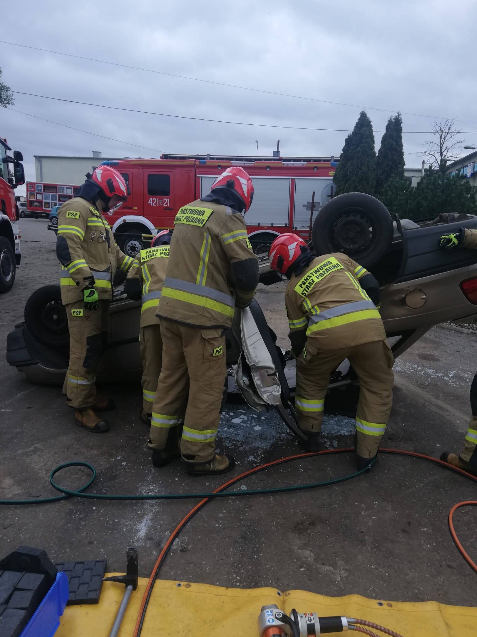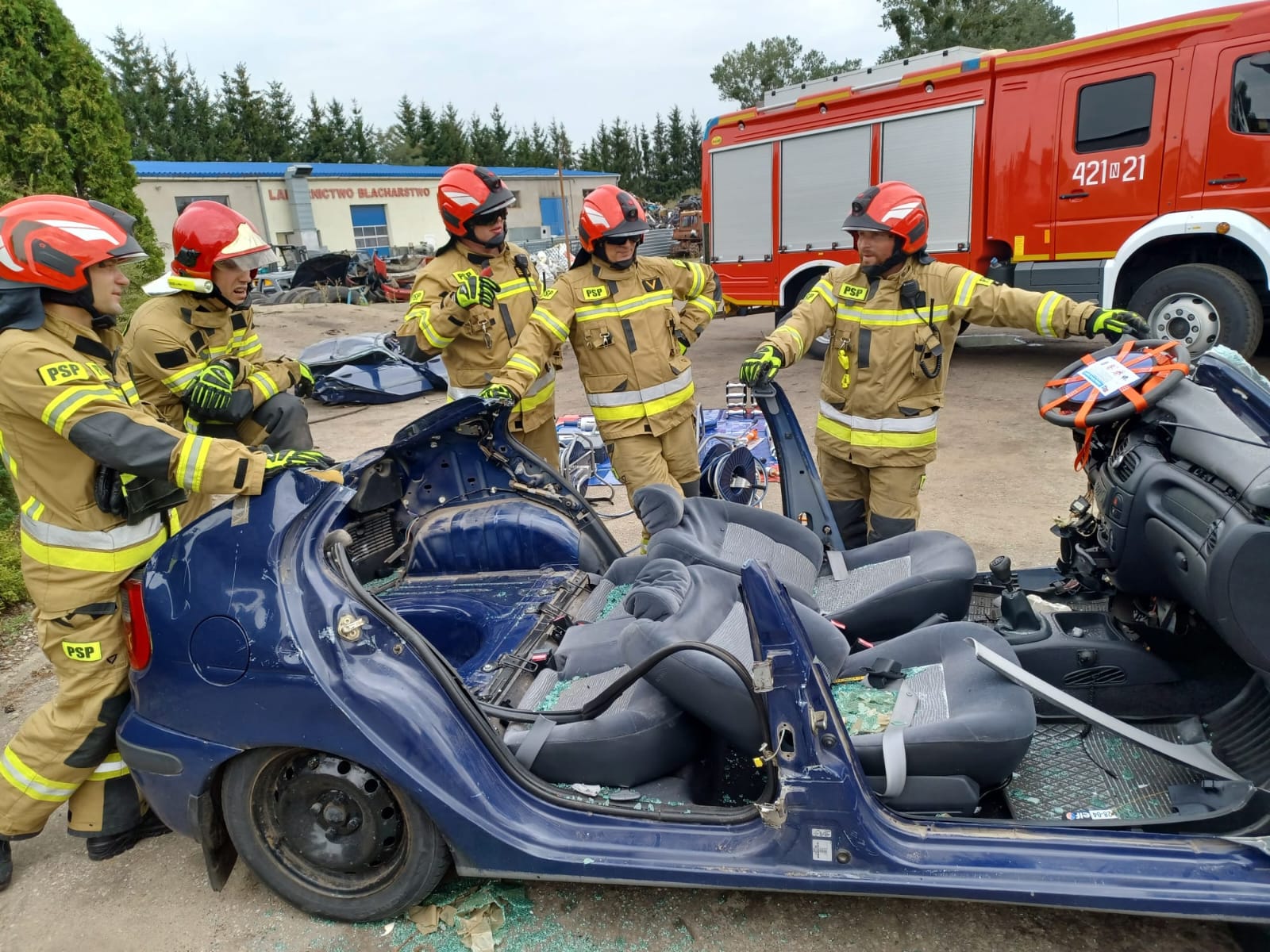 Dzięki temu, strażacy z naszej Jednostki Ratowniczo – Gaśniczej, przez cały rok mają możliwość cyklicznych ćwiczeń doskonalących w warunkach zbliżonych do rzeczywistych. W tym celu, pracownicy firmy zawsze służą pomocą i ciężkim sprzętem odpowiednio uszkadzają oraz ustawiają wraki pojazdów, w zależności od założenia. Wypadki samochodowe, w których dochodzi do zdeformowania pojazdów i uwięzienia poszkodowanych w środku w takim stopniu, że konieczne jest użycie specjalistycznego sprzętu hydraulicznego (sprzęt typu nożyce, rozpieracze, do cięcia i rozpierania elementów oraz karoserii samochodu), na szczęście nie zdarzają się zbyt często. Jednak ze względu na to, strażacy muszą kłaść duży nacisk na doskonalenie z tego obszaru działań, bo gdy zajdzie już potrzeba takiej interwencji, muszą działać szybko i efektywnie. Często w walce o ludzkie życie liczą się nawet nie minuty, a sekundy. Bez możliwości organizowania takich cyklicznych, systematycznych ćwiczeń, optymalizacja działań w zakresie ratownictwa technicznego i minimalizowanie czasu wydobycia osób uwięzionych w pojazdach, nie byłoby możliwe. Dzięki Państwu, możemy utrzymywać wiedzę i umiejętności strażaków z tej dziedziny na wysokim poziomie. Dziękujemy, że bezpieczeństwo mieszkańców naszego powiatu, nie jest Państwu obojętne.