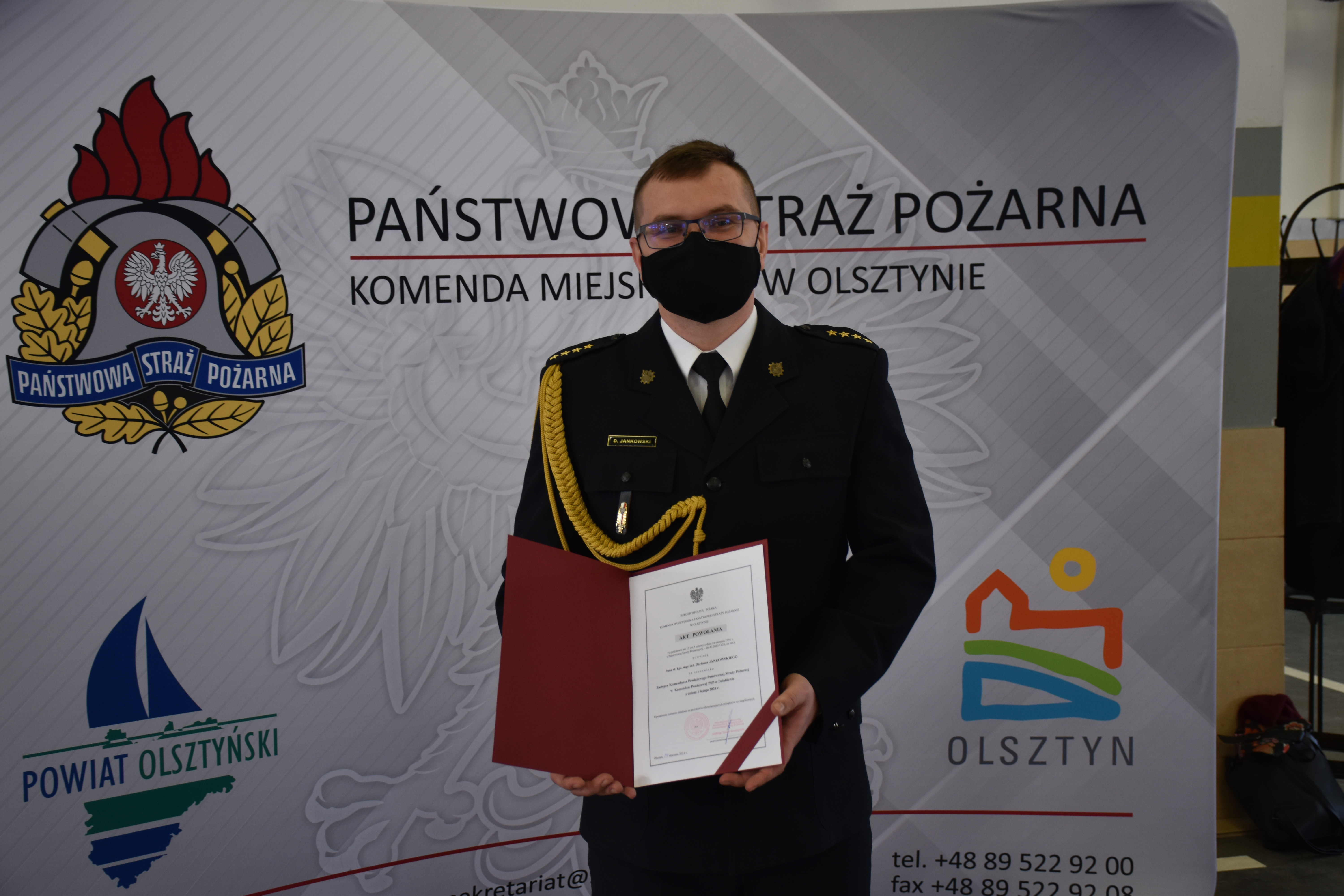 Podczas uroczystości Warmińsko-Mazurski Komendant Wojewódzki Państwowej Straży Pożarnej powołał na stanowisko Zastępcy Komendanta Powiatowego Państwowej Straży Pożarnej w Działdowie st. kpt. Dariusza Jankowskiego oraz powierzył obowiązki na stanowisku Zastępcy Komendanta Miejskiego Państwowej Straży Pożarnej w Olsztynie mł. bryg. Łukaszowi Jasińskiemu.