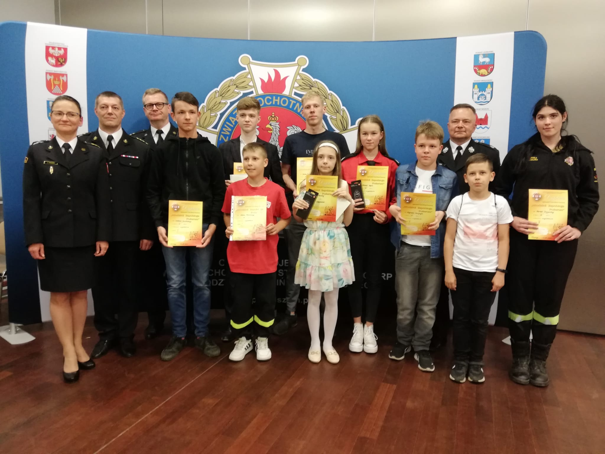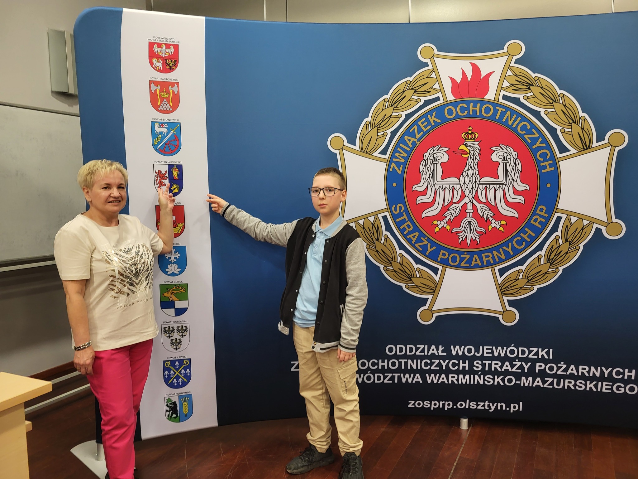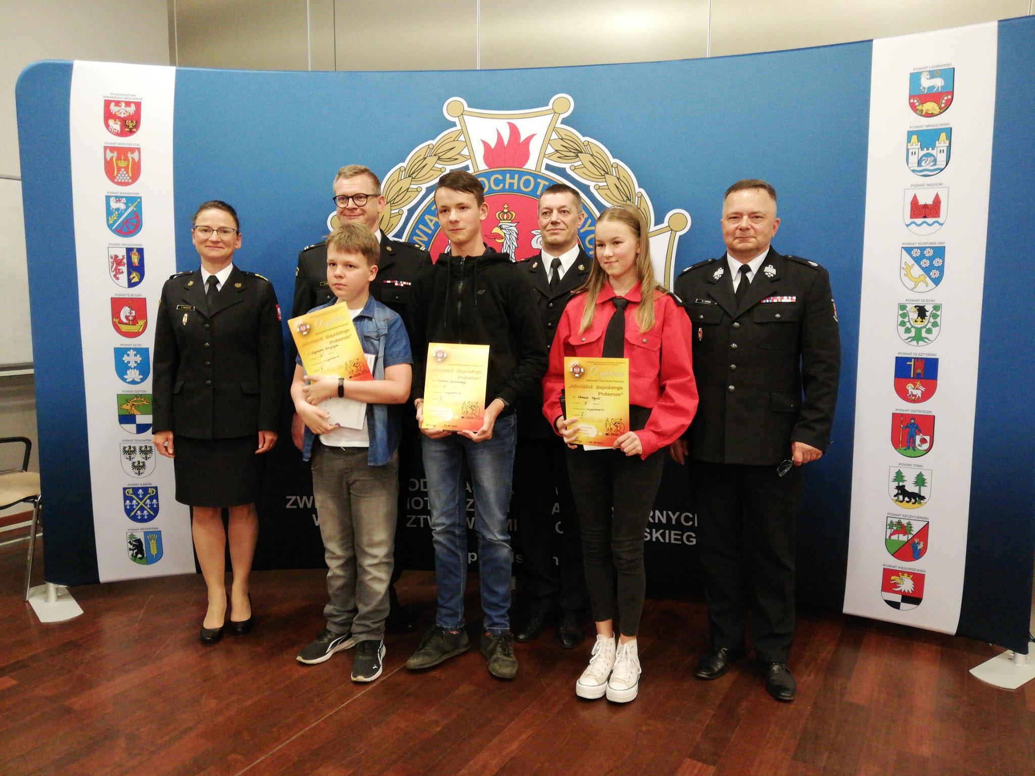 26 maja 2023 roku odbyły się wojewódzkie - warmińsko-mazurskie eliminacje 46 Ogólnopolskiego Turnieju Wiedzy Pożarniczej „Młodzież Zapobiega Pożarom”. Konkurs został przygotowany przez Oddział Wojewódzki Związku OSP RP Woj. Warmińsko-Mazurskiego we współpracy z Komendą Wojewódzką PSP w Olsztynie. Miejscem zmagań młodych uczestników była Biblioteka Uniwersytecka UWM w Olsztynie. Po przebrnięciu przez etapy eliminacji szkolnych, gminnych oraz powiatowych, troje najlepszych zawodników z naszego powiatu (po 1 z każdej kategorii wiekowej), ruszyło na podbój województwa. Tam ogromny sukces, drugie miejsce Czesława Jaskólskiego w kategorii klas V-VIII, i tym samym awans do finału centralnego OTWP (zdobywcy dwóch pierwszych miejsc w każdej z kategorii wiekowych awansują do finałów krajowych) Ten odbędzie się już 3-4 czerwca br. we Wrześni (woj. wielkopolskie). Czesław to uczeń Szkoły Podstawowej w Bryńsku oraz członek Młodzieżowej Drużyny Pożarniczej OSP Bryńsk. Podkreślić trzeba również bardzo dobre przygotowanie pozostałych przedstawicieli naszego powiatu: Julianny Szustek oraz Juliana Szczygłowskiego, którzy to w swoich kategoriach uplasowali się tuż za podium. Gratulujemy wyników i życzymy powodzenia w zmaganiach finałowych.