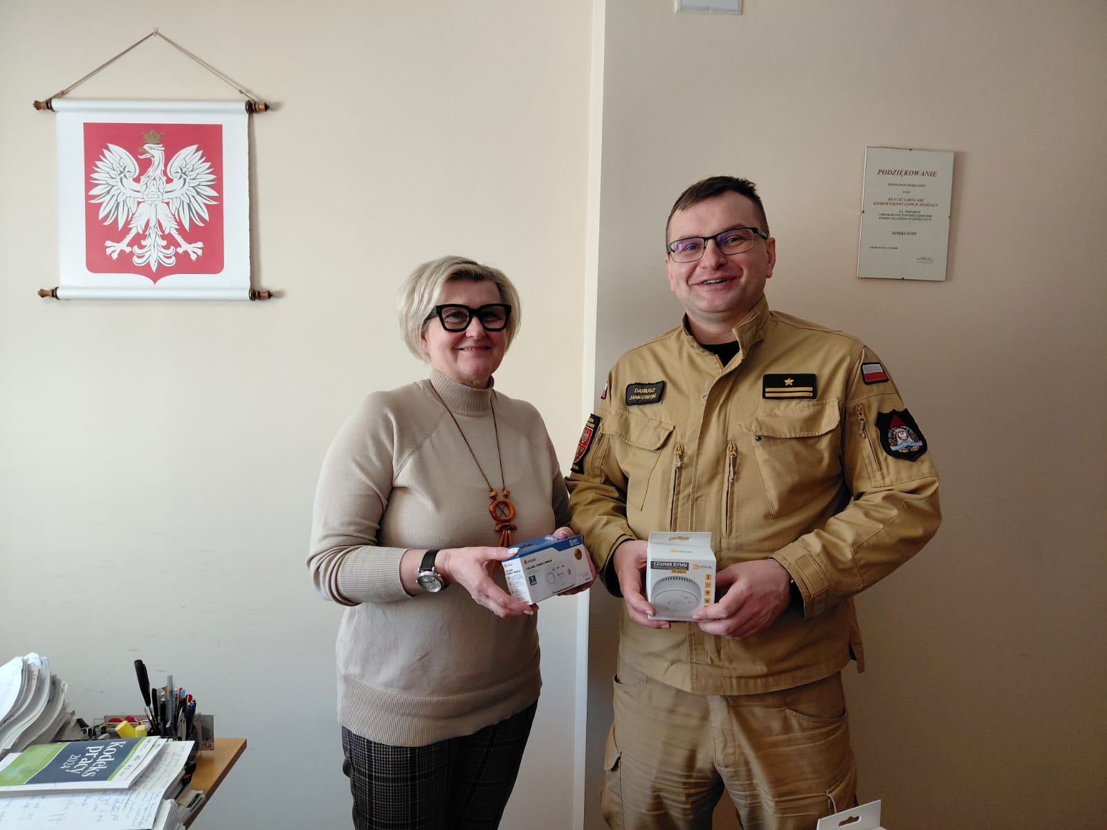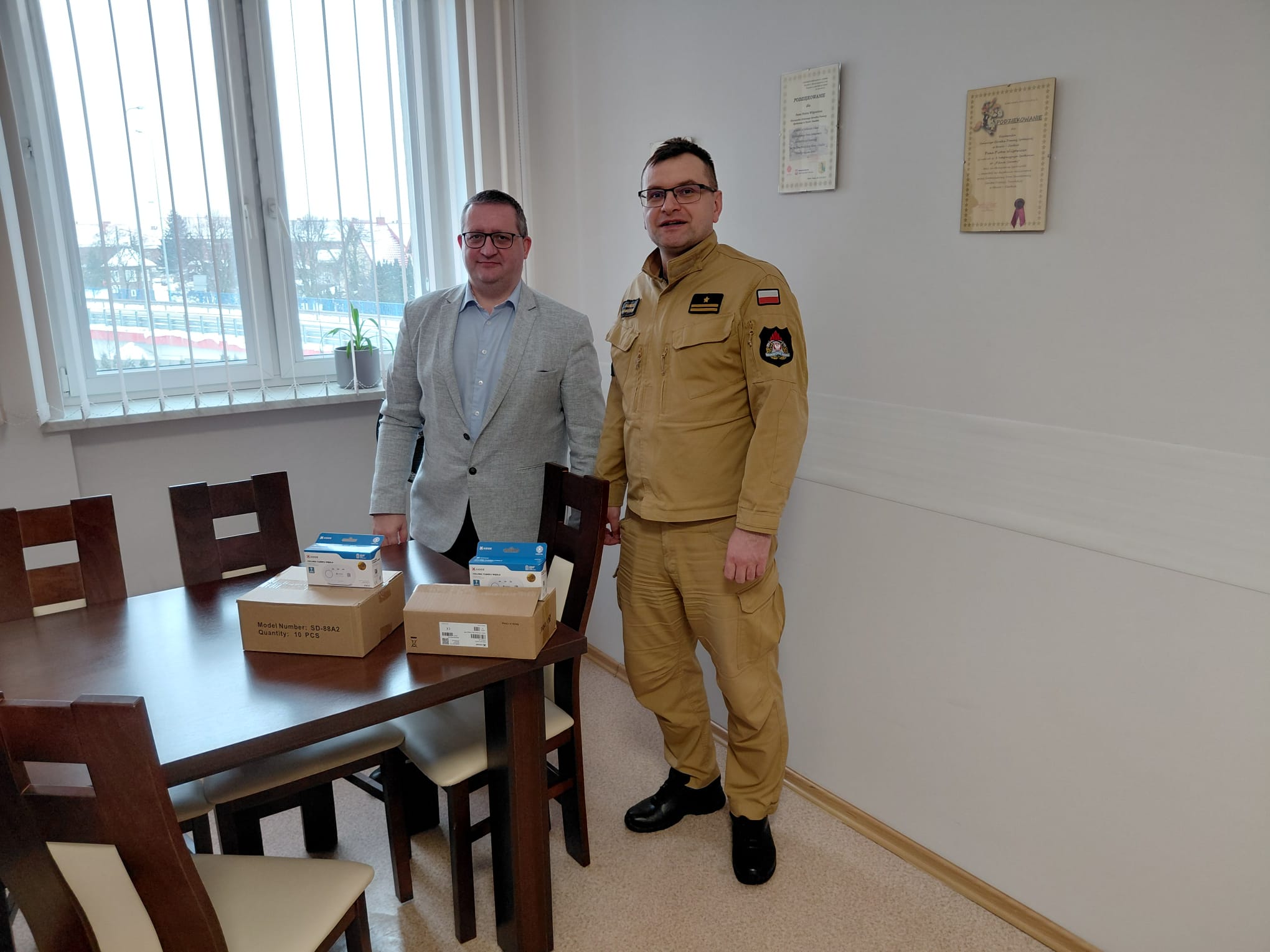 Strażacy PSP w Działdowie przekazali czujki samorządom z terenu powiatu działdowskiego. Wskazanie osób najbardziej potrzebujących będzie realizowane m.in. przez Miejskie i Gminne Ośrodki Pomocy Społecznej (MOPS/GOPS), co pozwala skutecznie dotrzeć do tych, którzy najbardziej potrzebują wsparcia.