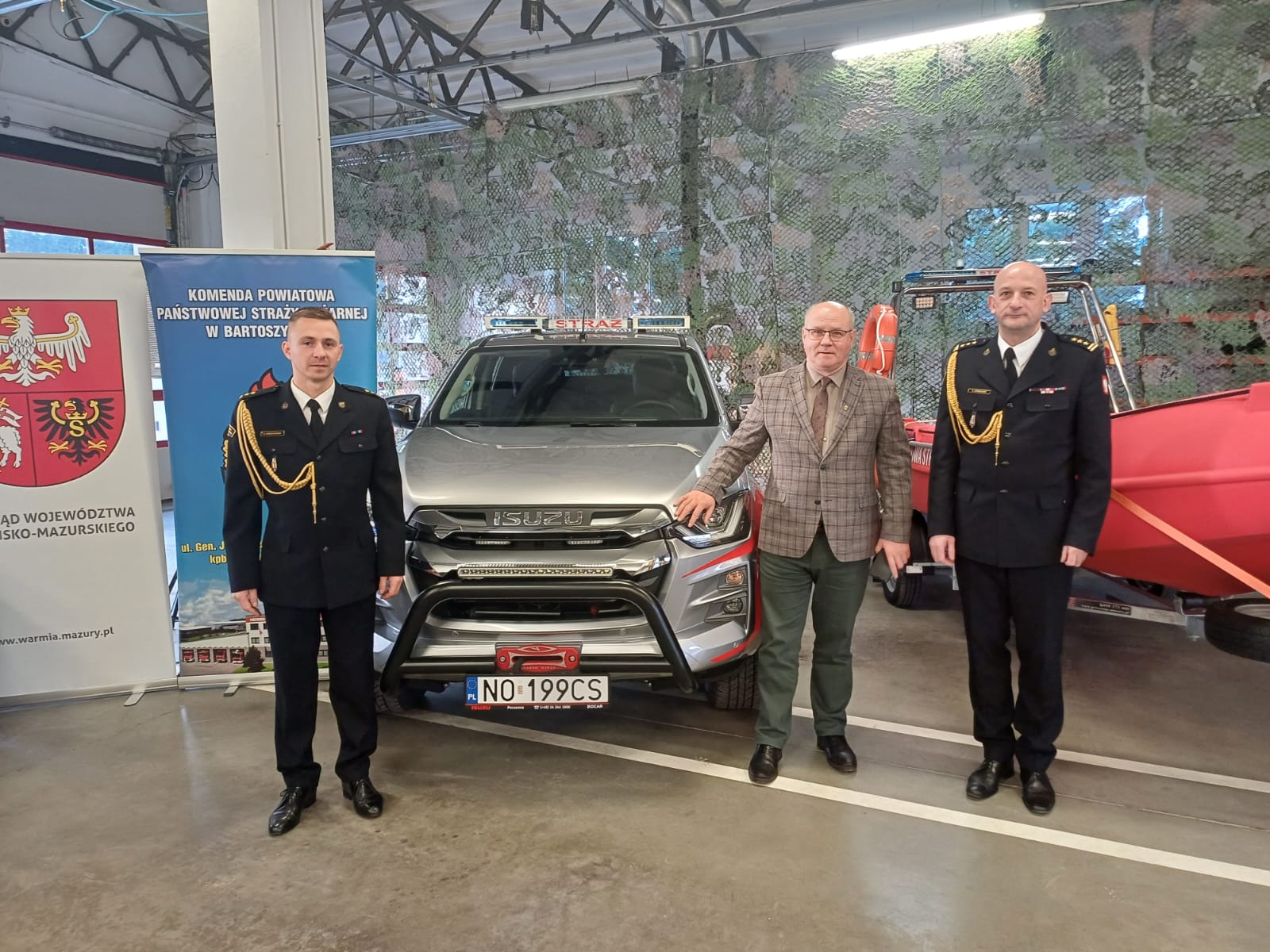 W czwartek 6 lutego w Komendzie Powiatowej Państwowej Straży Pożarnej w Działdowie, nastąpiło przekazanie samochodu Nissan Navara, który od 2007 roku użytkowany był w naszej komendzie. Od teraz pojazd służył będzie jednostce OSP Uzdowo. Przekazanie było możliwe między innymi ze względu na wzbogacenie się naszej komendy o nowy samochód operacyjny ISUZU D-MAX, który od ponad miesiąca jest już w naszym użytkowaniu – jego oficjalne przekazanie odbyło się w piątek 20 grudnia, w siedzibie Komendy Powiatowej Państwowej Straży Pożarnej w Bartoszycach, podczas uroczystej zbiórki z udziałem m. in. Marcina Kuchcińskiego – Marszałka Województwa Warmińsko-Mazurskiego oraz nabryg. Michała Kamienickiego – Warmińsko-Mazurskiego Komendanta Wojewódzkiego PSP. Obecny na niej był również Komendant Powiatowy PSP w Działdowie st. bryg. Leszek Góralski i Starosta Działdowski Paweł Cieśliński. Zbiórka zorganizowana została przede wszystkim z okazji oficjalnego przekazania samochodów pożarniczych i łodzi ratowniczej jednostkom PSP, które finansowane były ze środków przekazanych przez Urząd Marszałkowski Województwa Warmińsko-Mazurskiego. Z tego źródła, nasza komenda została wsparta kwotą 50 000 zł. Zakup nie byłby możliwy, gdyby nie pozostałe dotacje, w tym przez Starostwo Powiatowe w Działdowie w kwocie 150 000zł, Miasto Działdowo- 40 000 zł, Gmina Działdowo – 12 000 zł.