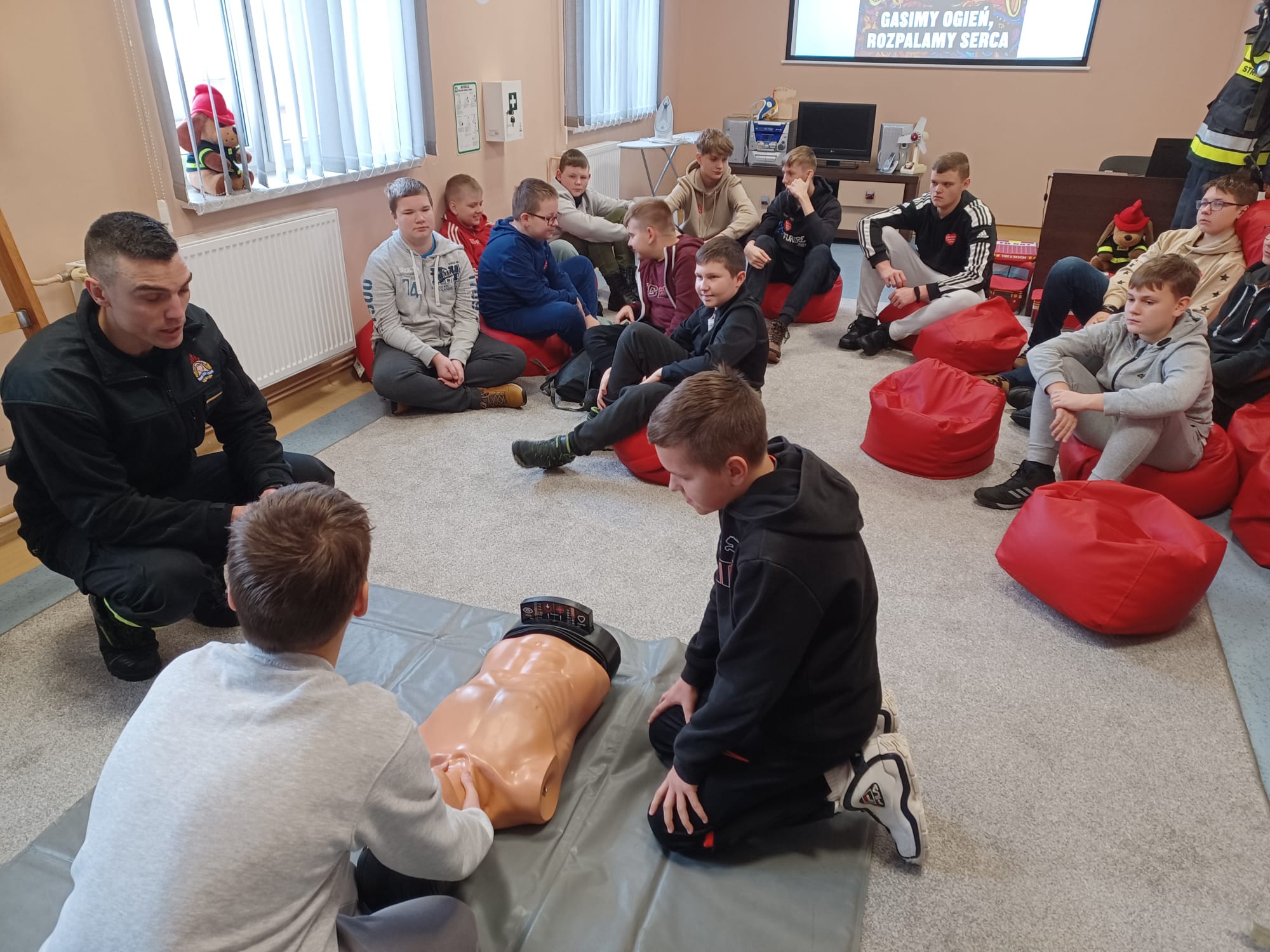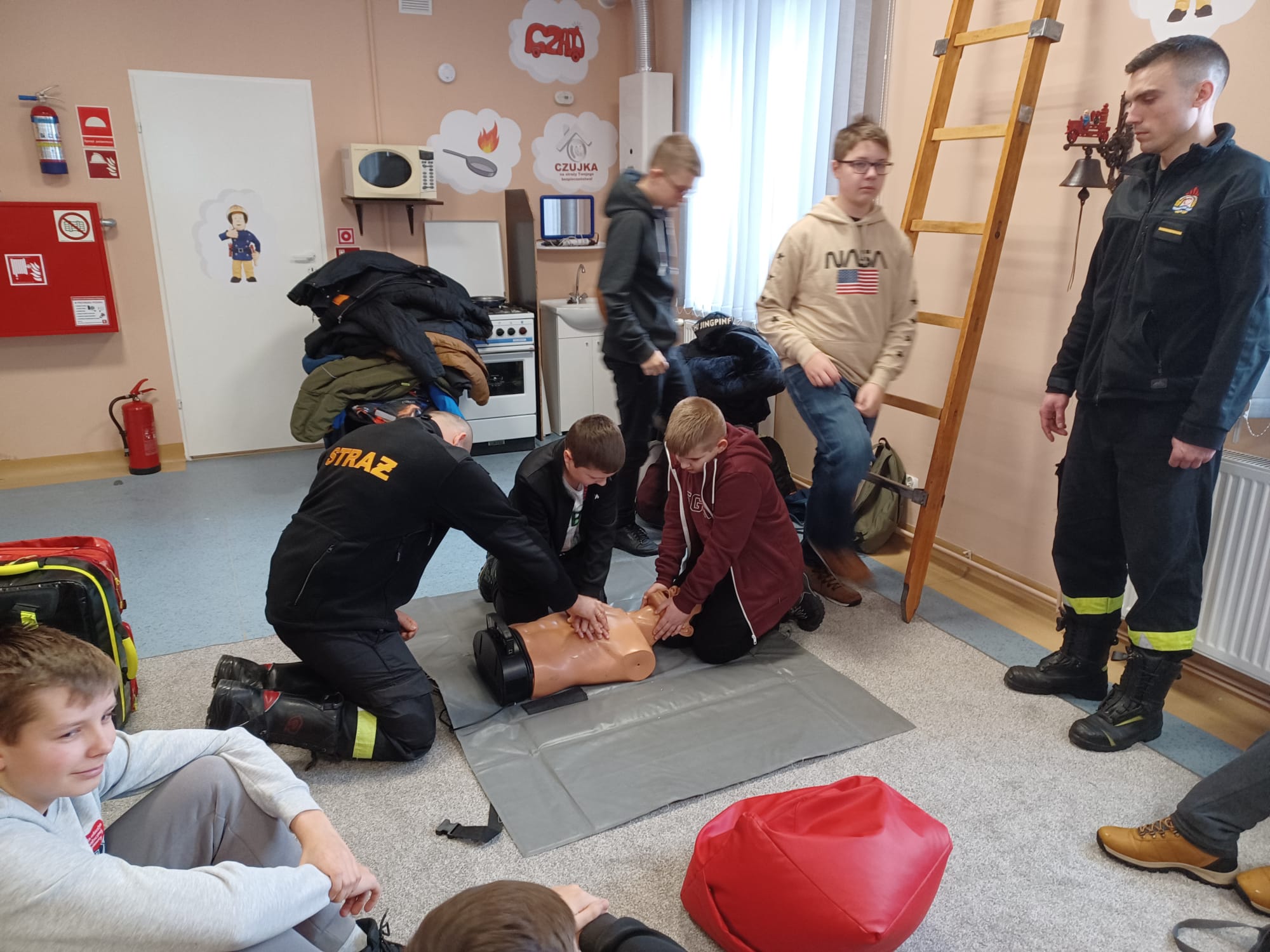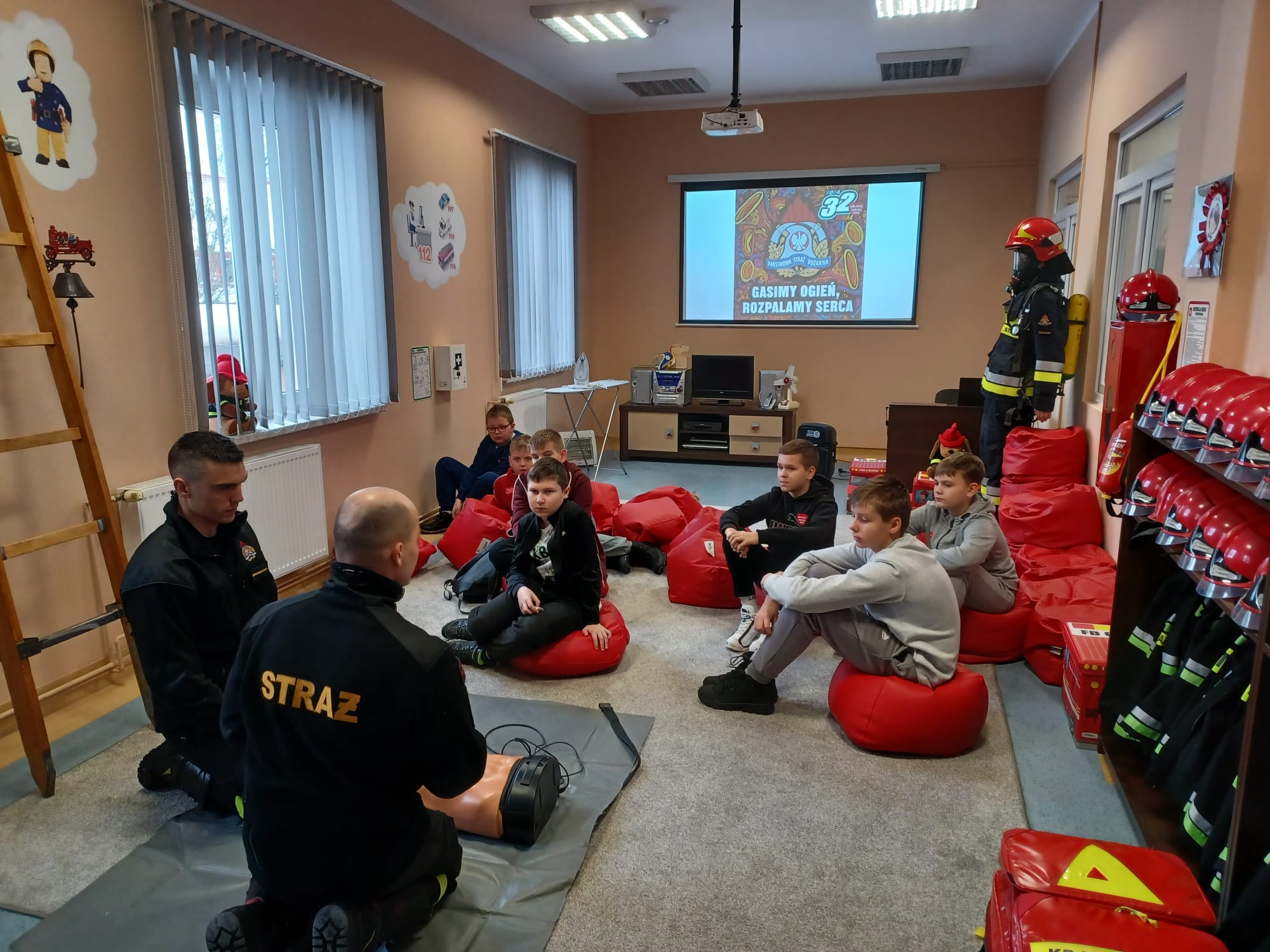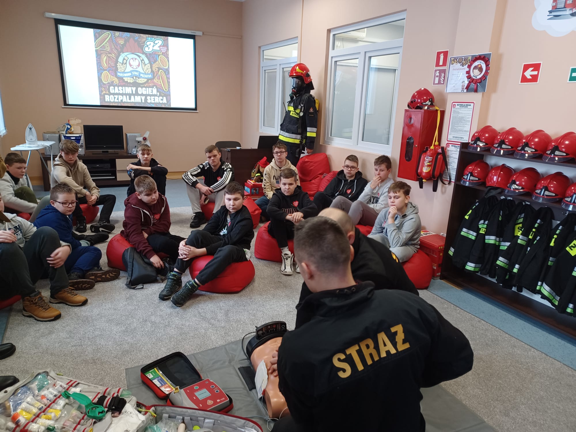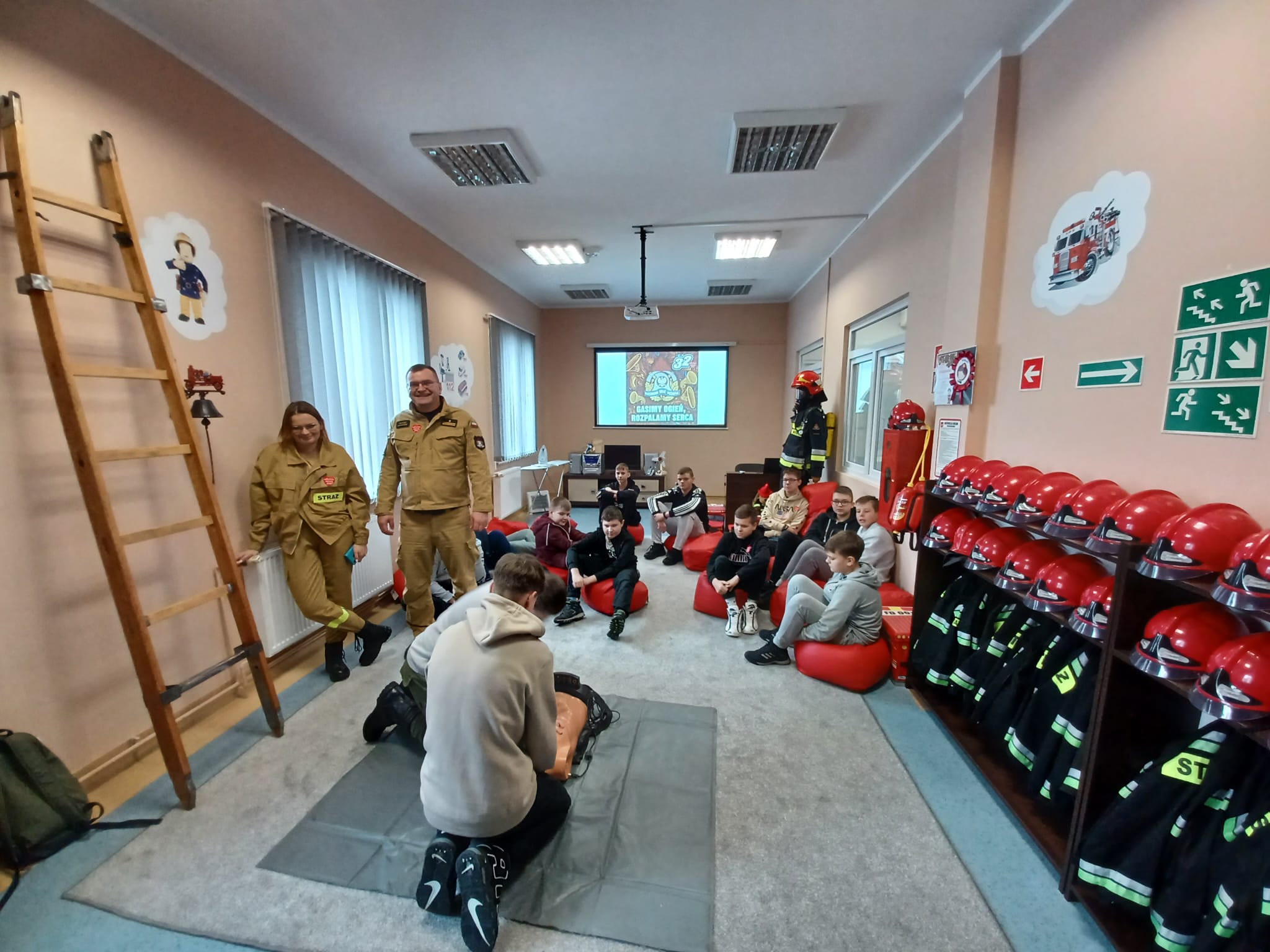 Nasi goście mogli zapoznać się z tym jak wygląda codzienna praca strażaka, brali udział w pokazach i nauce pierwszej pomocy oraz pogadankach na temat bezpiecznego wypoczynku podczas ferii zimowych, które w naszym województwie właśnie się rozpoczęły. Dodatkową atrakcją był pokaz sprzętu strażackiego, czy też prezentacja alarmowania o wyjeździe do zdarzenia. Dużym zainteresowaniem cieszyło się pomieszczenie z symulowanym zadymieniem, które w sposób bezpieczny odzwierciedlało warunki pożarowe. Dzieci miały namiastkę tego, z czym strażacy mierzą się podczas pożaru, ucząc się przy tym zachowania i poruszania w takich warunkach. Przez chwilę nasi goście mogli poczuć się jak prawdziwi strażacy, przeszukując pomieszczenie z użyciem kamery termowizyjnej. Serdecznie dziękujemy za odwiedziny!
