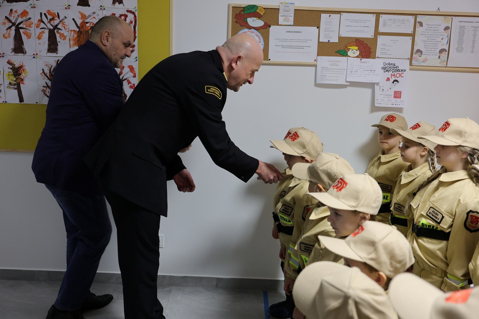 W poniedziałek 17 listopada w Przedszkolu w Rybnie przy ul Wyzwolenia 10 odbyła się niecodzienna uroczystość związana ze ślubowaniem małych strażaków z zawiązanej niedawno Przedszkolnej Drużyny Pożarniczej. Do ślubowania przystąpiła grupa dwudziestu przedszkolaków z różnych grup przedszkolnych, którzy sami, jak również ich rodzice, wyrazili chęć przynależności do tego typu grupy. Pomysłodawcami założenia grupy był Wójt Gminy Rybno Pan Tomasz Węgrzynowski i Dyrektor Przedszkola Pani Joanna Psiuk. Bezpośrednim opiekunem grupy jest jedna z wychowawczyń przedszkolnych. Zajęcia dla dzieci organizowane będą też przez miejscową jednostkę OSP przy udziale Komendy Powiatowej PSP w Działdowie. W ślubowaniu wzięła udział Pani Poseł Katarzyna Królak, Wójt Gminy Rybno, radni gminni, Komendant Powiatowy PSP w Działdowie st. bryg. Leszek Góralski, przedstawiciele Zarządu Gminnego ZOSP RP, jednostki OSP Rybno, dyrekcja i wychowawcy przedszkolni oraz rodzice małych strażaków. Pani Poseł ufundowała dla członków grupy hełmy i toporki. Mali strażacy zasilą wkrótce szeregi Młodzieżowych drużyn pożarniczych w gminie Rybno, a w przyszłości być może szeregi Ochotniczych Straży Pożarnych. Serdecznie dziękujemy za wdrażanie pożytecznych inicjatyw w życie.