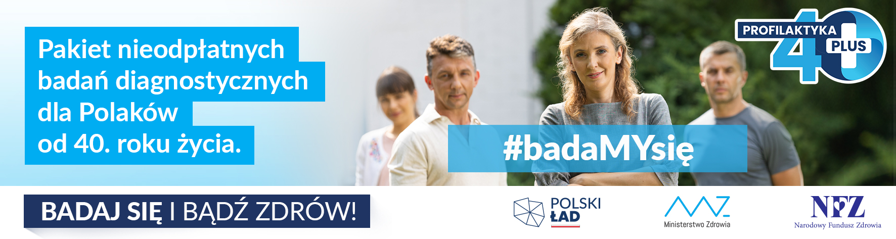 Narodowy Fundusz Zdrowia wspólnie z Ministerstwem Zdrowia realizuje program „Profilaktyka 40 PLUS”. W ramach programu każdy Polak, który ukończył 40 lat, dobrowolnie i bezpłatnie wykona jednorazowo pakiet badań diagnostycznych. Szczegółowe informacje znajdą Państwo na stronie pacjent.gov.pl – Internetowe Konto Pacjenta (IKP) lub za pośrednictwem Domowej Opieki Medycznej pod nr telefonu (22) 735-39-53.