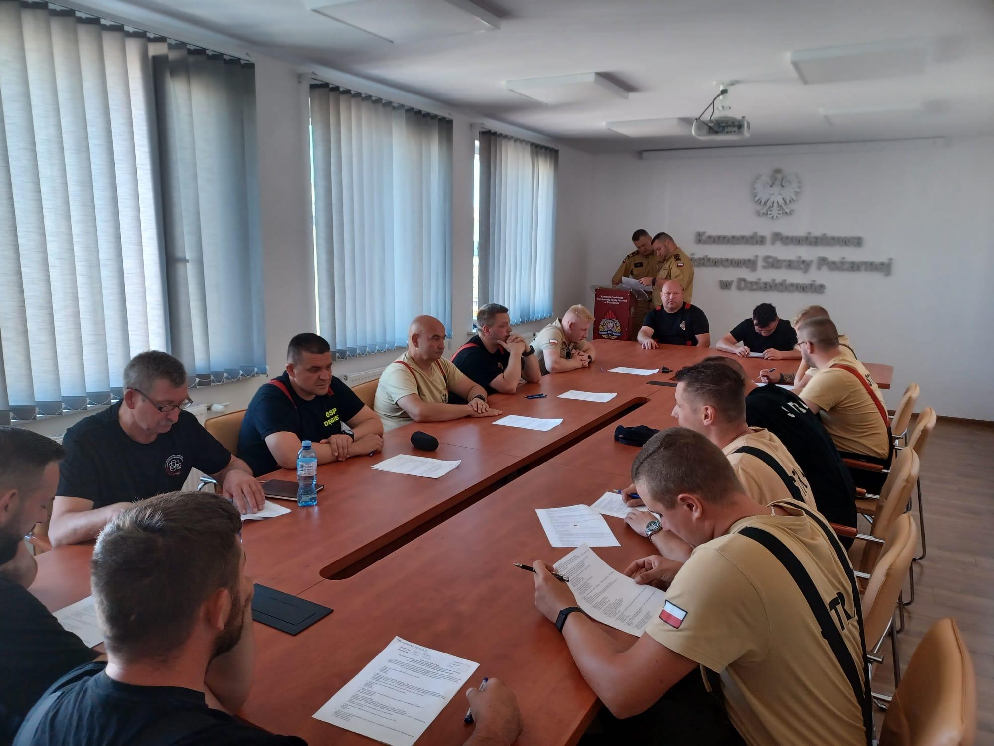 W niedzielę 21 lipca, odbył się egzamin dla słuchaczy szkolenia kierującego działaniem ratowniczym dla strażaka ratownika OSP (dowódcy OSP). Kurs zrealizowany został w trakcie dwóch weekendów, w siedzibie Komendy Powiatowej PSP w Działdowie. Nadzór nad jego przebiegiem pełniła Komenda Wojewódzka PSP w Olsztynie. Dedykowany był dla strażaków ratowników ochotniczych straży pożarnych z terenu naszego powiatu. Udział w szkoleniu brali strażacy, którzy posiadają już minimum 3 letnie doświadczenie po kursie podstawowym i poszerzali na nim swoją wiedzę oraz umiejętności, dotyczące zagadnień kierowania działaniami ratowniczymi. Ukończenie szkolenia nadaje uprawnienia dowódcze w strukturach OSP. Spośród 30 słuchaczy, 25 druhów i druhen pomyślnie ukończyło kurs. Serdecznie gratulujemy!