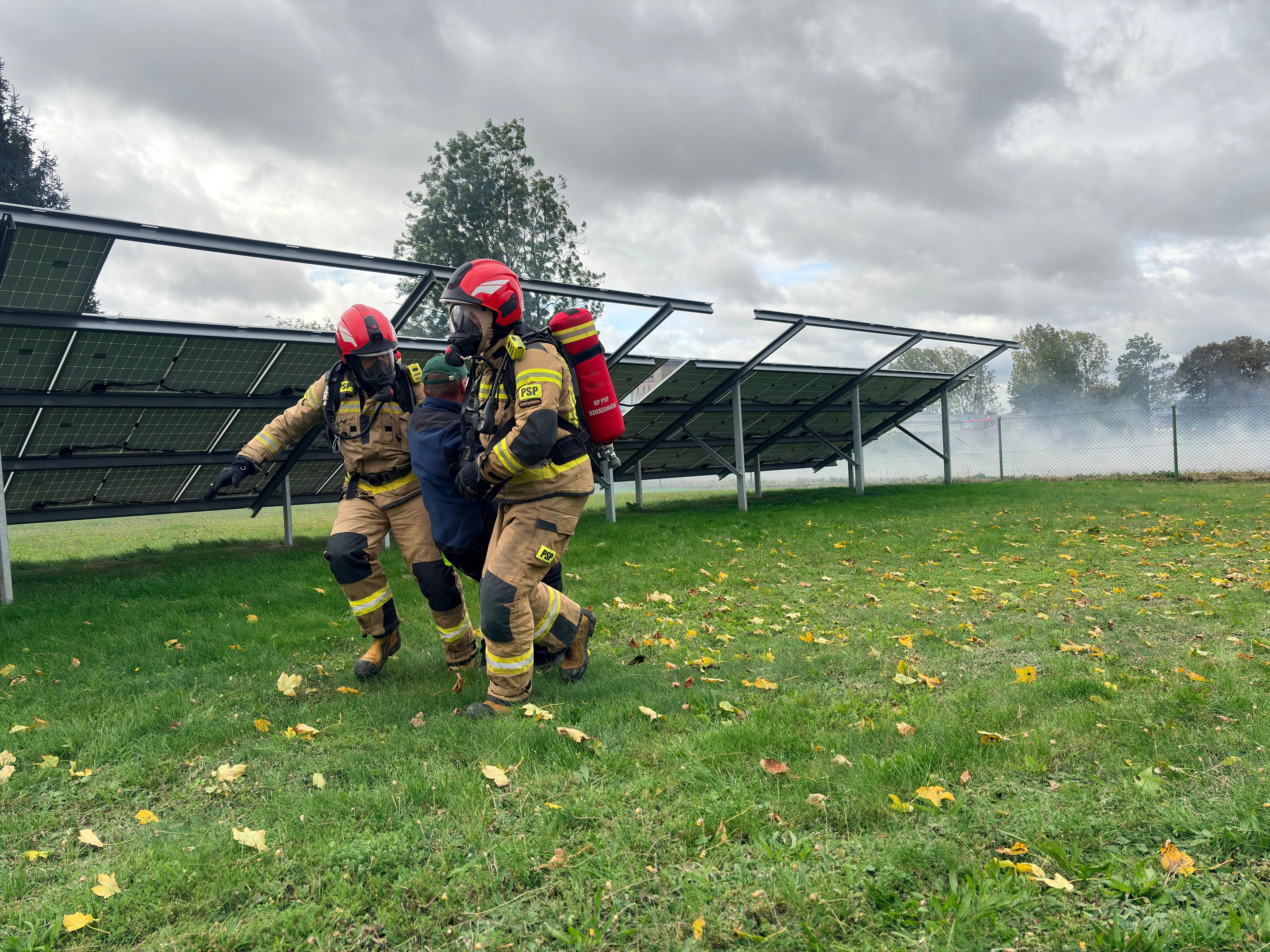Epizod II – W wyniku rozprzestrzenienia się pożaru z pola, zapaliła się instalacja fotowoltaiczna znajdująca się na terenie przepompowni. Dwie osoby, które próbowały samodzielnie ugasić ogień, odniosły obrażenia. Strażacy przegrupowali siły i środki, wyznaczyli drugi odcinek bojowy i podjęli skuteczne działania ratowniczo-gaśnicze.
