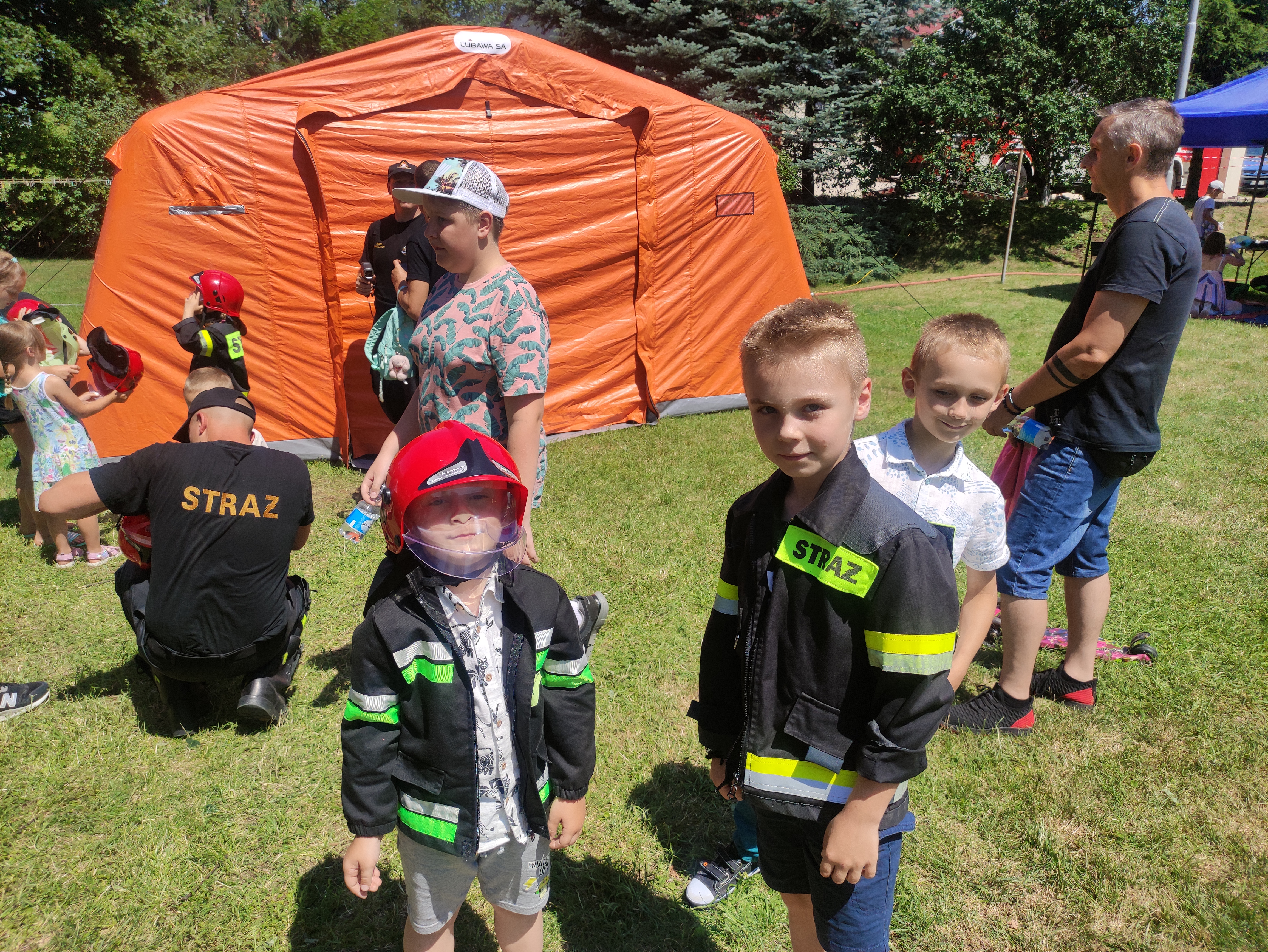 W dniu 3 lipca 2022 roku w godz. 10:00 - 18:00 odbył się "Dzień Otwarty" KP PSP w Dzierżoniowie dla wszystkich mieszkańców chcących zobaczyć jak wygląda praca zawodowego strażaka. Nasi funkcjonariusze przygotowali szereg atrakcji dla zaciekawionych i spragnionych wiedzy dzieci oraz dorosłych aby przekazać mieszkańcom zasady bezpiecznego zachowania się i poznania specyfiki służby strażaka. Największe zainteresowanie oczywiście było wśród dzieci, które z ogromnym przejęciem oglądały samochody, pomieszczenia strażackie i wszystkie urządzenia, które służą do ratowania życia, zdrowia i mienia ludzi. Można było zajrzeć niemal w każdy zakamarek strażackiej remizy oraz dotknąć sprzętu, który na co dzień wykorzystywany jest przy działaniach ratowniczo-gaśniczych. Wśród najmłodszych największą popularnością cieszyło się wyciąganie manekina ukrytego w zadymionym przez strażaków namiocie, gdzie dym emitowało specjalne urządzenie wytwarzające szkoleniowy dym teatralny. W upalny dzień lanie wody do celu też miało bardzo duże zainteresowanie. Ciekawą konkurencją było wspinanie się po układanych skrzynkach z asekuracją. Strażacy przy licznej publiczności demonstrowali gaszenie pożaru w kuchni i w mieszkaniu oraz w jaki sposób ugasić pożar samochodu. We wszystkie te pokazy byli włączani widzowie, którzy wcześniej zostali kompletnie ubrani tak jak strażacy przystępują do akcji. Nasi goście mogli też przy pomocy strażaków przeprowadzić improwizowaną akcję ratownictwa technicznego przekonując się jak ciężka jest służba funkcjonariusza PSP. Dla przybyłych gości przewidziany był poczęstunek w formie pysznej strażackiej grochówki, którą ufundowało stowarzyszenie „Bezpieczna Gmina - Bezpieczny Powiat”. Dzięki Urzędowi Miejskiemu w Dzierżoniowie można było schłodzić się w bramce wytwarzającej mgłę wodną oraz otrzymać butelkę orzeźwiającej wody ufundowanej przez Starostwo Powiatowe w Dzierzoniowie. Ogromne podziękowania również dla firmy „Eco Auto Robert Nowakowski” za udostępnienie pojazdów dla naszych strażackich pokazów. Dopisała nam frekwencja, pogoda i bardzo dobry nastrój odwiedzających nas mieszkańców, którzy byli zauroczeni panującą podczas imprezy atmosferą. Wszystkim licznie przybyłym gościom dziękujemy, że byliście z nami podczas naszych dni otwartych.