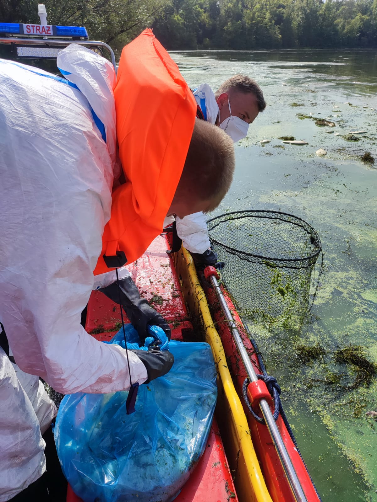 W dniach 25-27.08. 2022 r. dzierżoniowscy strażacy zostali zadysponowani do pomocy w usuwaniu skutków skażenia Odry. Działania prowadzone były przez naszych strażaków nad zalewem Bajkał w Kamieńcu Wrocławskim pow. wrocławski. Zalew Bajkał to jezioro o powierzchni około 60 hektarów, które jest zasilane wodami Odry. Głównym zadaniem było patrolowanie wód oraz wyławianie śniętych ryb.