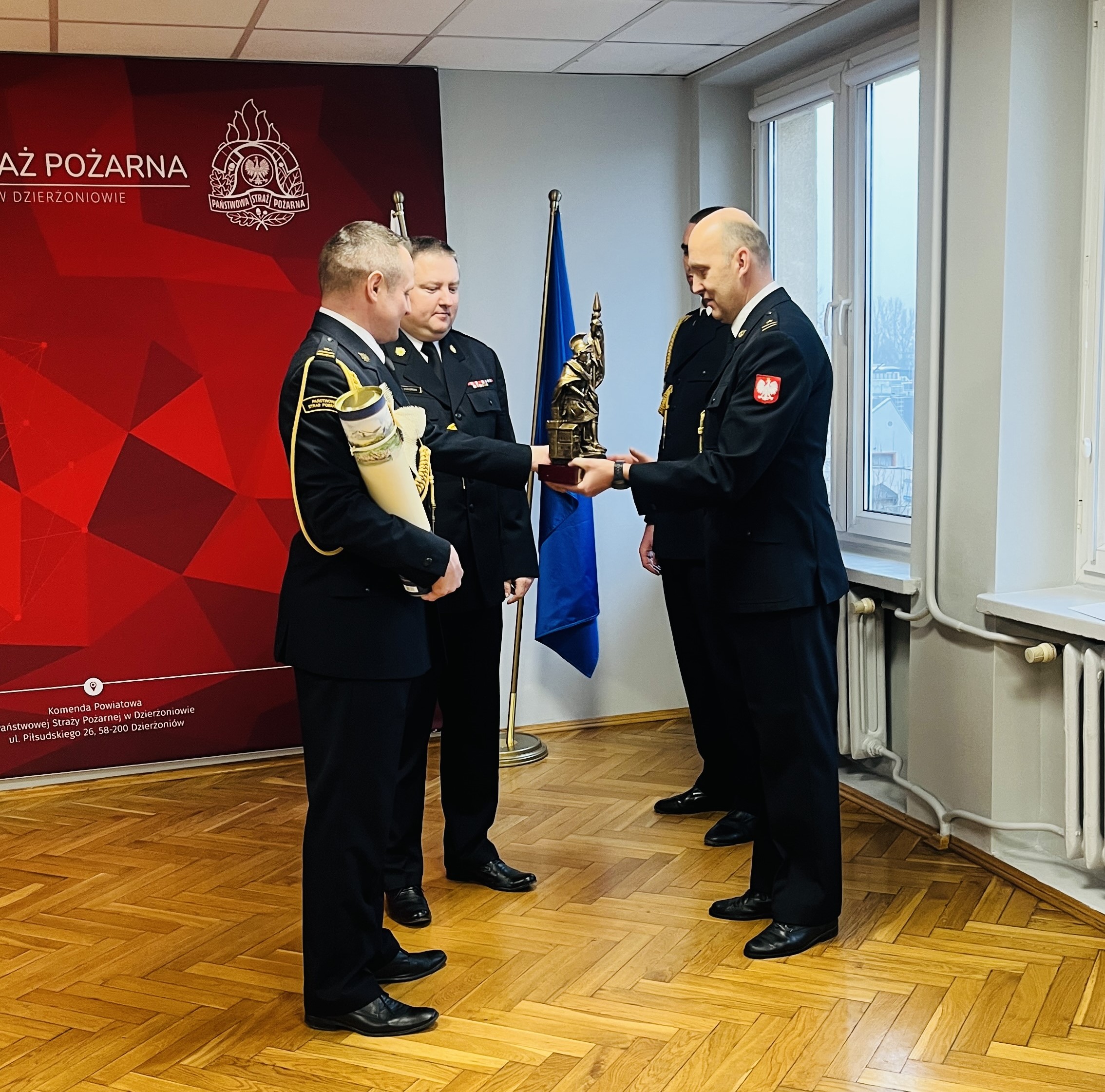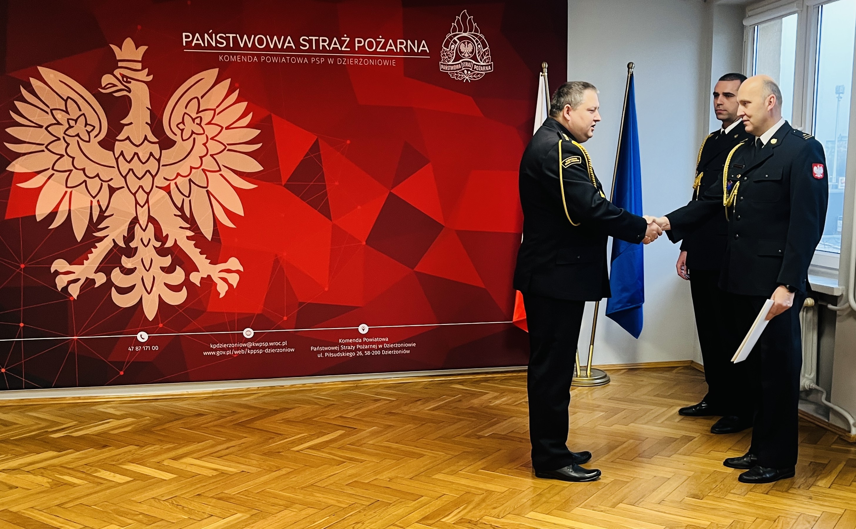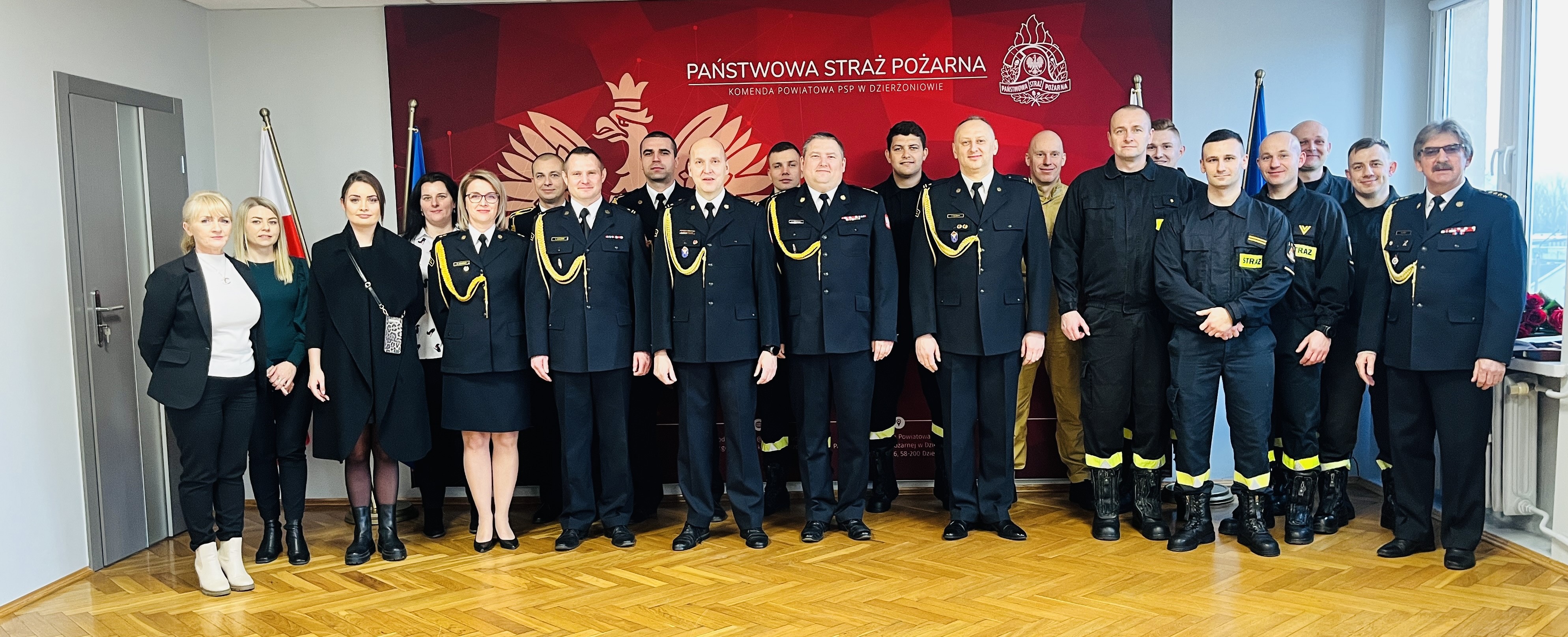 Uroczysta zbiórka miała miejsce w Komendzie Powiatowej Państwowej Straży Pożarnej w Dzierżoniowie, w której udział wieli: Komendant Powiatowy PSP st. kpt. Sławomir Dudziński, Z-ca Komendanta PSP mł. bryg. Sławomir Babuśka, pracownicy oraz funkcjonariusze KP, zmiana służbowa oraz przedstawicielki Starostwa Powiatowego w Dzierżoniowie.