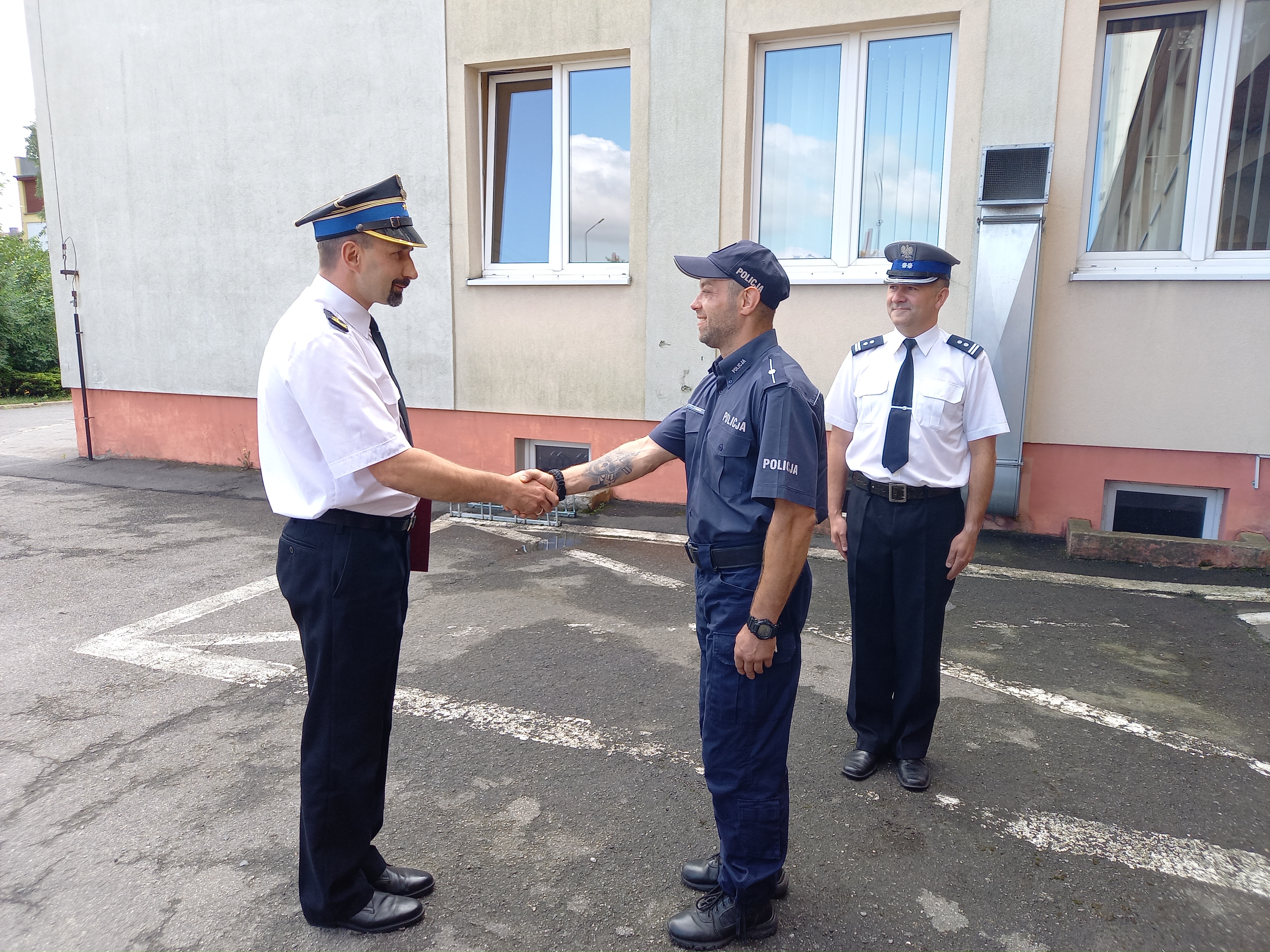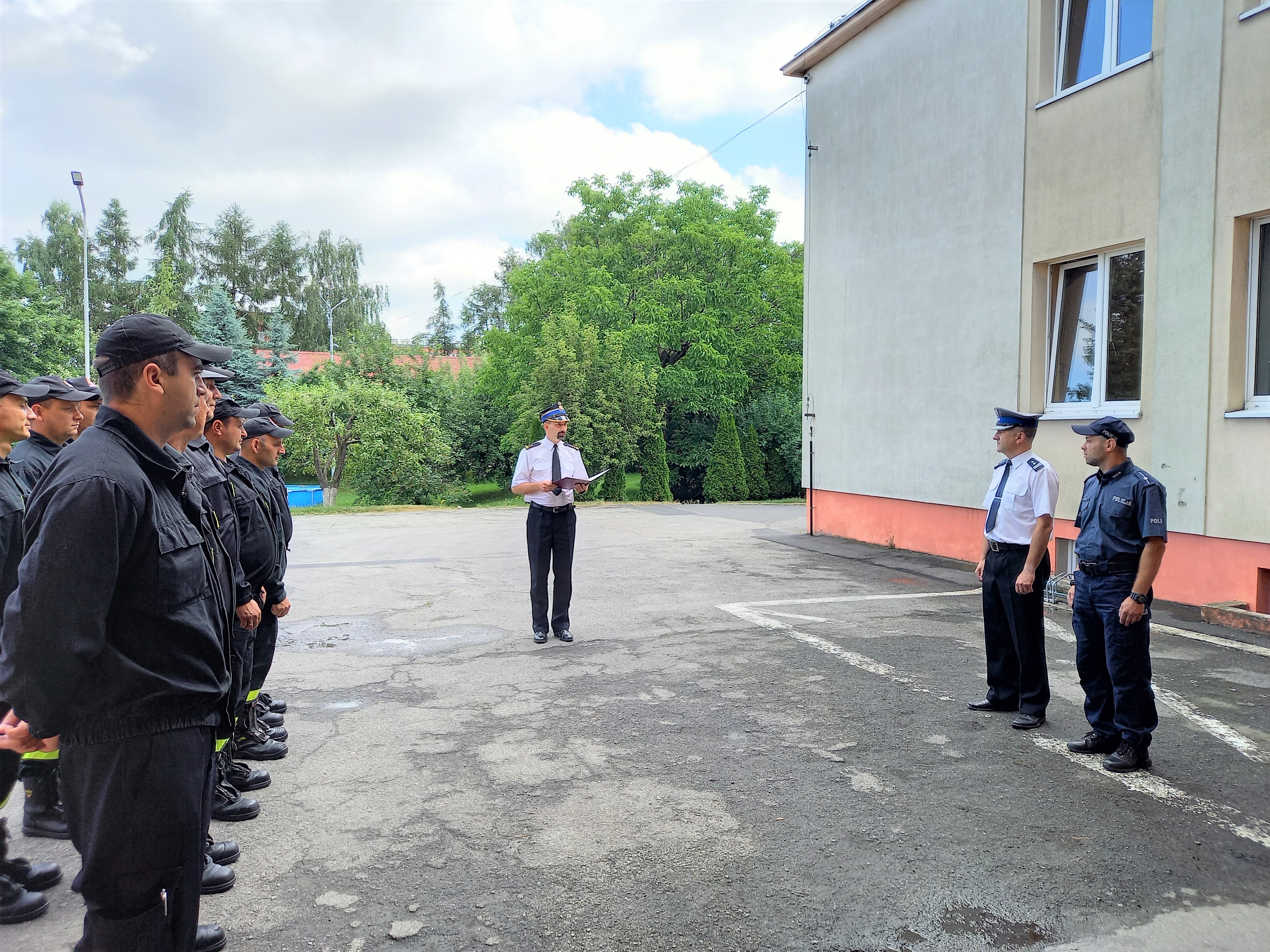 24 czerwca 2021 r. w Komendant Powiatowy Państwowej Straży Pożarnej w Dzierżoniowie – bryg. Mariusz Piasecki złożył podziękowania na ręce funkcjonariusza Policji - mł. asp. Tomasza Markiela w obecności Komendanta Powiatowego Policji w Dzierżoniowie - mł. insp. Przemysława Maruta.