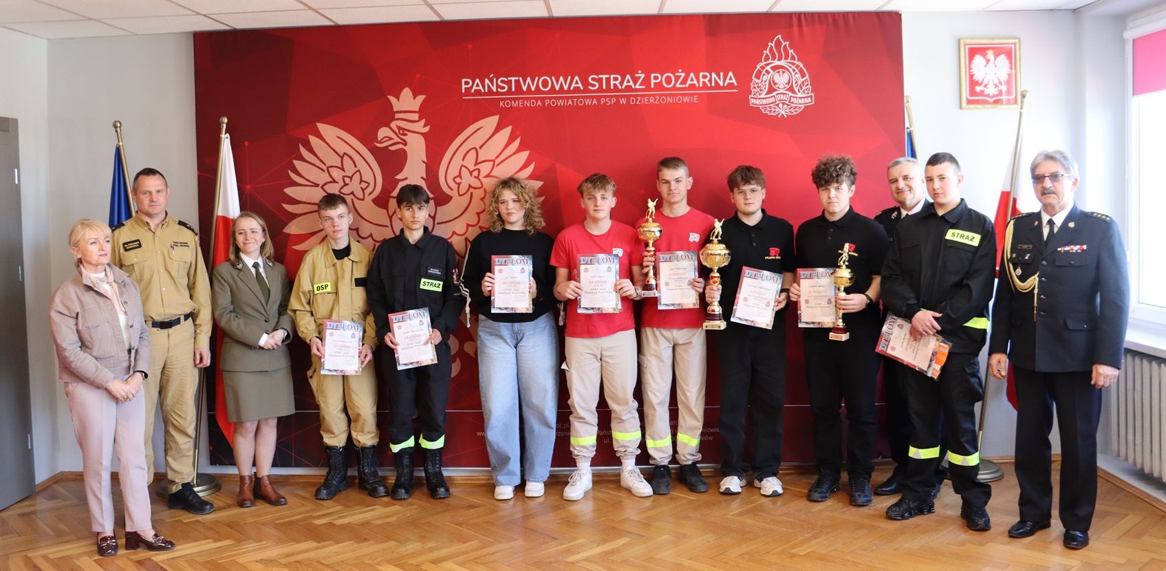 W dniach 23–24 kwietnia 2026 r. w Komendzie Powiatowej Państwowej Straży Pożarnej w Dzierżoniowie przeprowadzono powiatowe eliminacje Ogólnopolskiego Turnieju Wiedzy Pożarniczej „Młodzież Zapobiega Pożarom” (OTWP). Wydarzenie miało na celu popularyzację przepisów przeciwpożarowych, zasad postępowania w sytuacjach zagrożeń, wiedzy z zakresu ochrony ludności, ratownictwa oraz historii i tradycji pożarniczych.