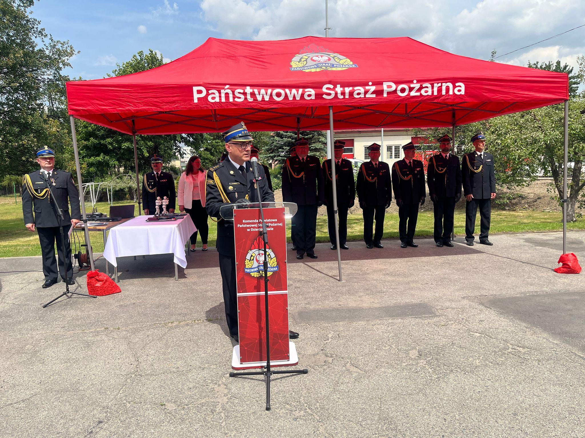 Zaproszeni goście oraz Zastępca Dolnośląskiego Komendanta Wojewódzkiego PSP we Wrocławiu w swoich przemówieniach podziękowali strażakom PSP, druhom i druhnom OSP, pracownikom cywilnym za cały rok służby na rzecz bezpieczeństwa naszego powiatu. Pogratulowali wszystkim awansowanym i odznaczonym funkcjonariuszom.