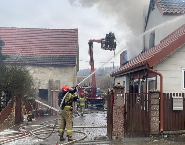 21 marca o godzinie 15:57 Dyżurny Stanowiska Kierowania Komendanta Powiatowego Państwowej Straży Pożarnej w Dzierżoniowie otrzymał zgłoszenie z Centrum Powiadamiania Ratunkowego o pożarze budynku mieszkalnego. Po przy jeździe pierwszych zastępów straży pożarnej na miejsce zdarzenia zastano rozwinięty pożar budynku mieszkalnego w zabudowie zwartej z budynkiem gospodarczym.