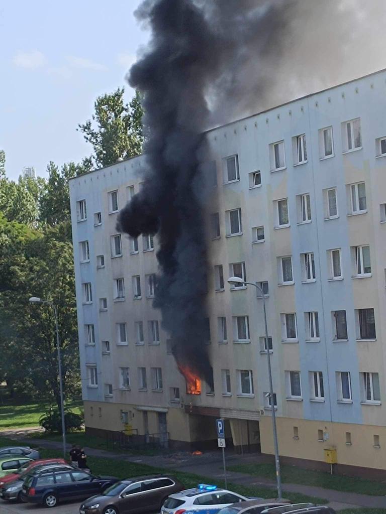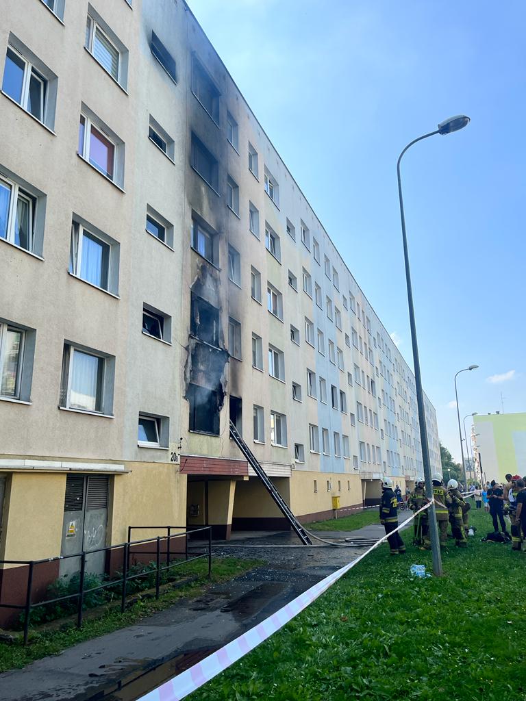 21 sierpnia o godzinie 15:07 Dyżurny Stanowiska Kierowania Komendanta Powiatowego Państwowej Straży Pożarnej w Dzierżoniowie otrzymał zgłoszenie z Centrum Powiadamiania Ratunkowego o pożarze mieszkania w bloku wielorodzinnym na os. Błękitnym w Dzierżoniowie. Po przy jeździe pierwszych zastępów straży pożarnej na miejsce zdarzenia zastano bardzo mocno rozwinięty pożar mieszkania na parterze. Działania jednostek ochrony przeciwpożarowej polegały na zabezpieczeniu miejsca zdarzenia, odłączeniu energii elektrycznej oraz zamknięciu zaworu gaz w budynku, ugaszeniu za pomocą dwóch prądów wody pożaru mieszkania, przeszukaniu mieszkania objętego pożarem pod kątem osób poszkodowanych (brak osób poszkodowanych). W wyniku zdarzenia nikt nie ucierpiał z lokatorów, przed przyjazdem JOP z klatki samodzielnie ewakuowało się 5 osób.