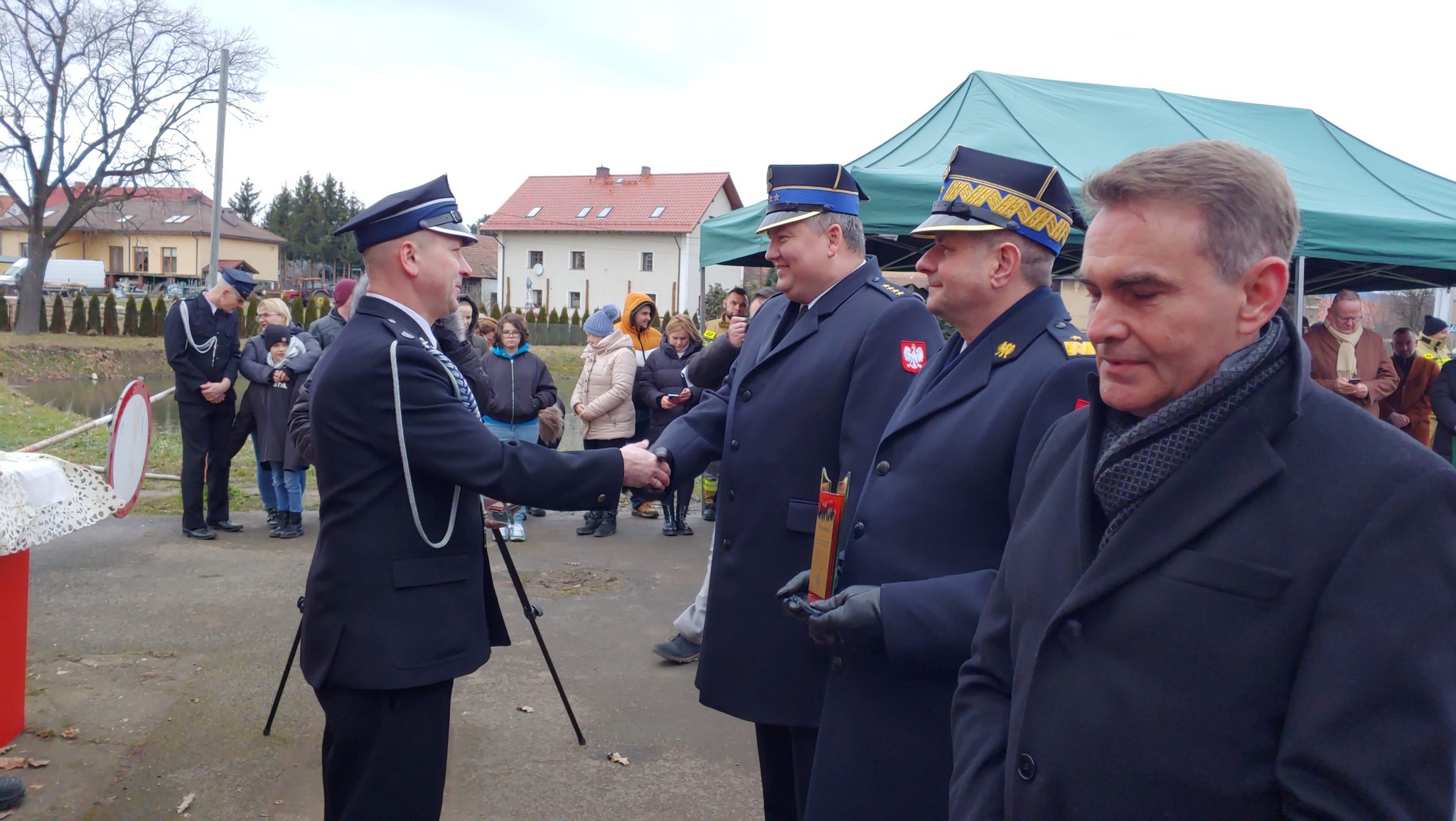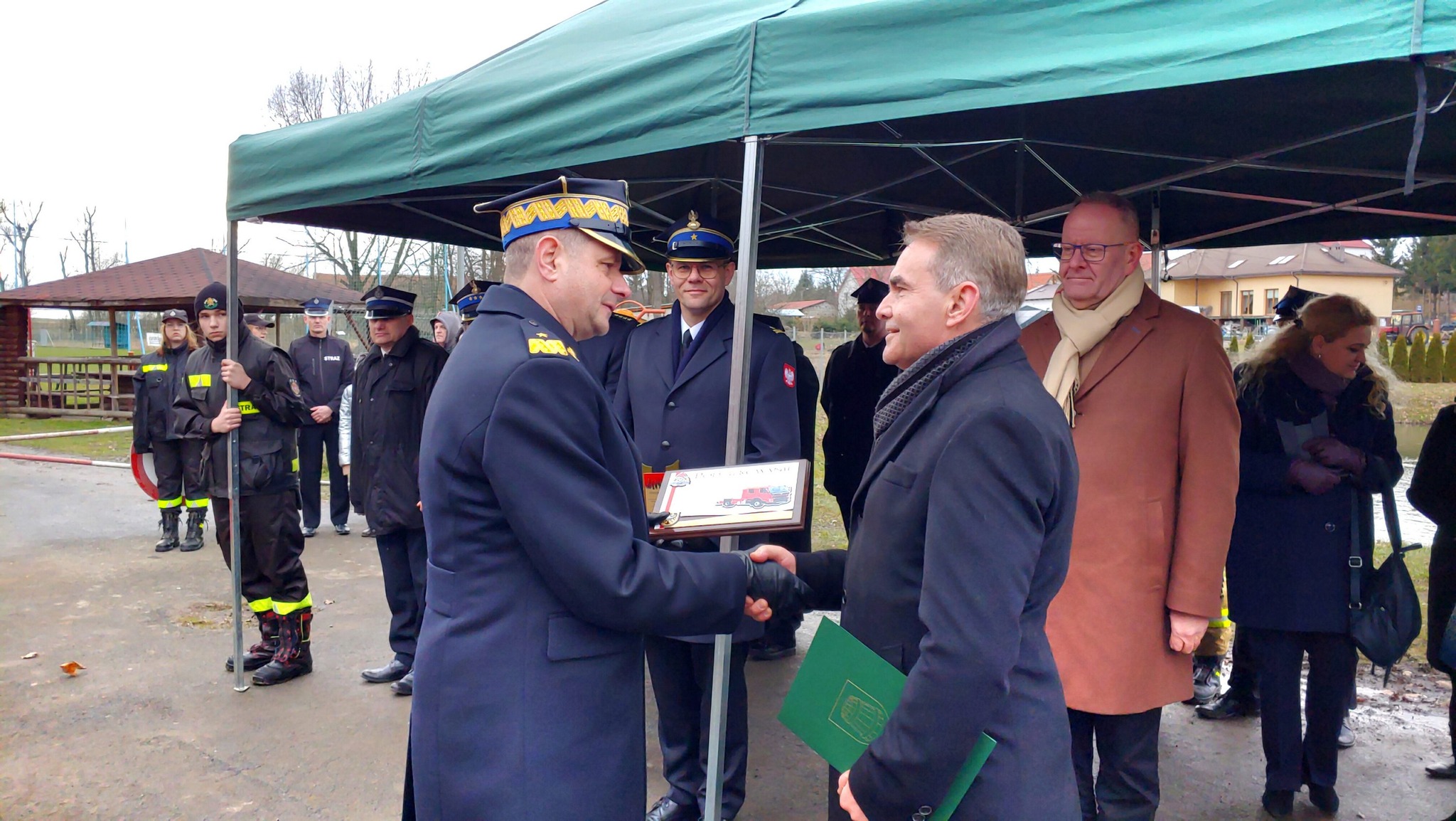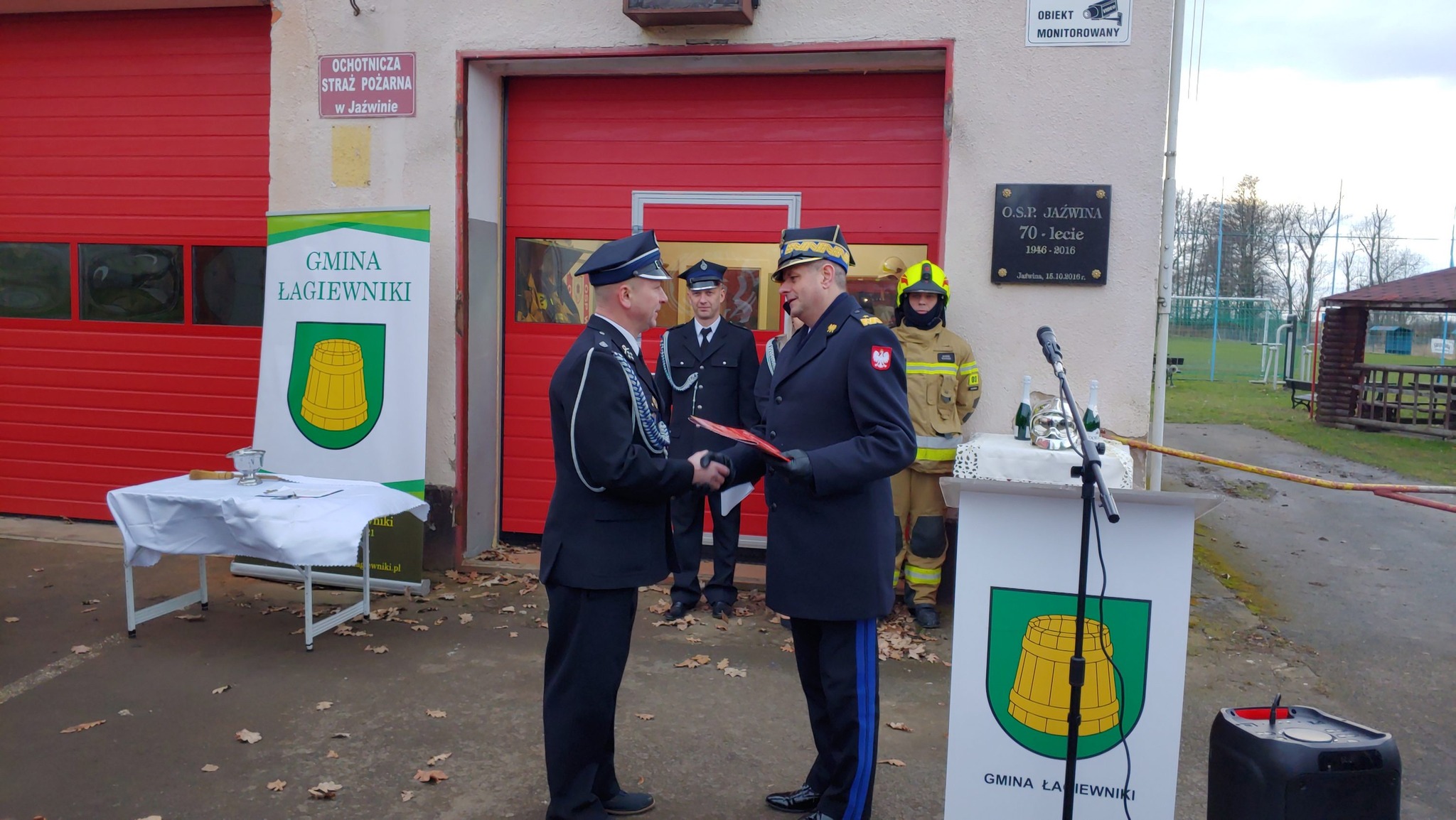 W uroczystości udział wzięli między innymi Dolnośląski Komendant Wojewódzki PSP nadbryg. Marek Kamiński, Z-ca Komendanta Wojewódzkiego PSP mł. bryg. Michał Pięta, Komendant Powiatowy PSP w Dzierżoniowie st. kpt. Sławomir Dudziński, Komendant Gminny OSP Gminy Dzierżoniów st. kpt. Krzysztof Kot, Prezes Zarządu Powiatowego ZOSP RP dh. Dariusz Gortych, Starosta Dzierżoniowski Grzegorz Kosowski, Wójt Gminy Łagiewniki Jarosław Tyniec, strażacy OSP Gminy Łagiewniki oraz inni zaproszeni goście.