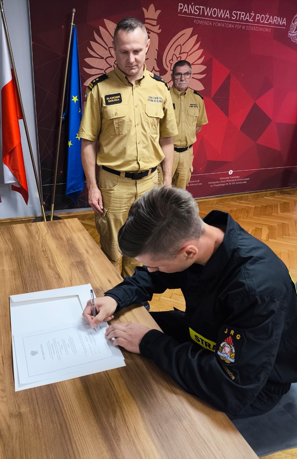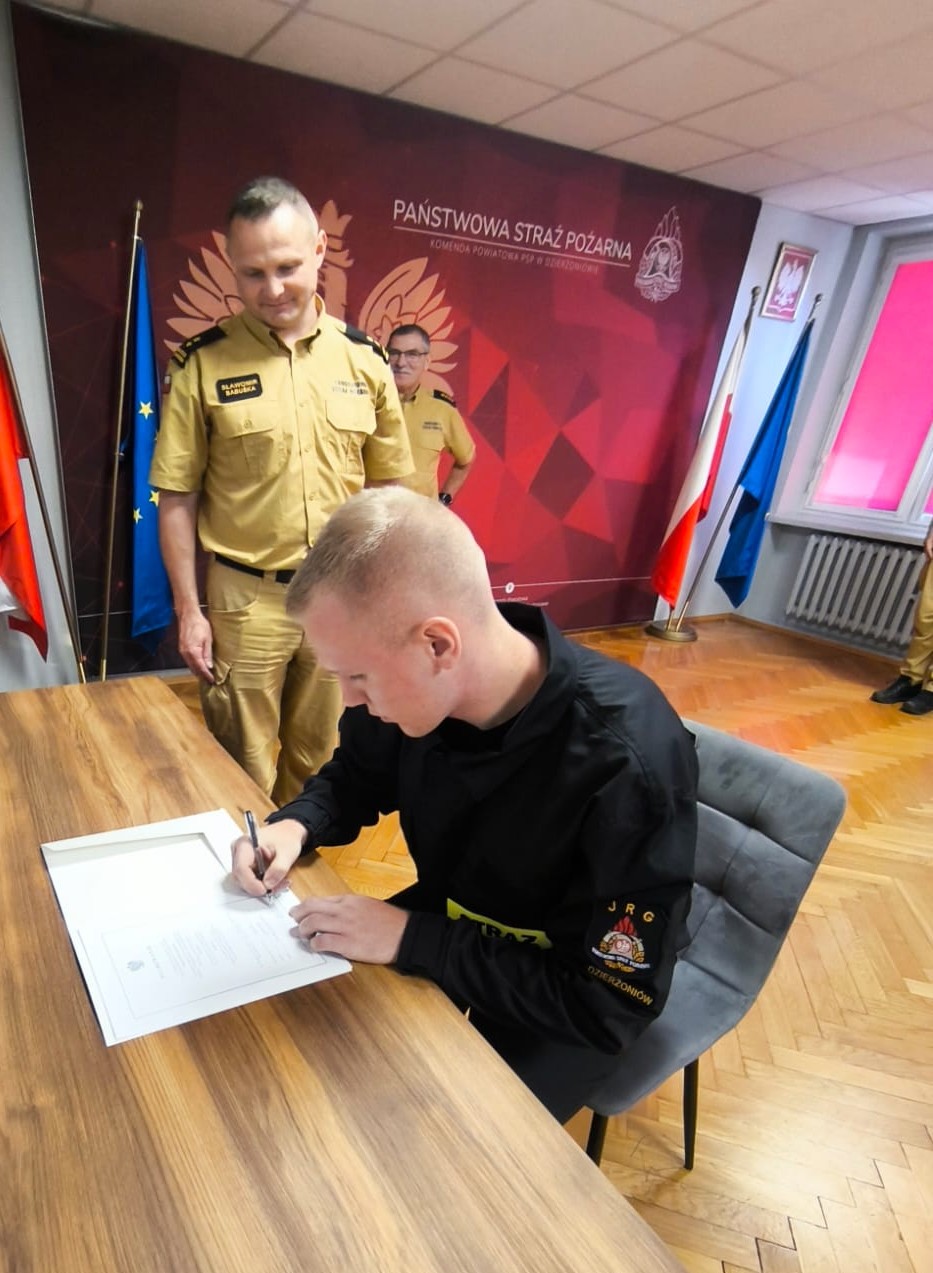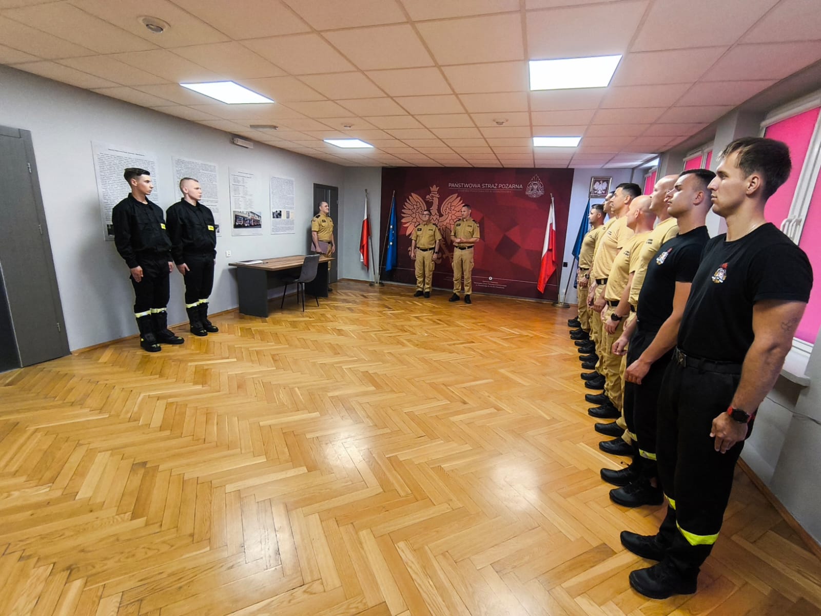 W szeregi zawodowych strażaków wstąpili str. Jakub Markiewicz oraz str. Jakub Rosiak, którzy złożyli ślubowanie według słów roty: