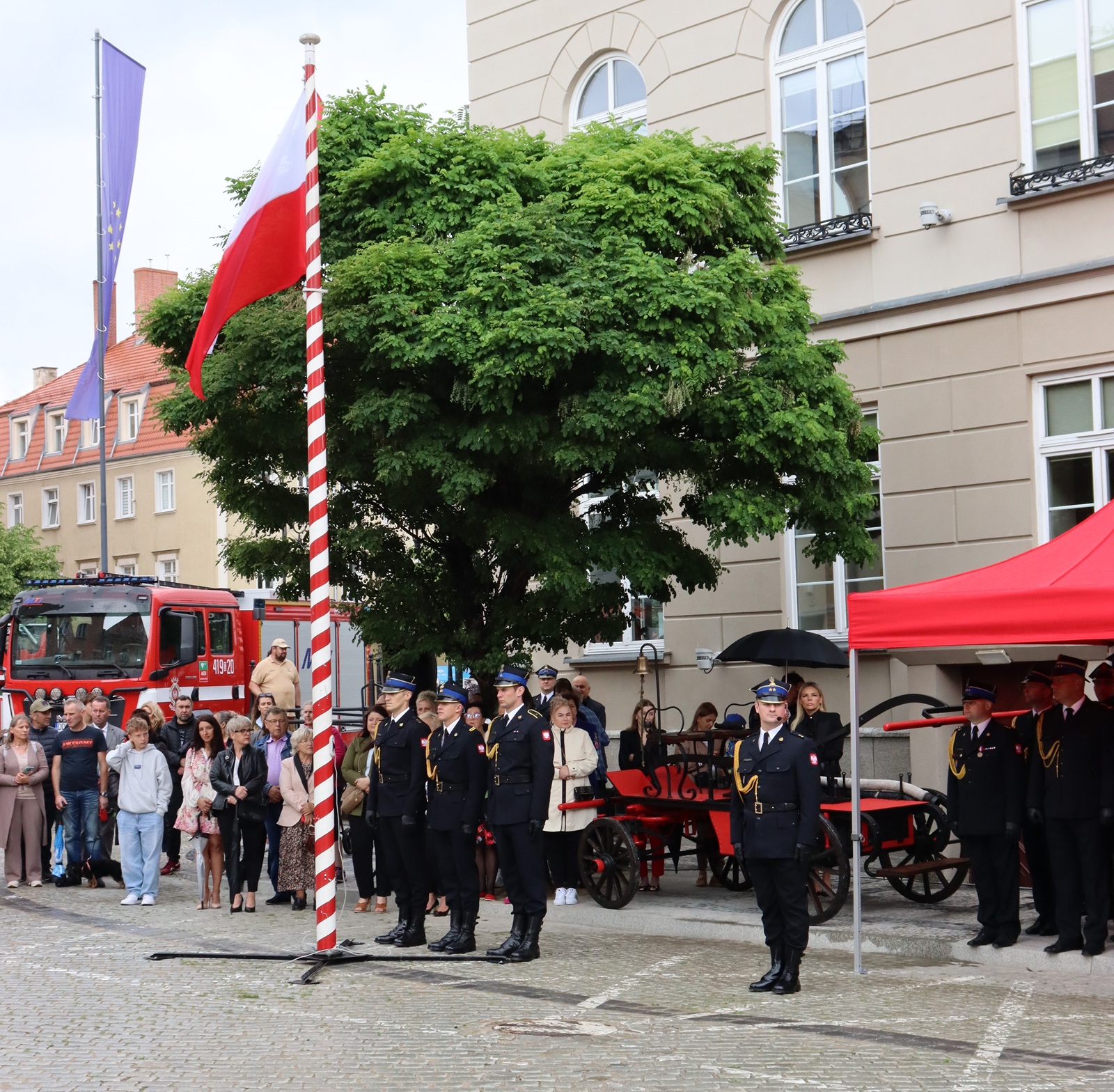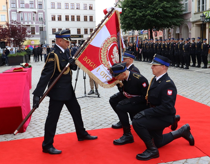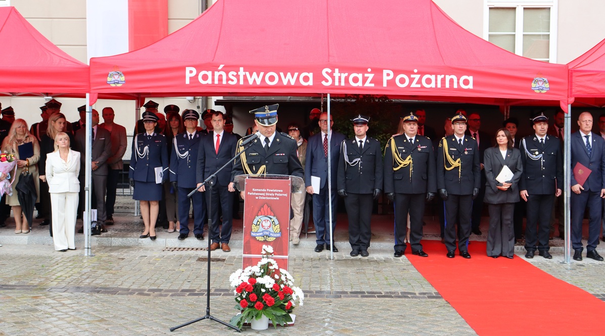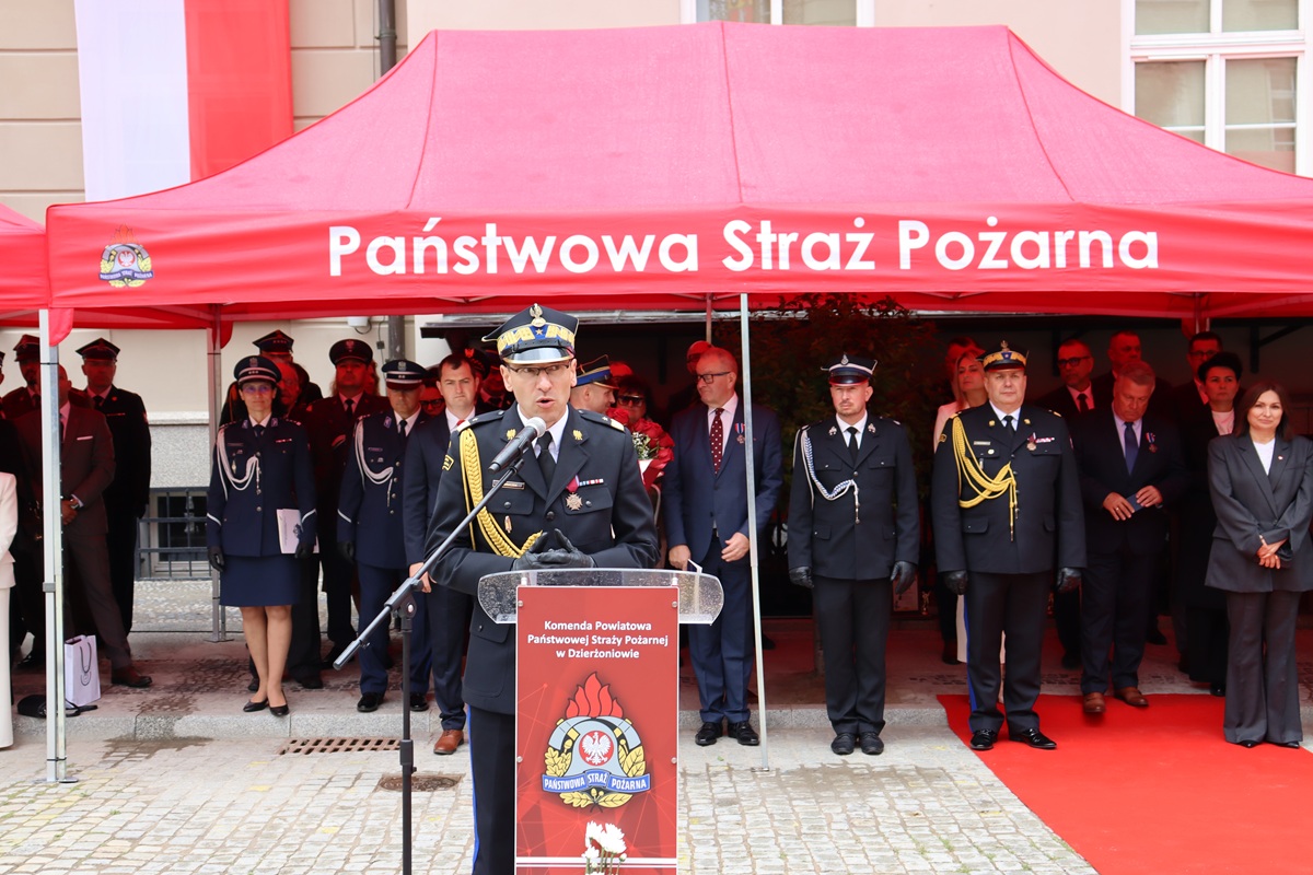 8 czerwca 2025 r. na dzierżoniowskim Rynku odbyły się wyjątkowe obchody Dnia Strażaka połączone z uroczystością nadania i przekazania sztandaru dla Komendy Powiatowej Państwowej Straży Pożarnej w Dzierżoniowie. Wydarzenie to zgromadziło funkcjonariuszy Państwowej Straży Pożarnej, strażaków Ochotniczych Straży Pożarnych, przedstawicieli władz samorządowych, mieszkańców oraz zaproszonych gości, którzy wspólnie świętowali ten ważny dzień.