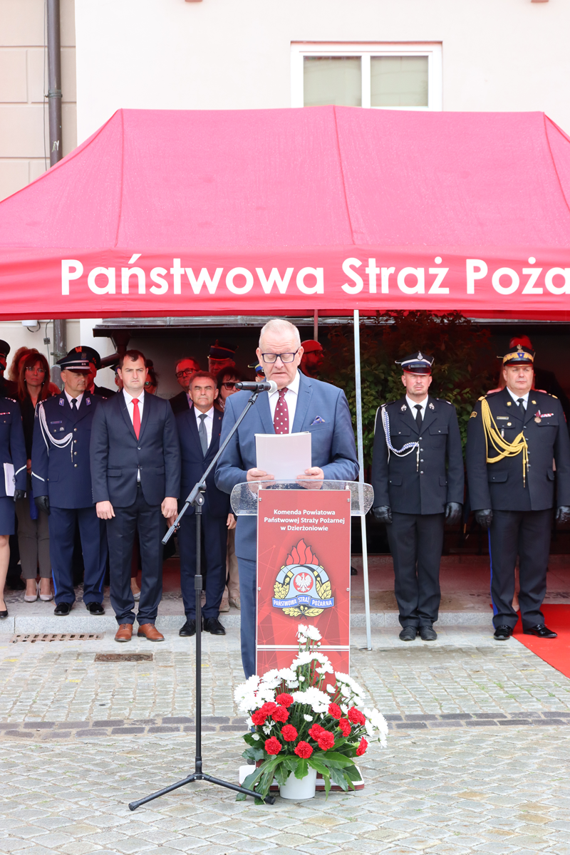 W uroczystości udział wzięli m.in.: Komendant Główny PSP nadbryg. Wojciech Kruczek, Dolnośląski Komendant Wojewódzki nadbryg. Marek Hajduk, Monika Wielichowska- Wicemarszałek Sejmu RP, Marek Chmielewski – Poseł na Sejm RP, Ireneusz Zyska- Poseł na Sejm RP, Paweł Gancarz – Marszałek Województwa Dolnośląskiego, przedstawiciele służb mundurowych, funkcjonariusz i pracownicy cywilni KP PSP w Dzierżoniowie, emerytowani funkcjonariusze, druhny i druhowie Ochotniczych Straży Pożarnych z powiatu dzierżoniowskiego, a także przedstawiciele instytucji rządowych i samorządowych.