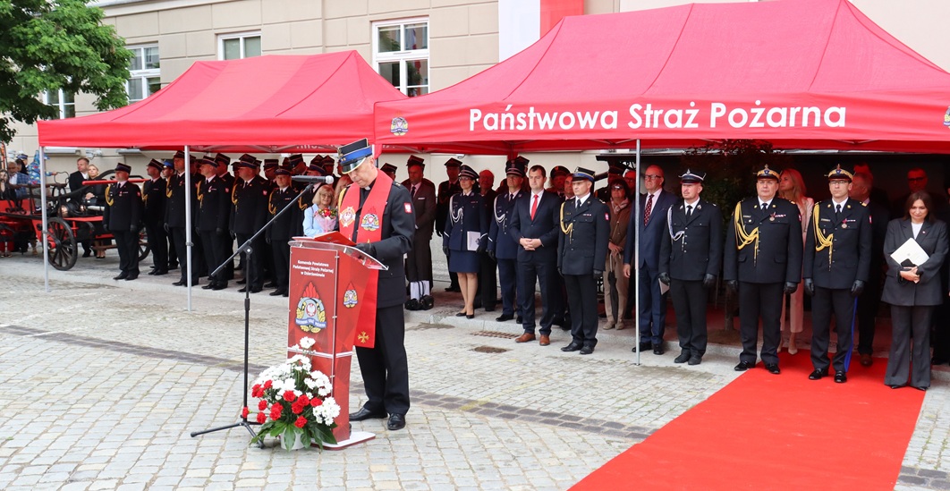 Uroczysty apel rozpoczął się złożeniem meldunku przez dowódcę uroczystości mł. kpt. Pawła Jakubowskiego dla Komendanta Głównego Państwowej Straży Pożarnej- nadbrygadiera Wojciecha Kruczka, który następnie dokonał przeglądu pododdziałów. Po chwili podniesiono flagę państwową na maszt i odegrano hymn Rzeczypospolitej Polskiej, co nadało wydarzeniu wyjątkowy charakter.
