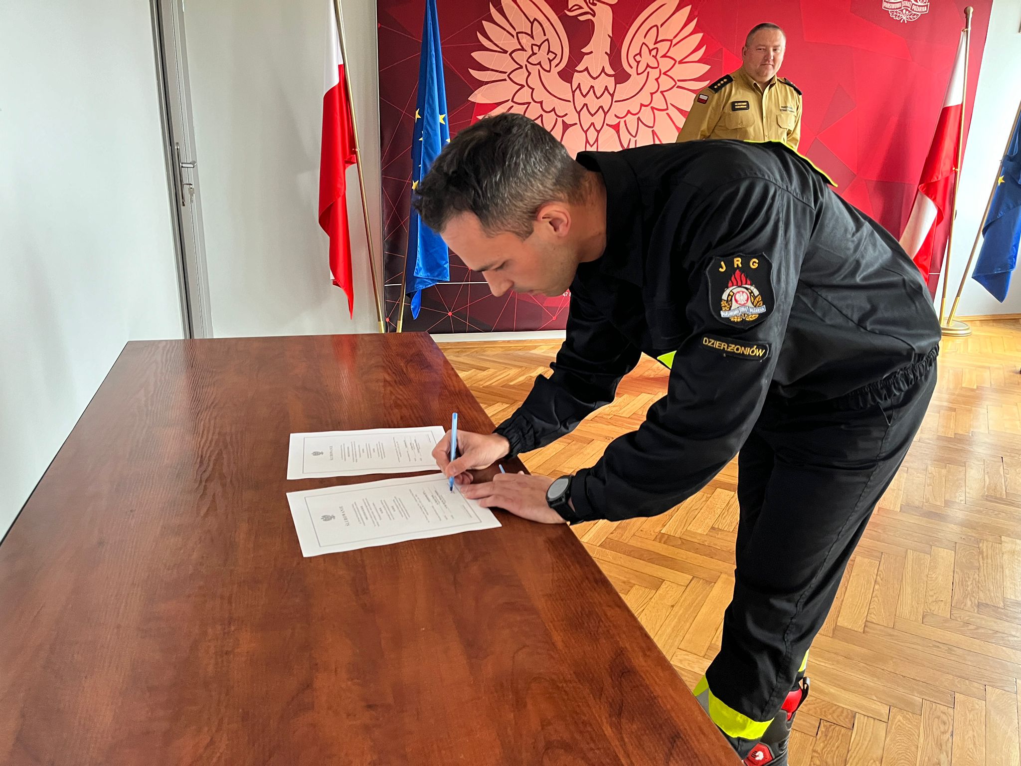 4 października 2023 r. w Komendzie Powiatowej Państwowej Straży Pożarnej w Dzierżoniowie odbyło się uroczyste ślubowanie strażaka Kacpra Pawlaka nowo przyjętego do służby przygotowawczej w KP PSP Dzierżoniów. Ślubowanie przyjął Komendant Powiatowy PSP w Dzierżoniowie – st. kpt. Sławomir Dudziński.