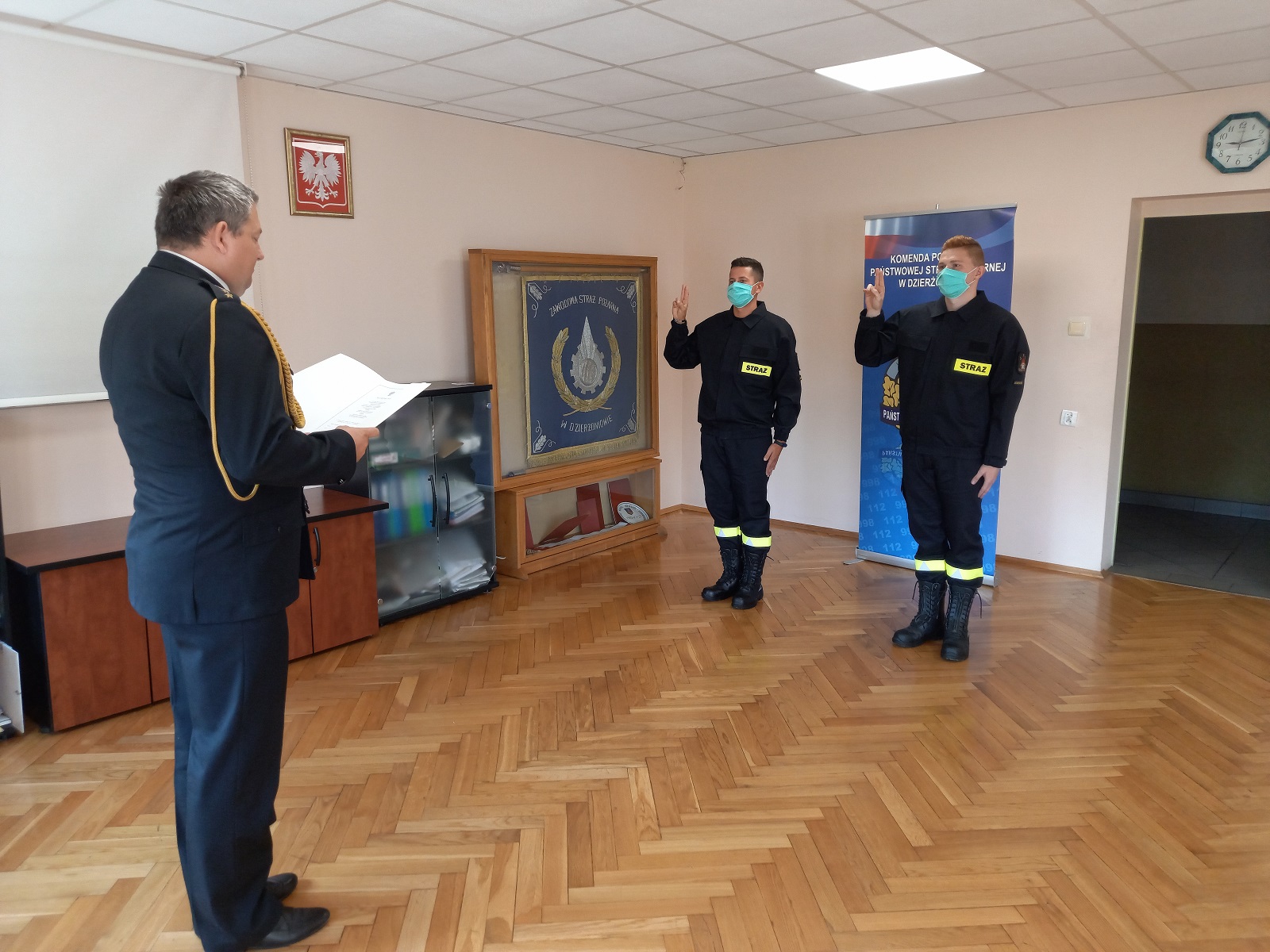 23 lipca 2021 r. w Komendzie Powiatowej Państwowej Straży Pożarnej w Dzierżoniowie odbyło się uroczyste ślubowanie funkcjonariuszy nowo przyjętych do służby przygotowawczej w PSP. Ślubowanie złożone przez strażaków przyjął Zastępca Komendanta Powiatowego PSP w Dzierżoniowie