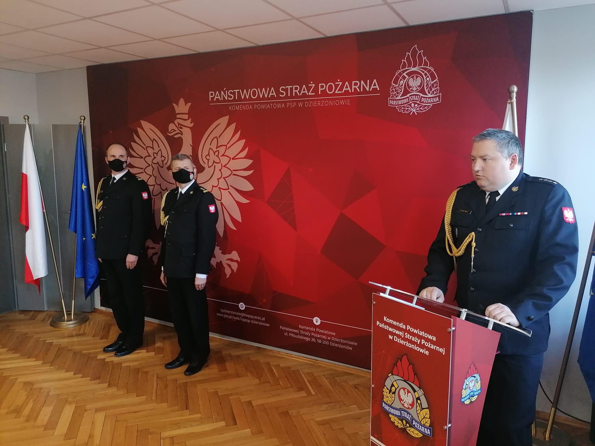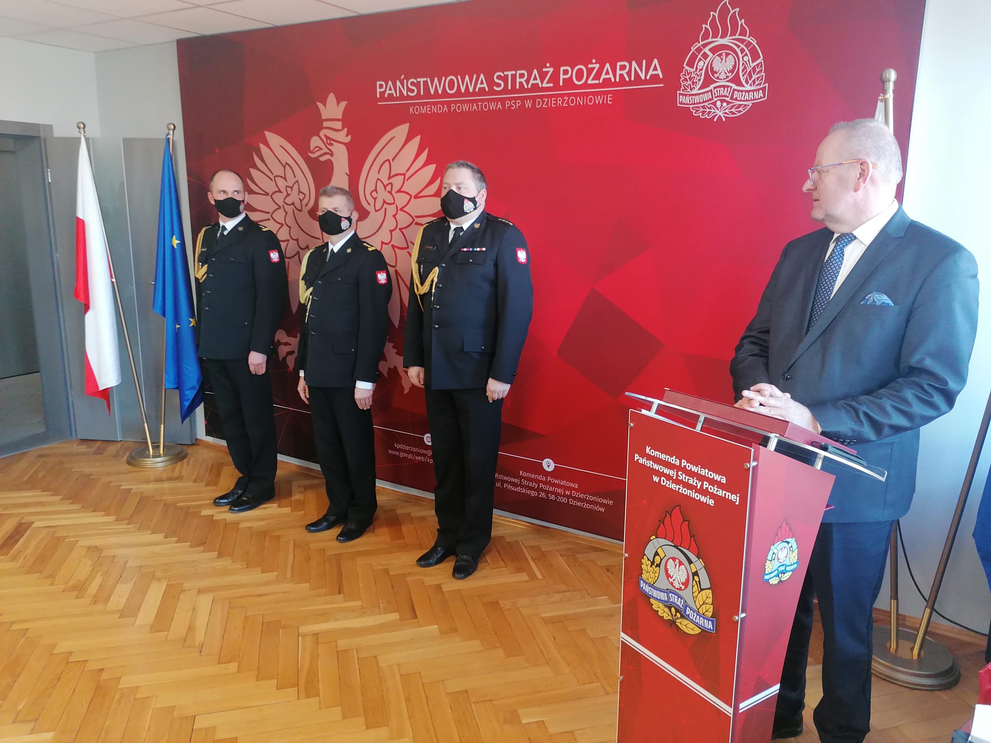 W dniu 25 lutego br. odbyła się uroczysta zbiórka w KP PSP w Dzierżoniowie z okazji zakończenia służby Komendanta Powiatowego Państwowej Straży Pożarnej bryg. mgr inż. Mariusza Piaseckiego, który przeszedł na zaopatrzenie emerytalne