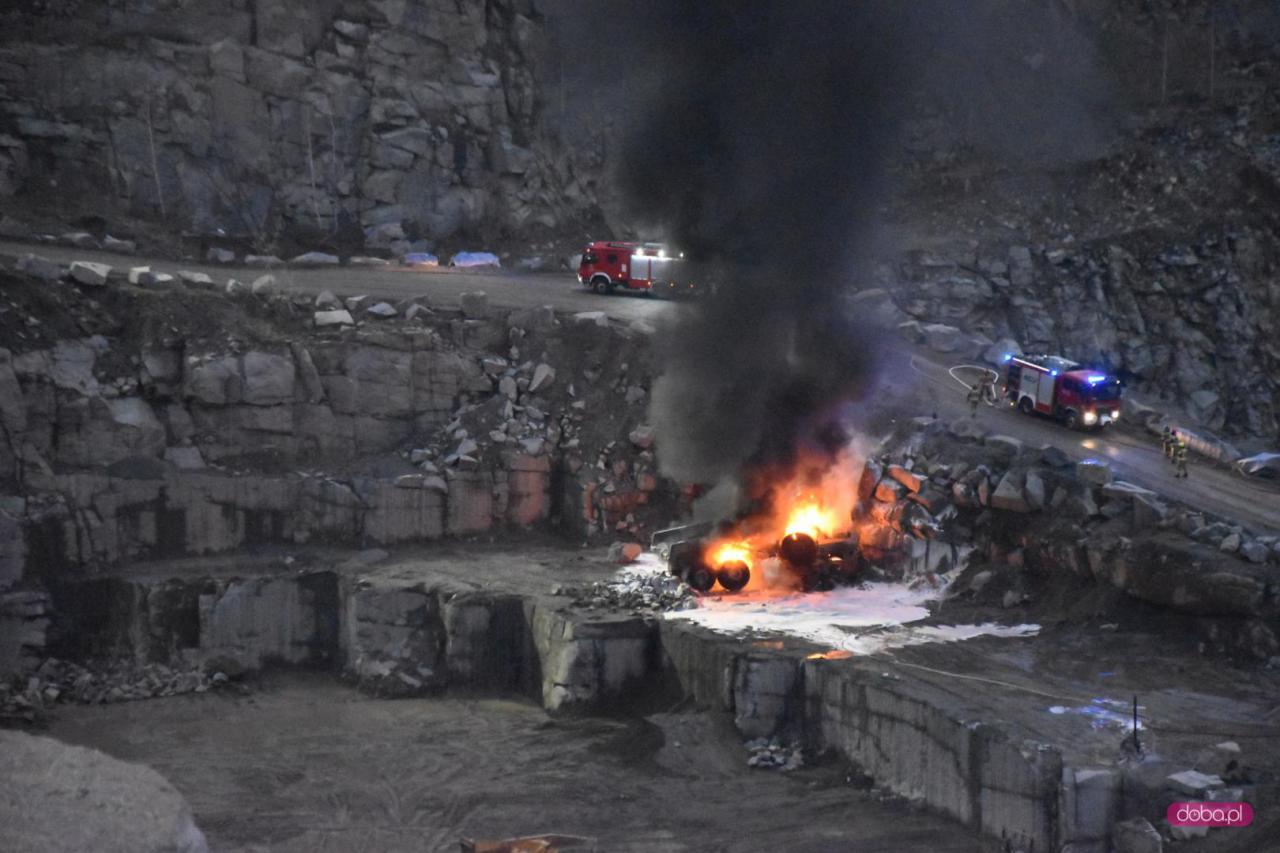 14 lutego o godzinie 16:19 Dyżurny Stanowiska Kierowania Komendanta Powiatowego Państwowej Straży Pożarnej w Dzierżoniowie otrzymał zgłoszenie z Centrum Powiadamiania Ratunkowego o wypadku samochodu na terenie kopalni w Kośminie, w wyniku którego został poszkodowany kierowca pojazdu. Po przy jeździe na miejsce zdarzenia zastano kierowcę, który wymagał udzielania pomocy przedmedycznej oraz palący się pojazd technologiczny, który stoczył się ze skarpy.