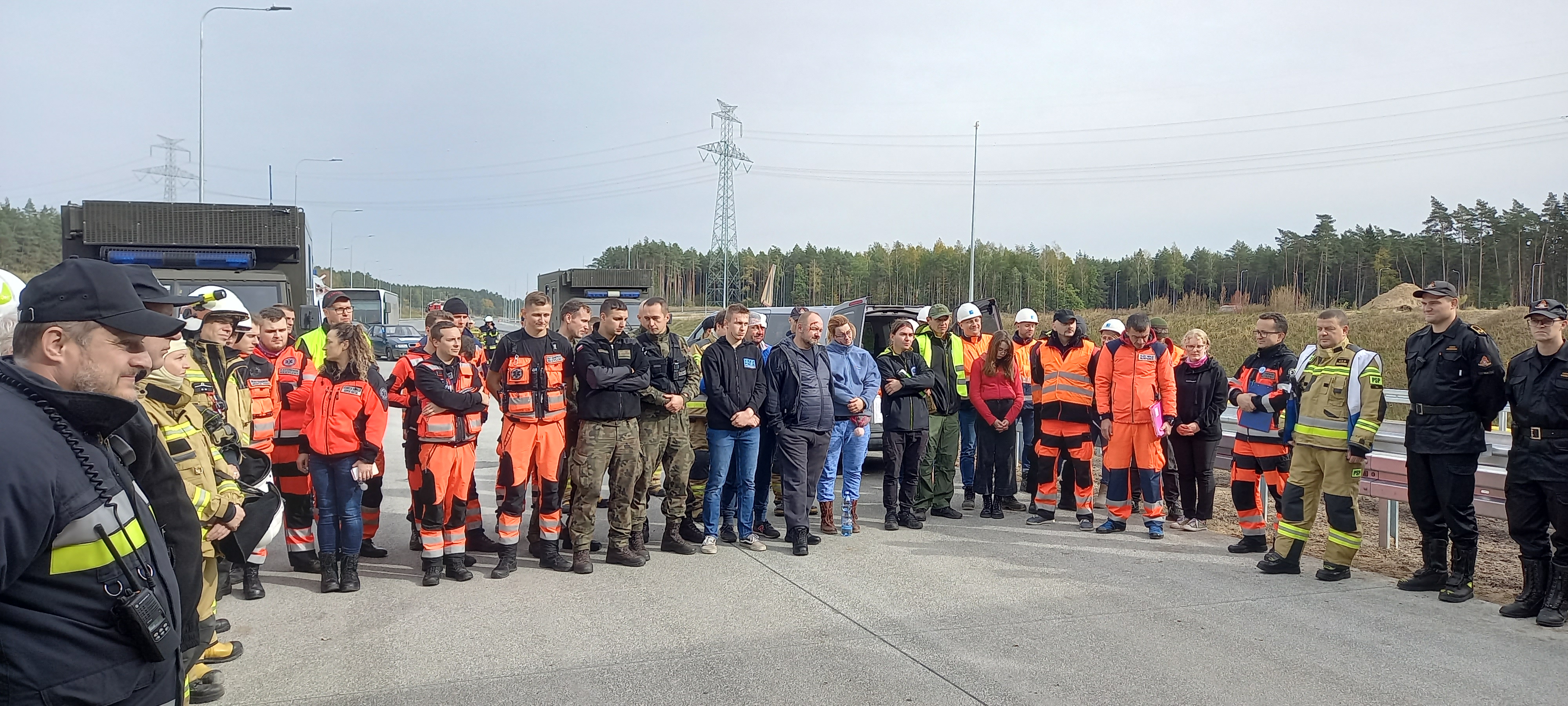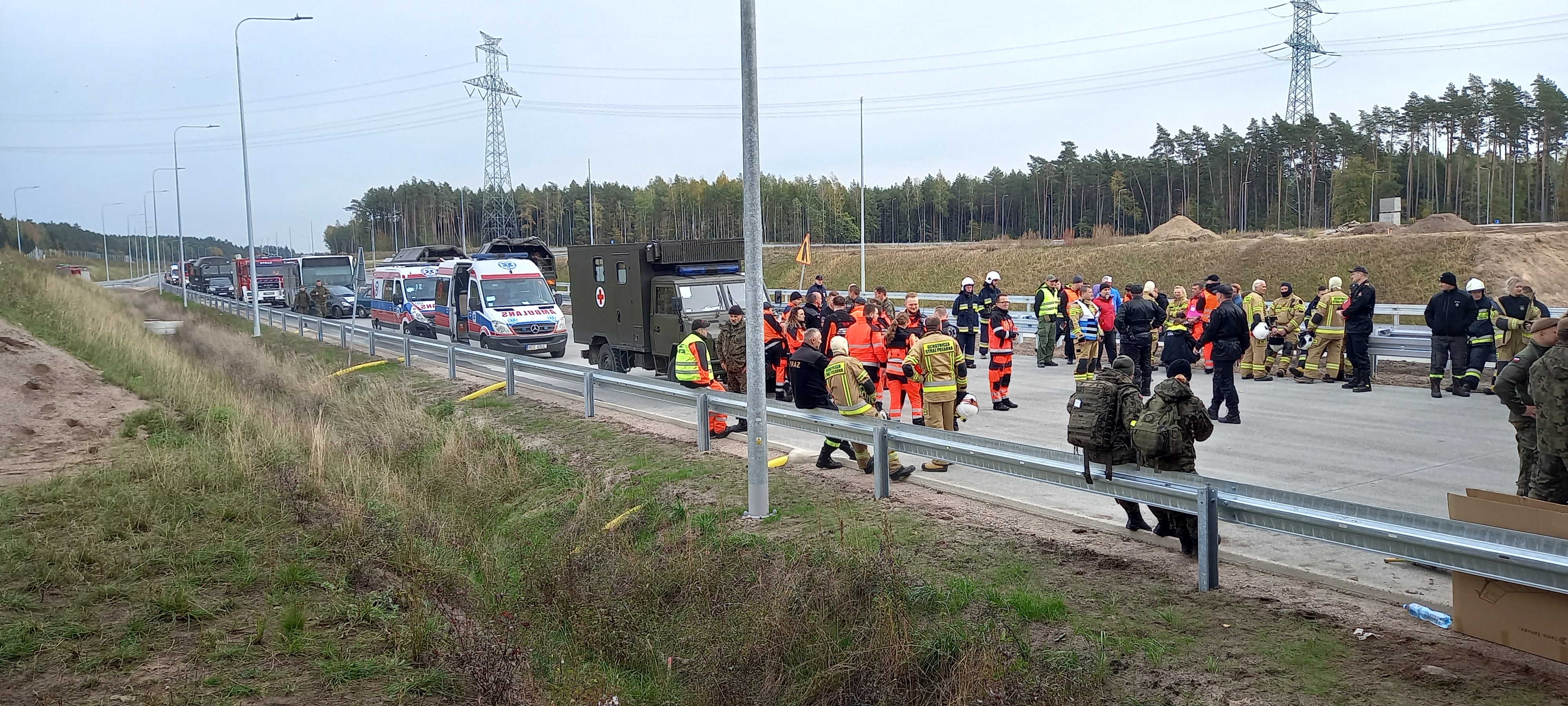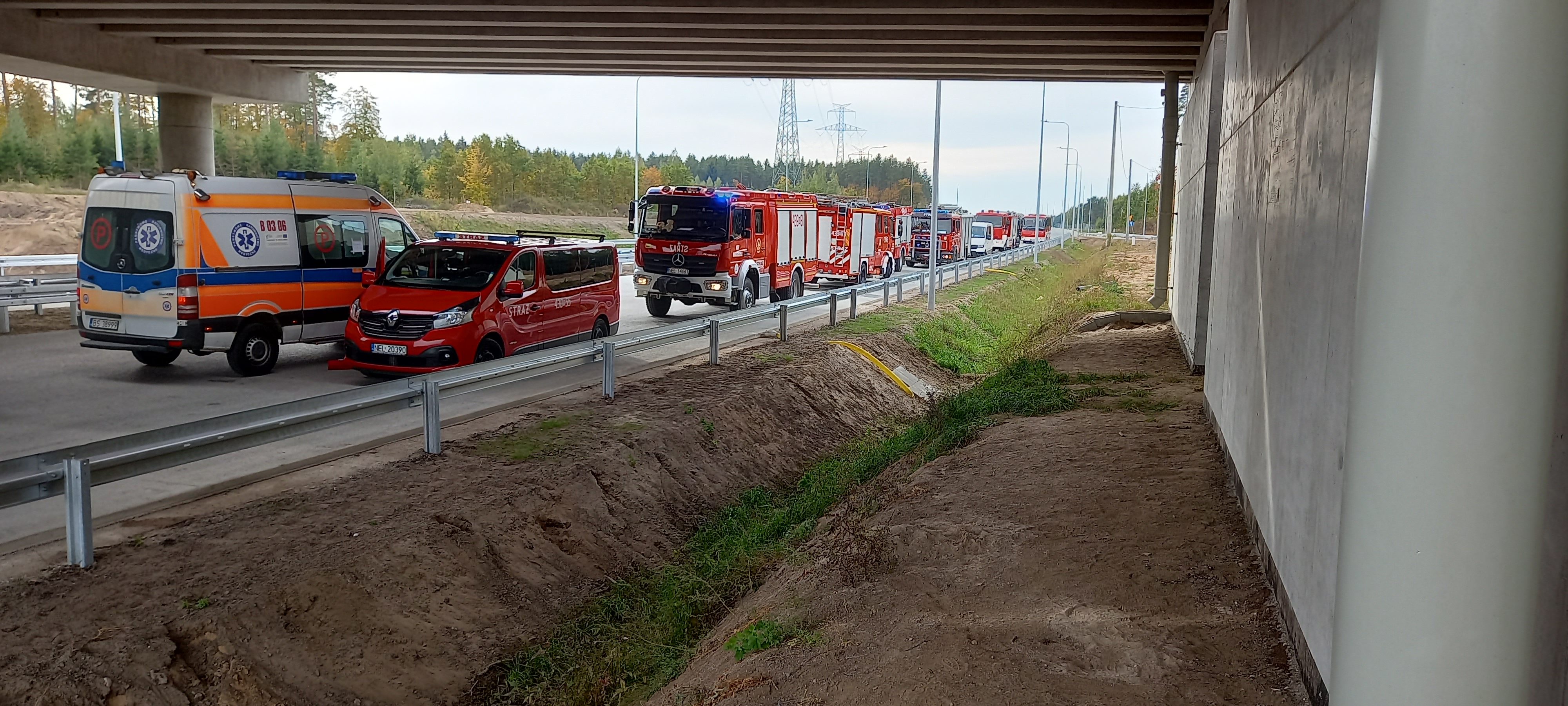 5 października 2022r. strażacy z powiatu ełckiego wraz z innymi służbami ćwiczyli na drodze szybkiego ruchu S61.