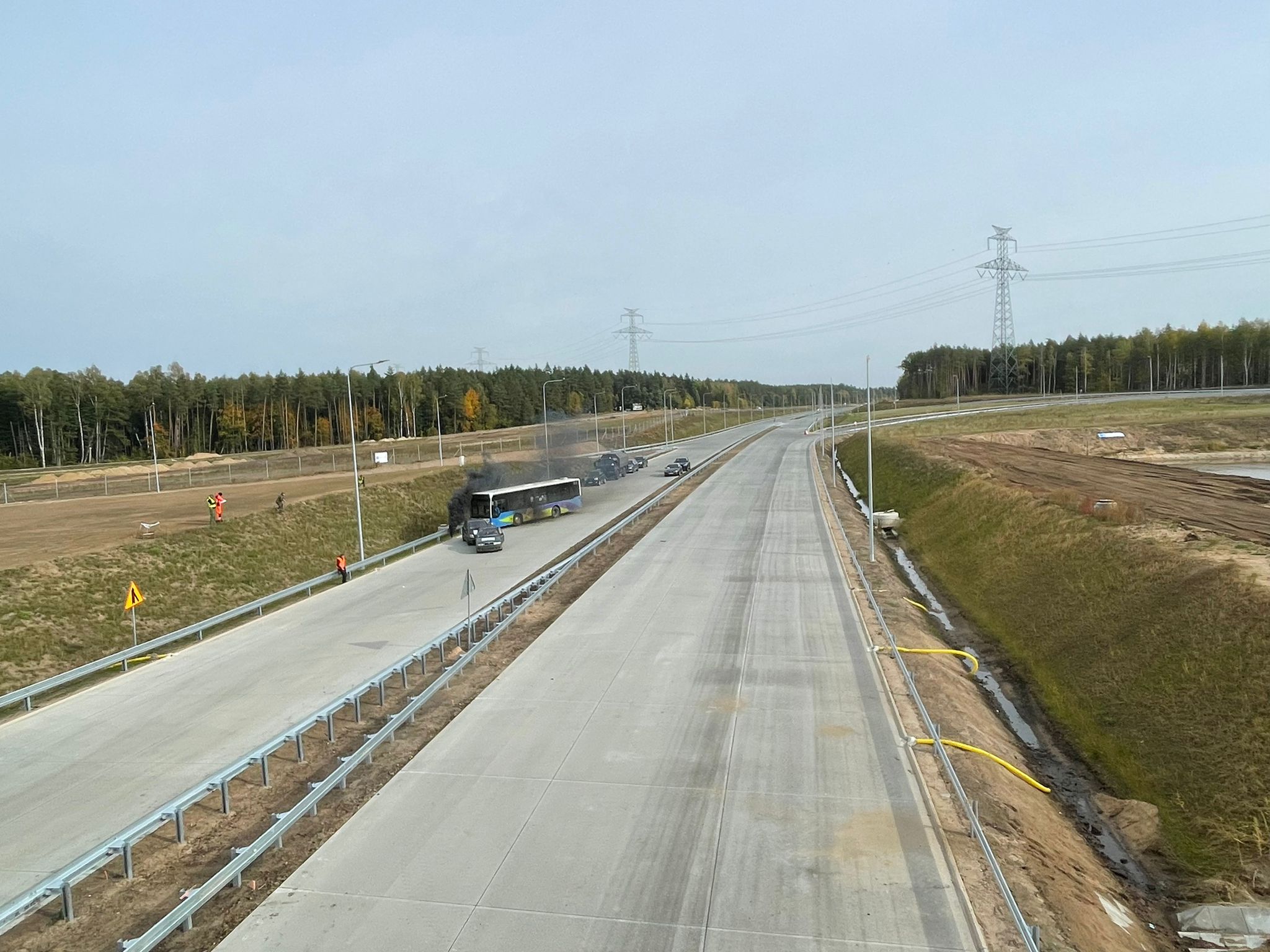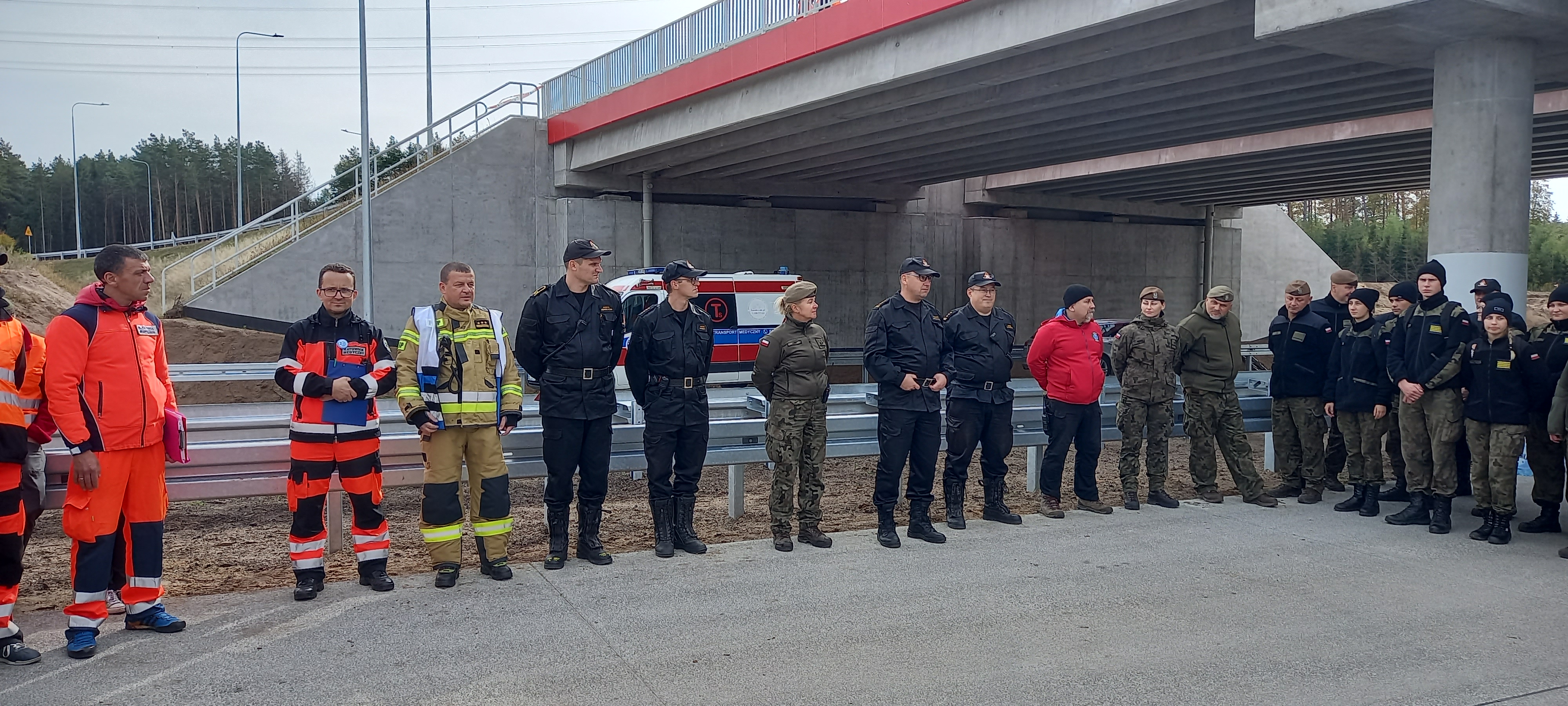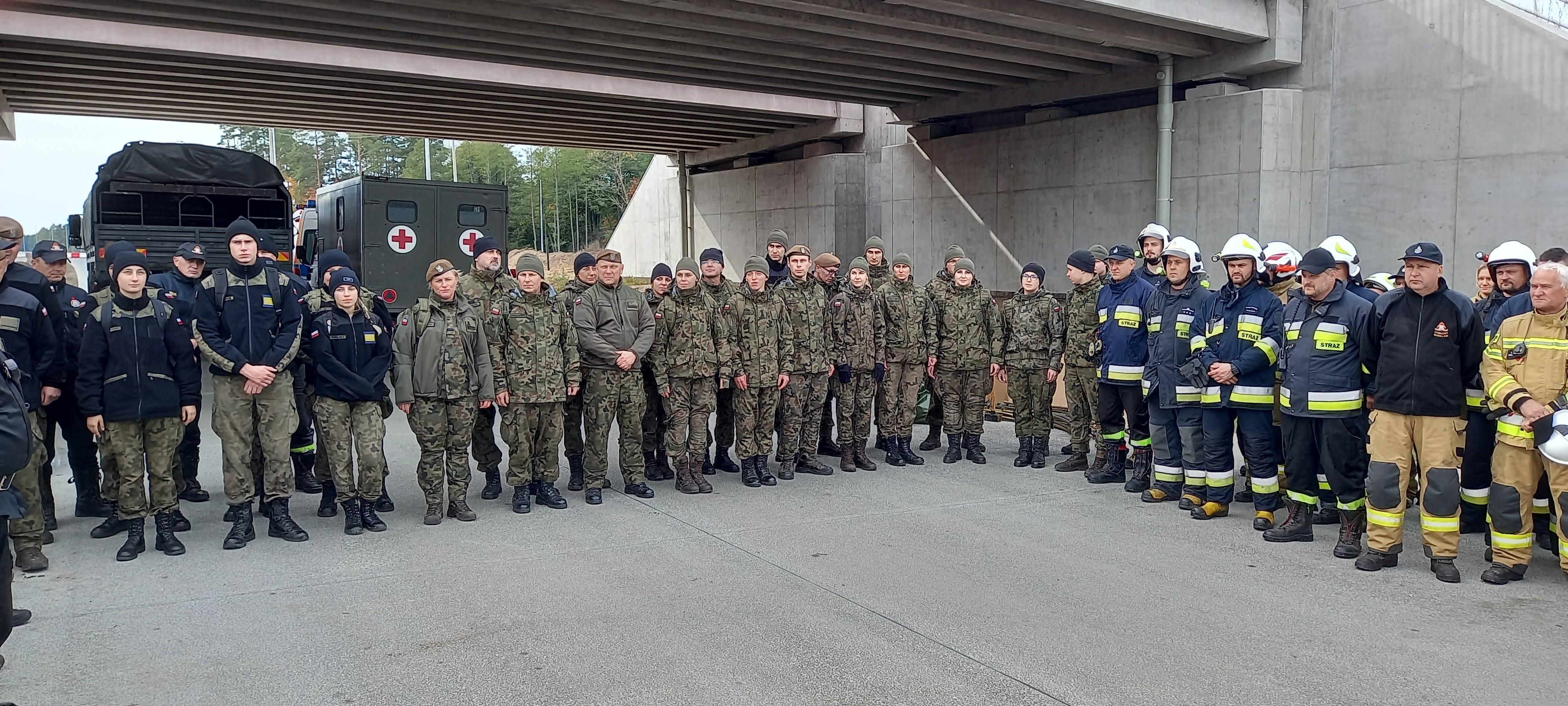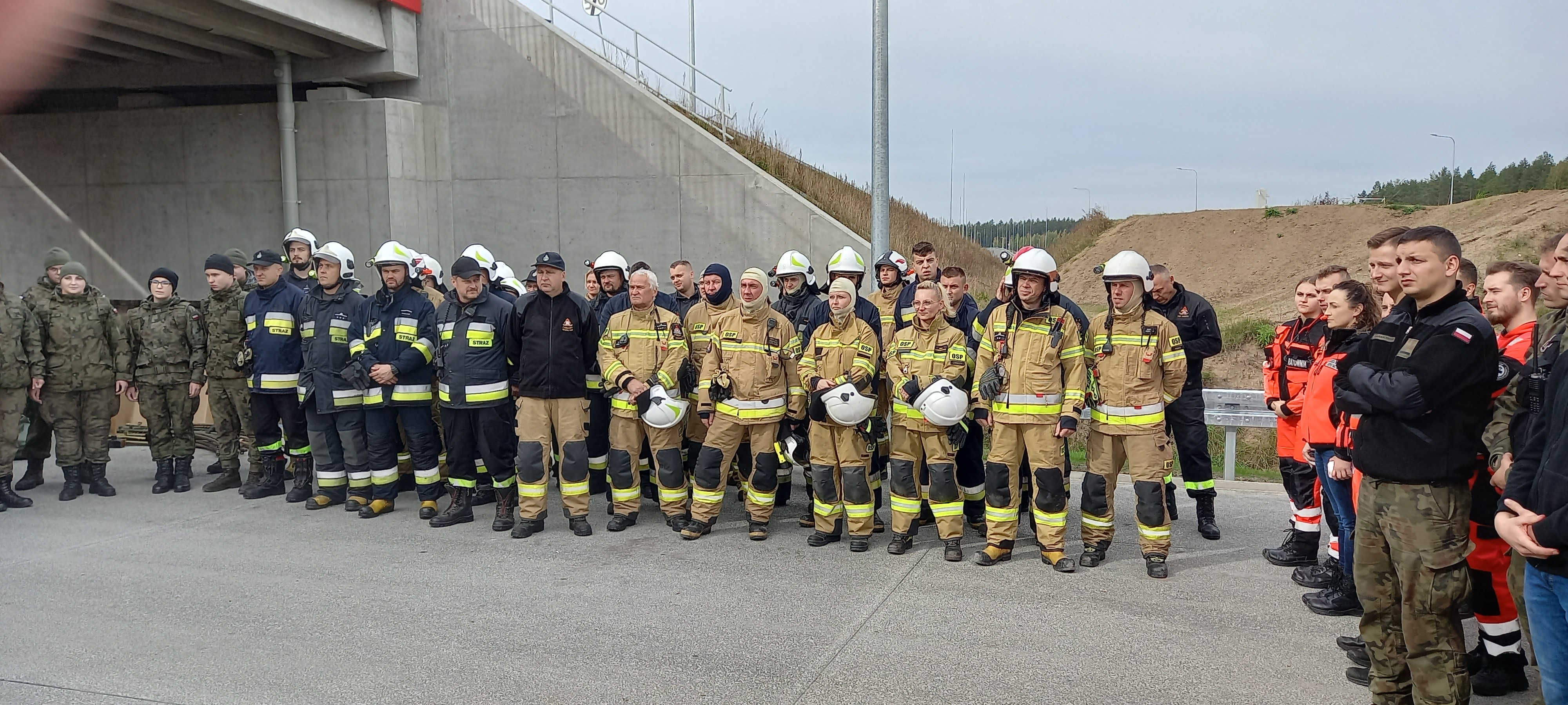 5 października 2022r. strażacy z powiatu ełckiego wraz z innymi służbami ćwiczyli na drodze szybkiego ruchu S61.
