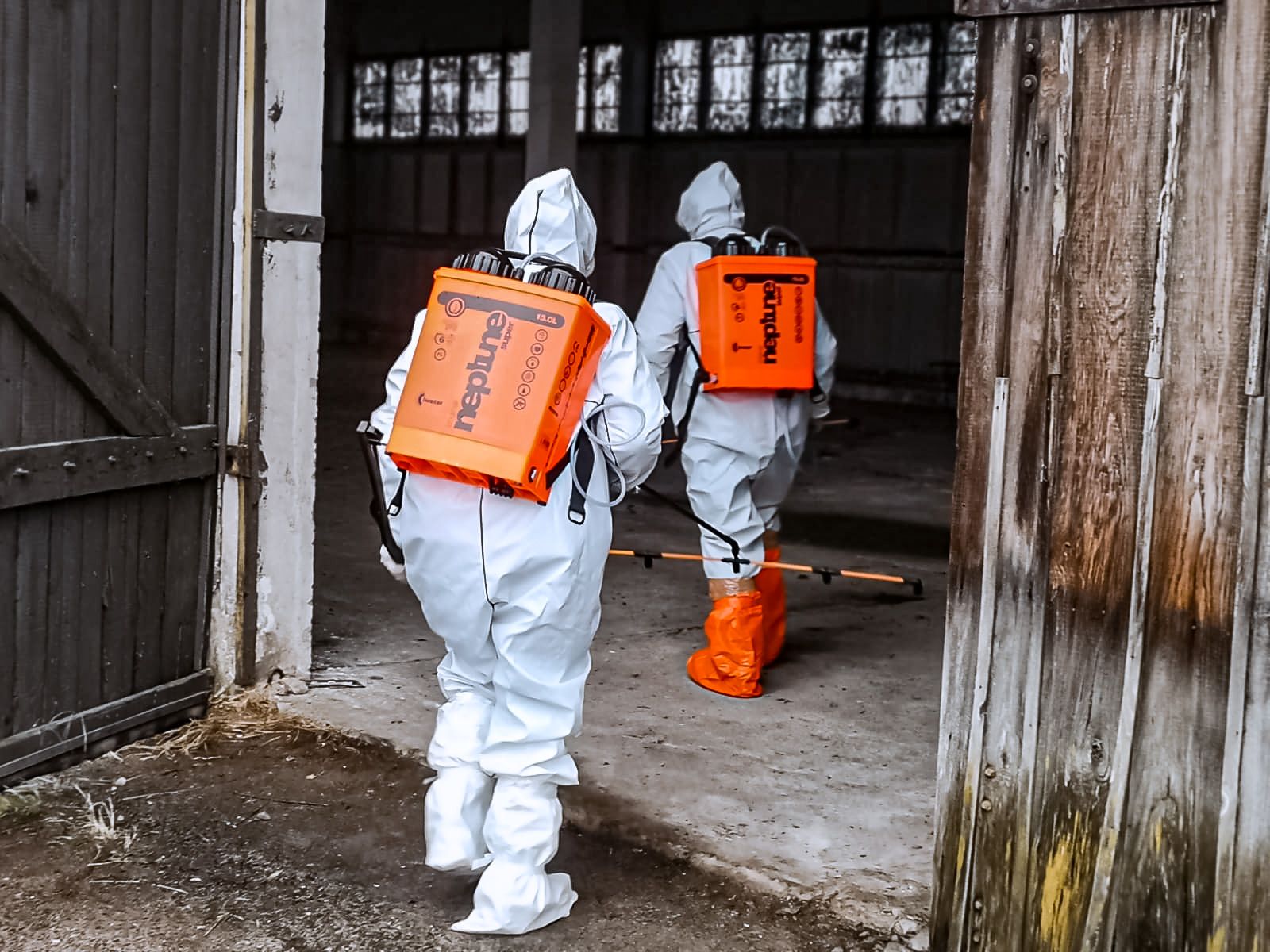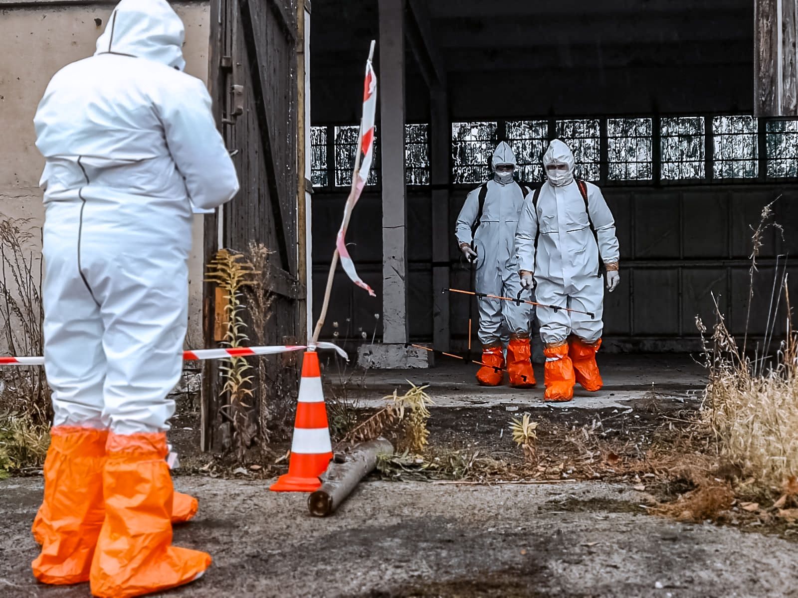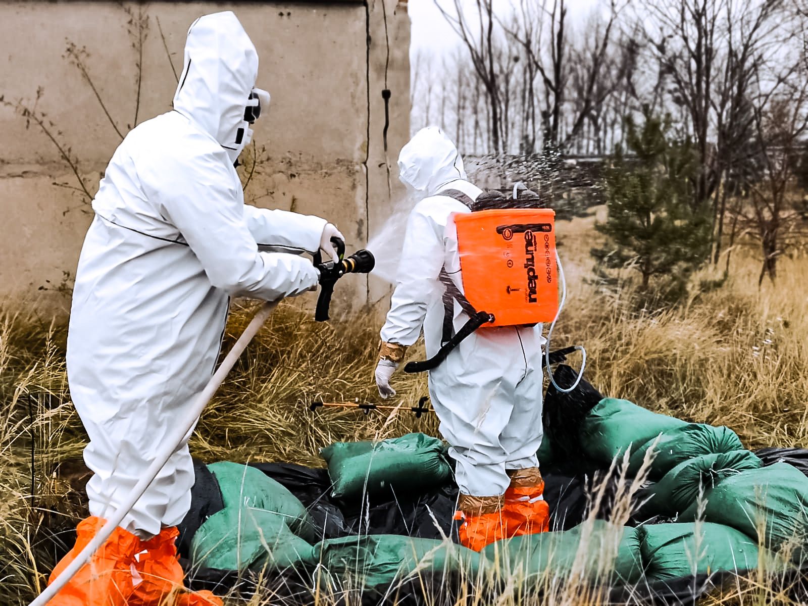 Strażacy KP PSP w Ełku przeprowadzili praktyczny instruktaż dot.: właściwego zabezpieczenia osoby mającej przeprowadzać dekontaminację pomieszczeń, prawidłowej organizacji i zasad podczas dekontaminacji pomieszczeń, zasad dekontaminacji osób po wyjściu ze strefy zagożenia oraz prawidłowego zdejmowania elementów ochrony osobistej. W ćwiczeniach wykorzystano sprzęt i środki będące na wyposażeniu WOT.