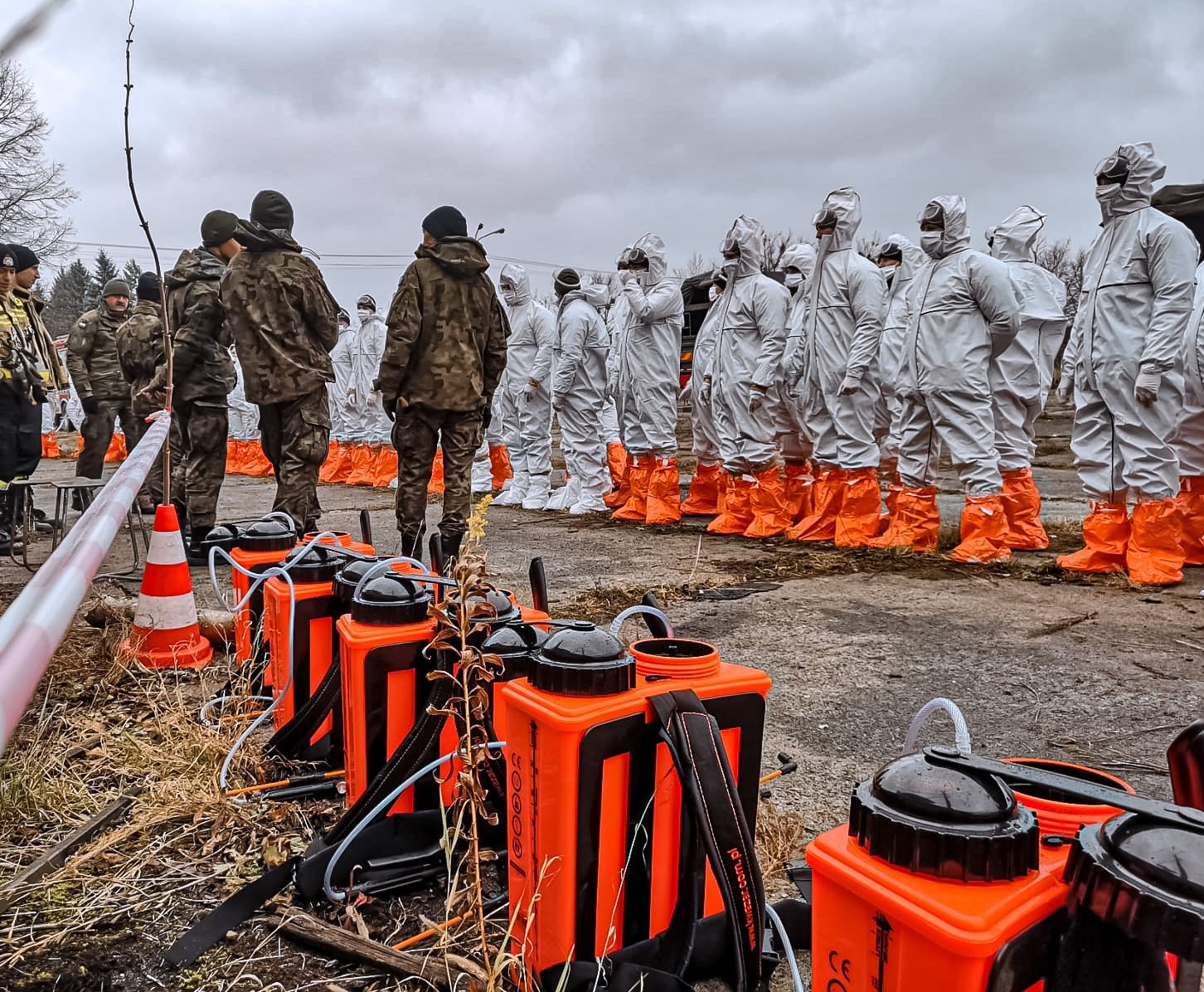 Z inicjatywy dowódctwa 41 Batalionu Lekkiej Piechoty WOT w Giżycku w dniach 06 - 07.11.2021 r. na terenie jednostki wojskowej, z udziałem strażaków KP PSP w Ełku, przeprowadzono ćwiczenia z dekontaminacji pomieszczeń, osób i sprzętu w ramach walki z pandemią COVID-19.